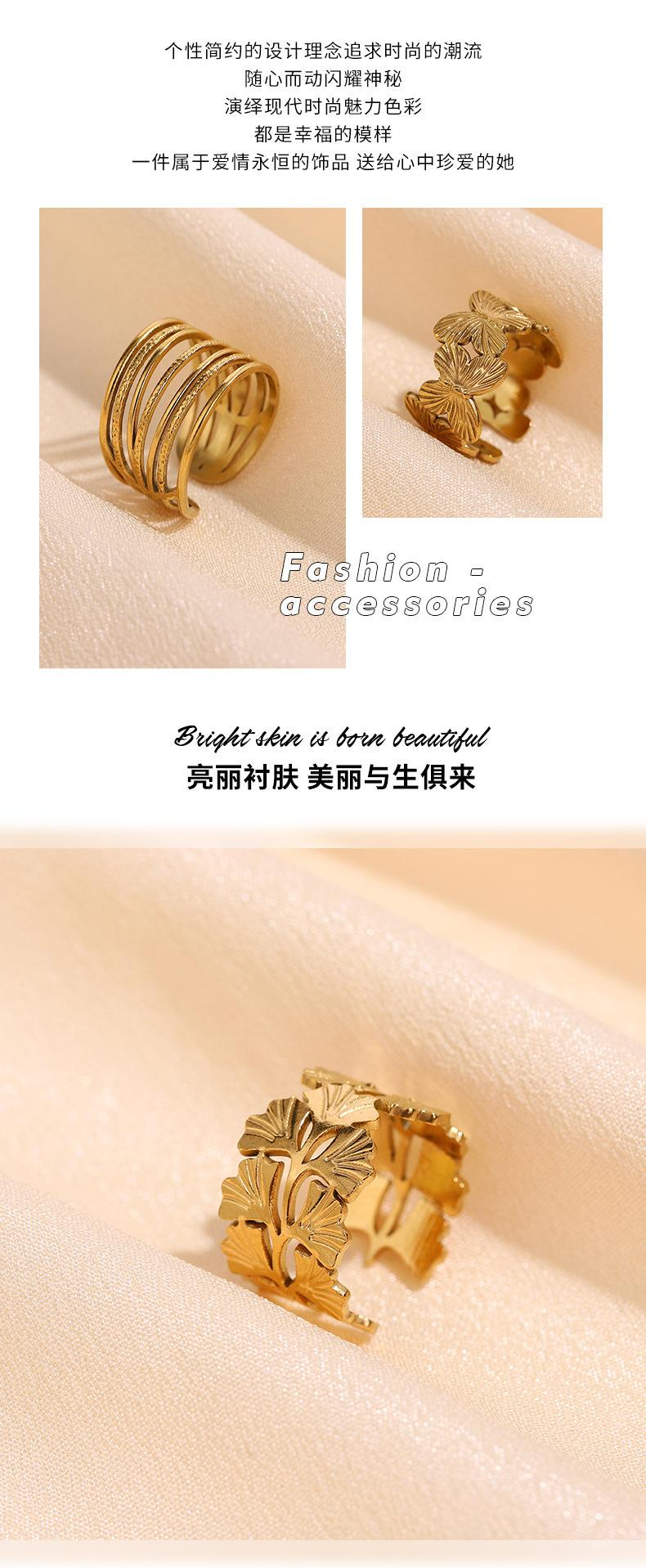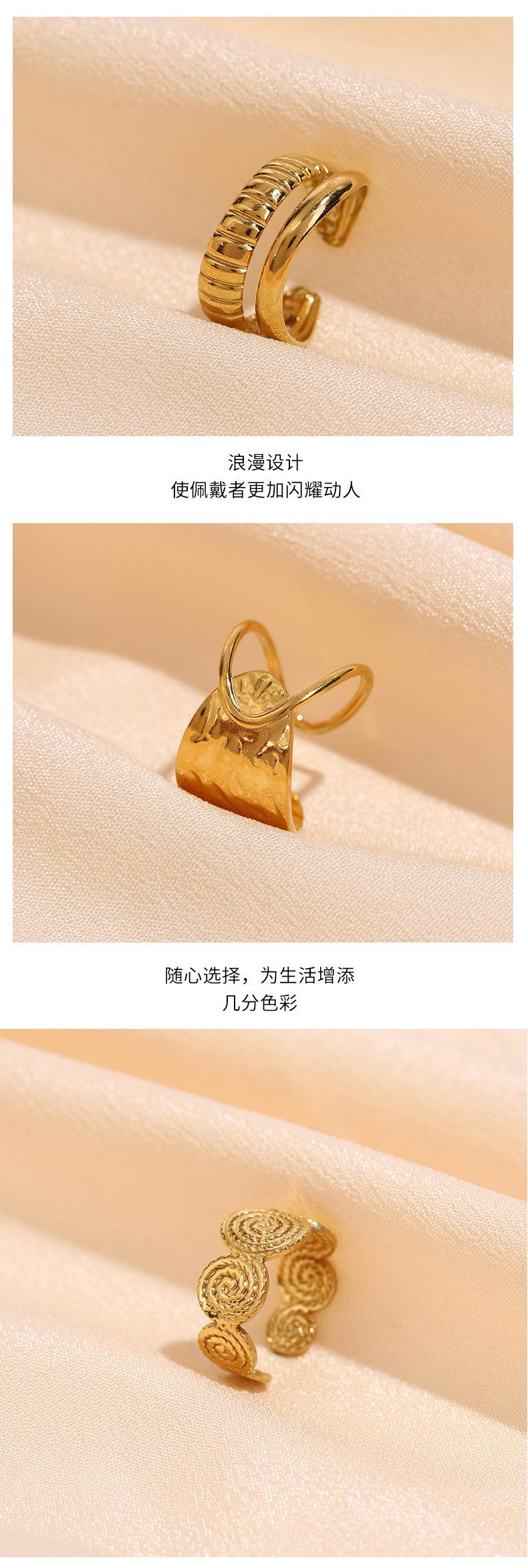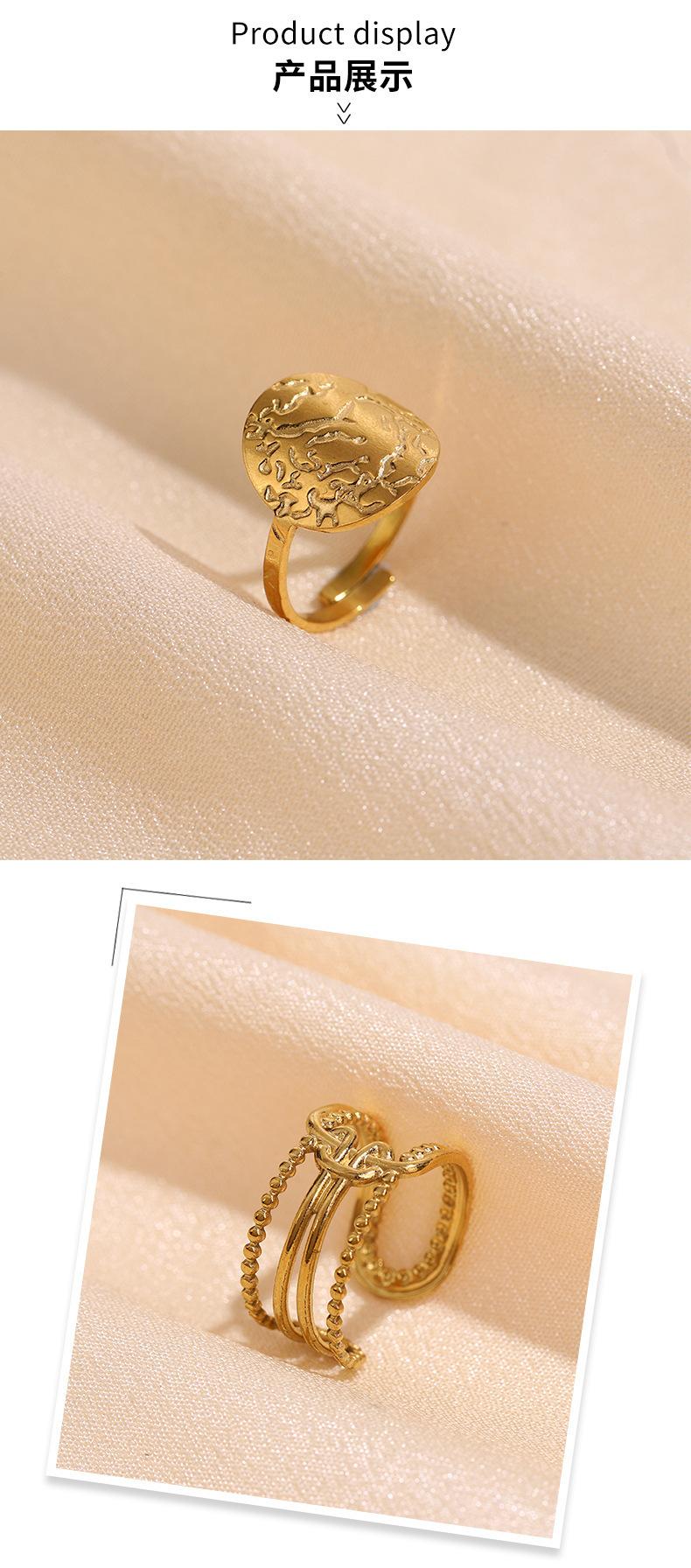 Anillo Retro Ancho Transfronterizo Europeo y Americano de Acero Inoxidable para Hombres y Mujeres con Abertura Ajustable Chapado en Oro Acero de Titanio Inoxidable