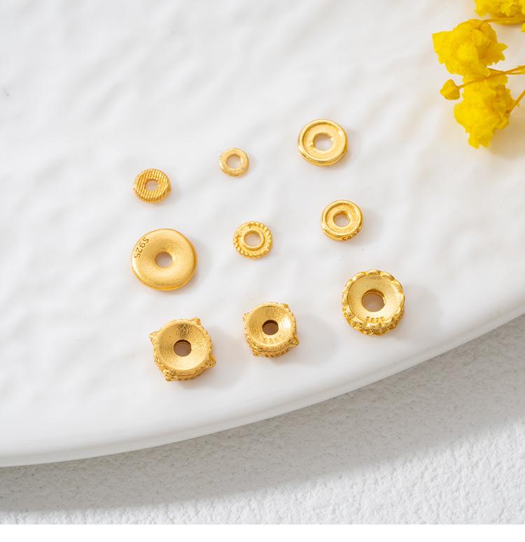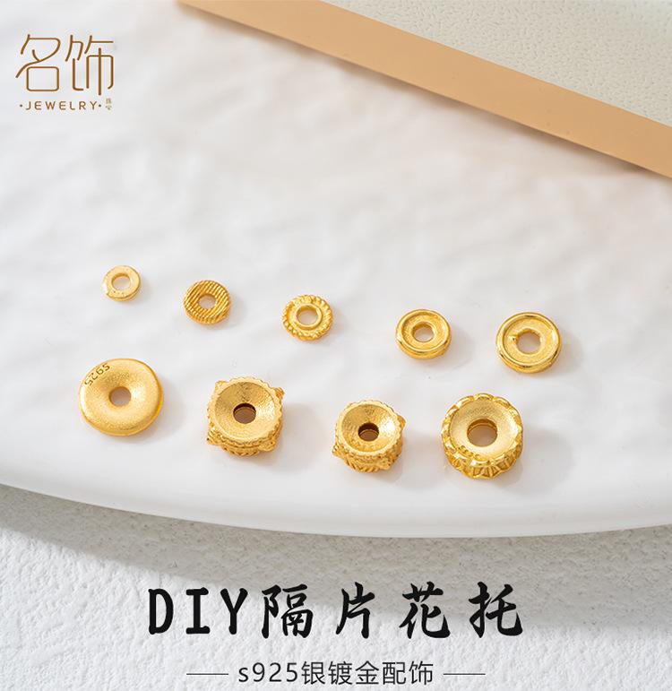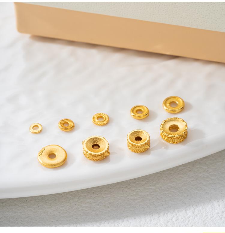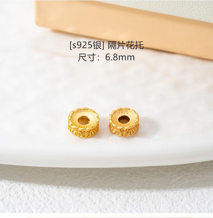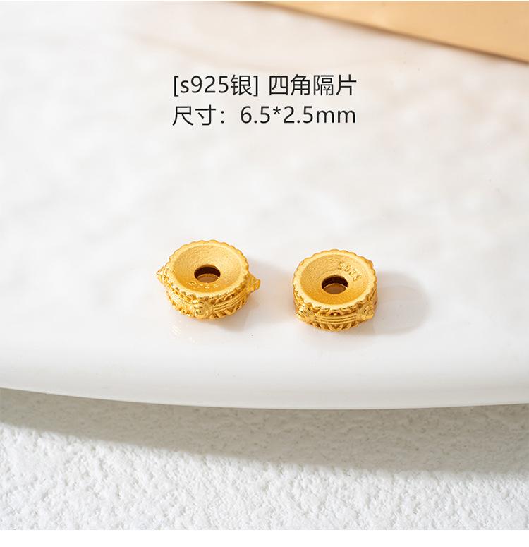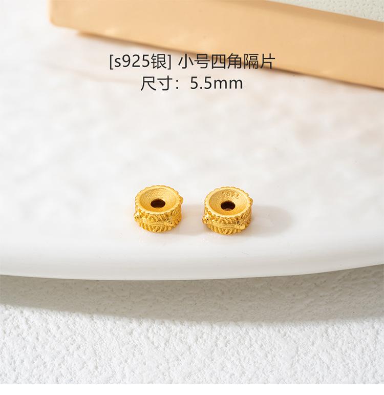 Plata S925 Chapado en Oro Engranaje de Cuatro Esquinas Espaciador Plano Hecho a Mano con Cuentas Cuerda Roja Pulsera Collar Espaciador de Cuentas Accesorios DIY