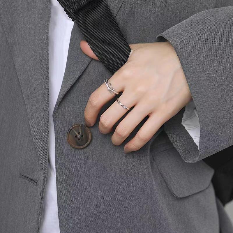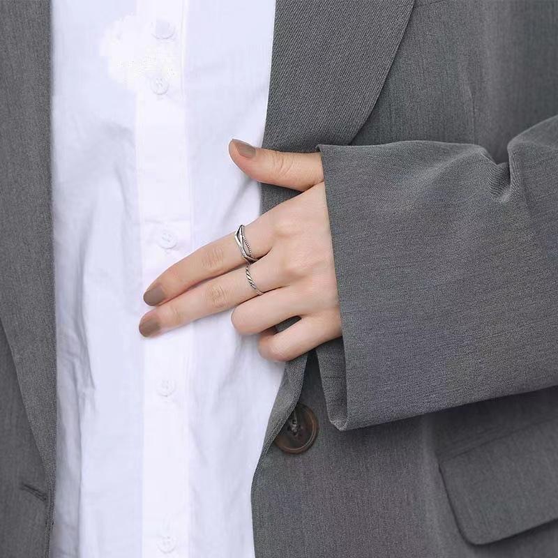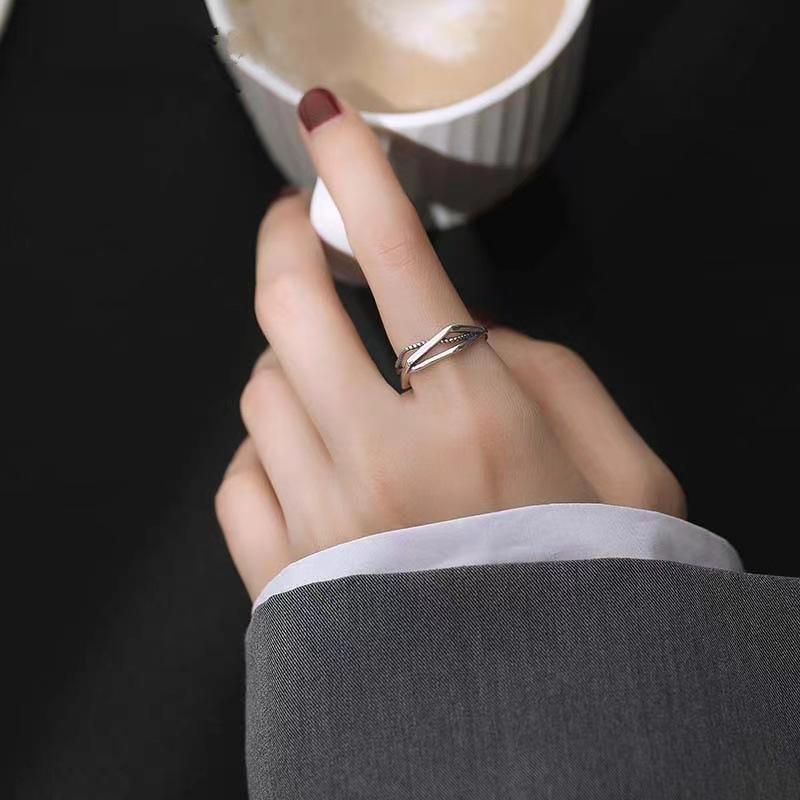 Anillo Abierto Ajustable para Mujer Estilo Frío Nicho Moda Anillo de Dedo Estilo Hong Kong Temperamento Sensación de Clase Alta Anillo sin Color