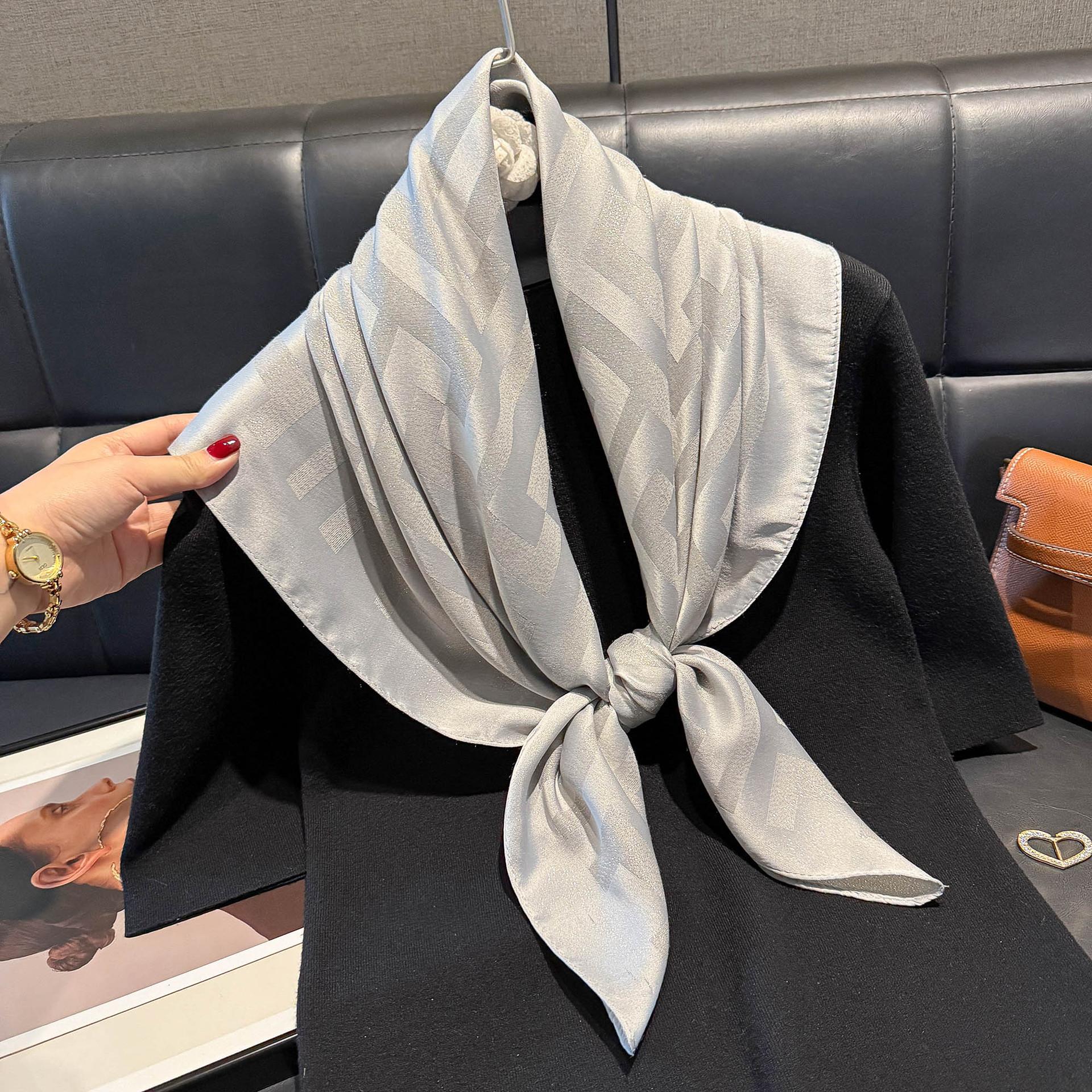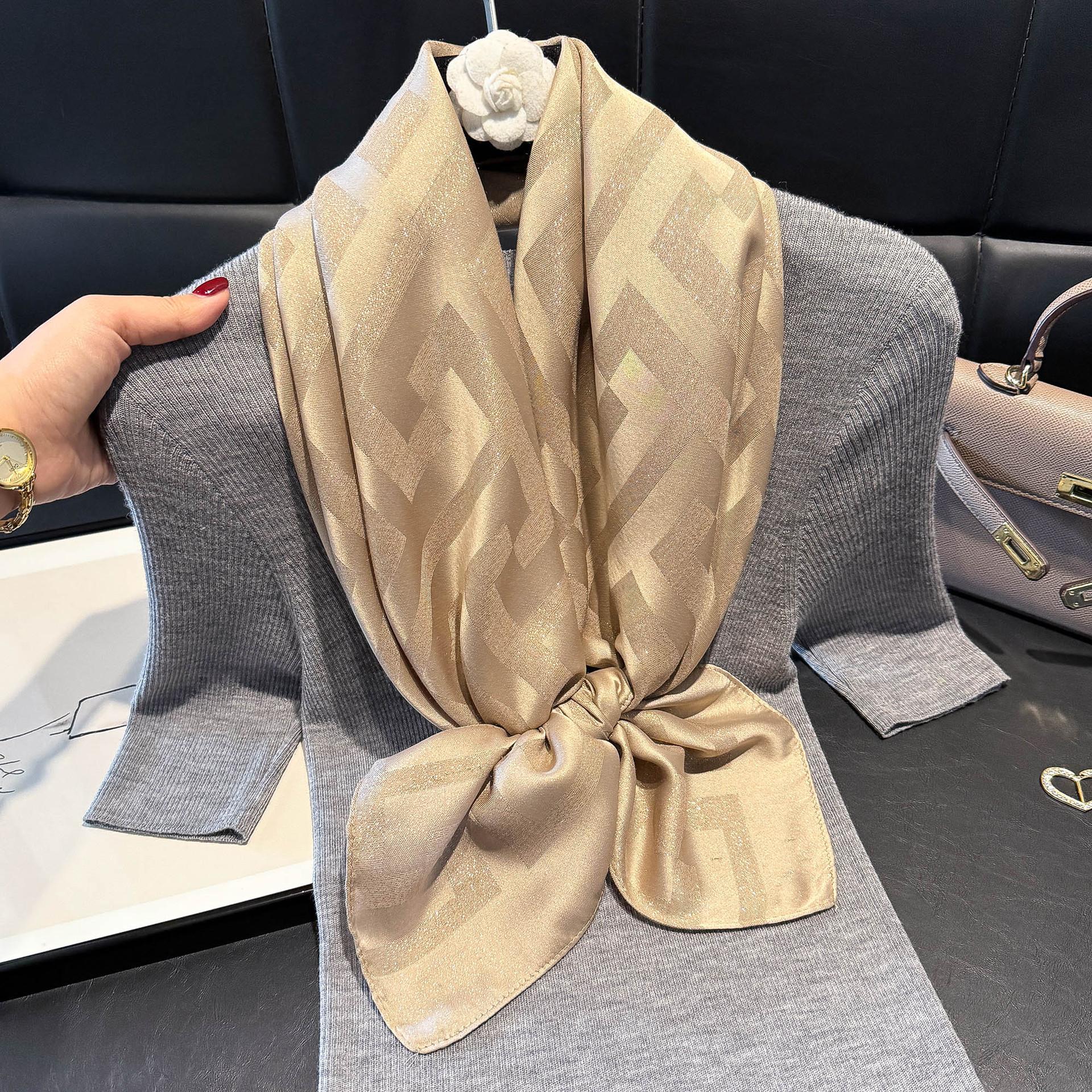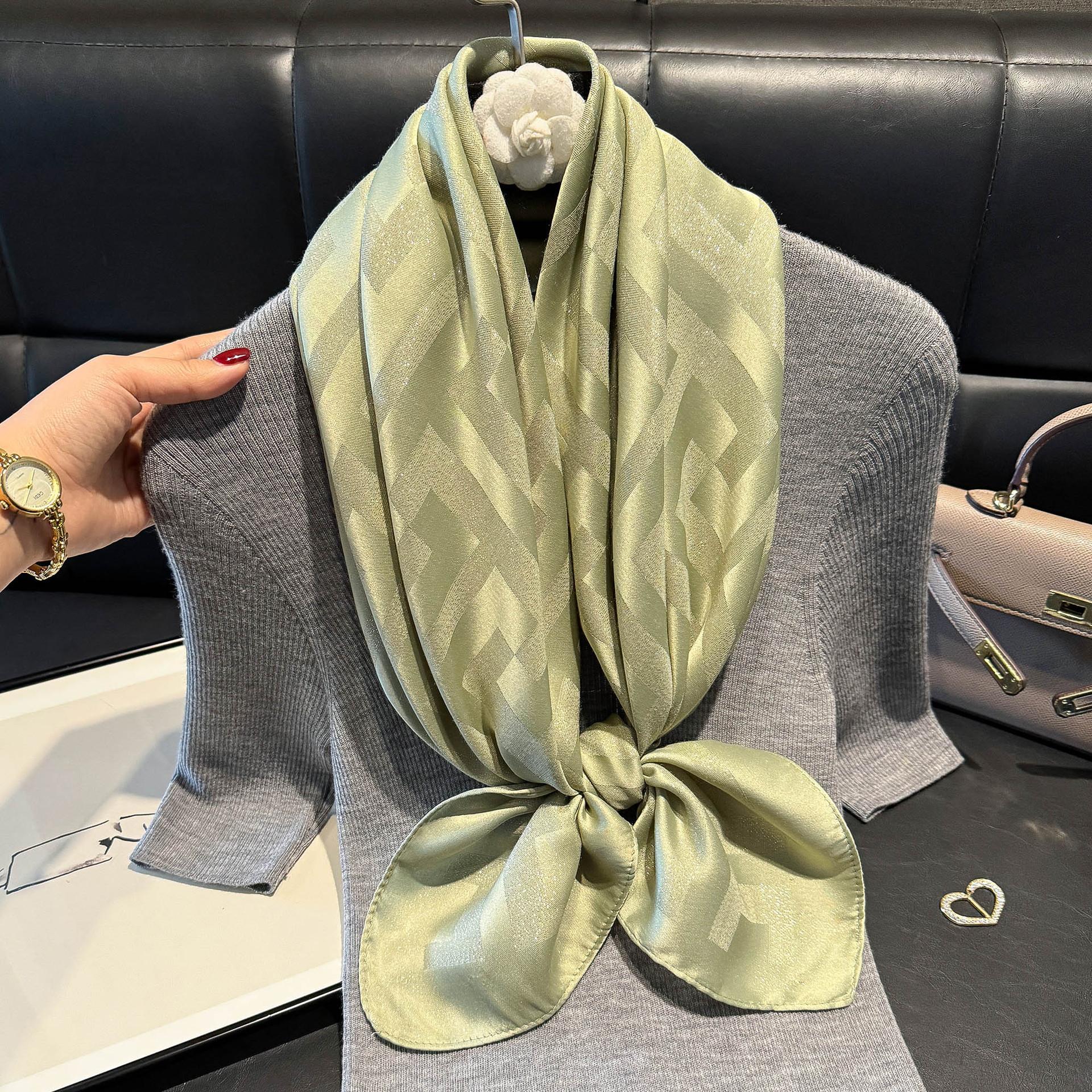 Pañuelo de Seda con Letra Primavera 2025 Satén 90cm Pañuelo Cuadrado Grande Decorativo Pañuelo Multifuncional Protector Solar