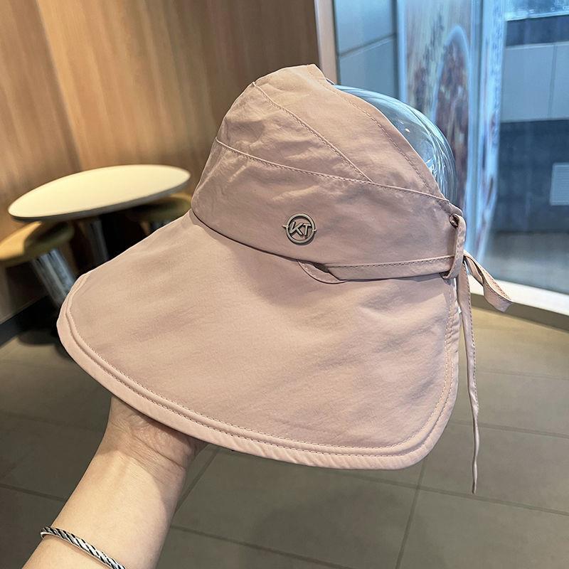 Sombrero de Sol de Verano para Mujer para Exterior con Ala Grande y Sombrero de Copa Vacía Nuevo Estilo Cubre Cara Transpirable Sombrero de Sol para Cola de Caballo
