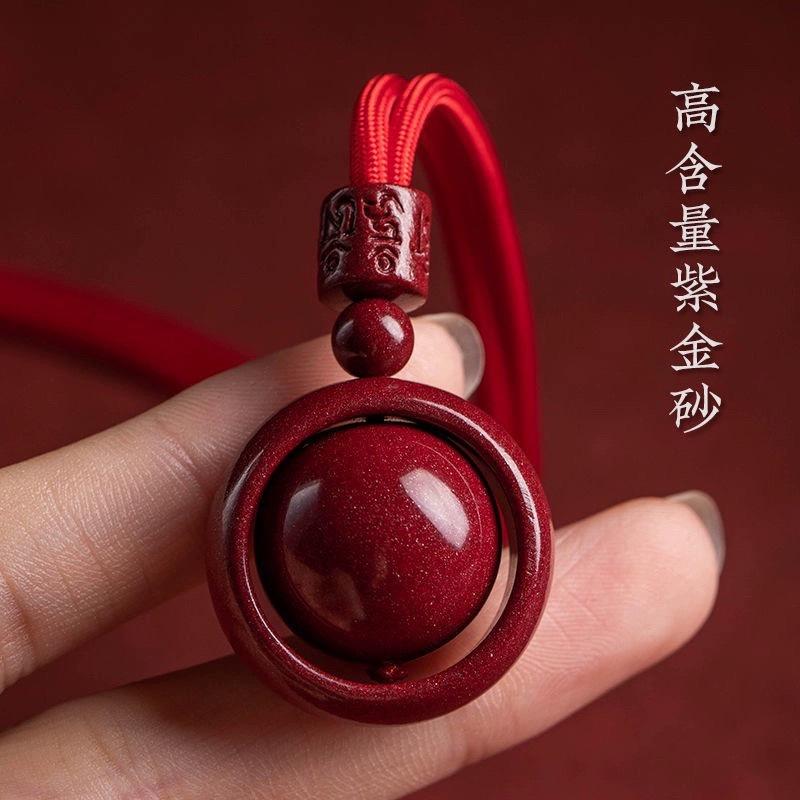Colgante de Cinabrio Natural Buena Suerte para Hombres y Mujeres Benmingnian Arena Púrpura Dorada Collar de Cuentas de la Suerte Proteger la Paz Cadena para Clavícula