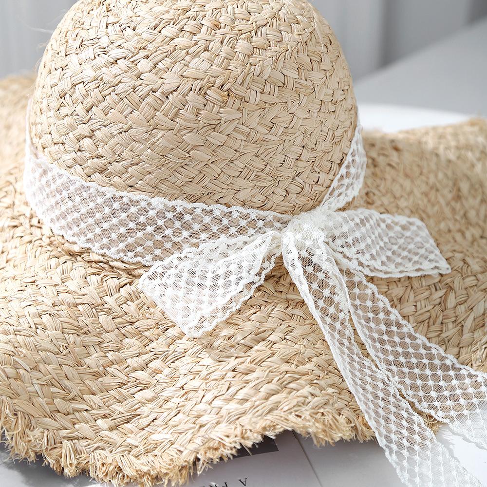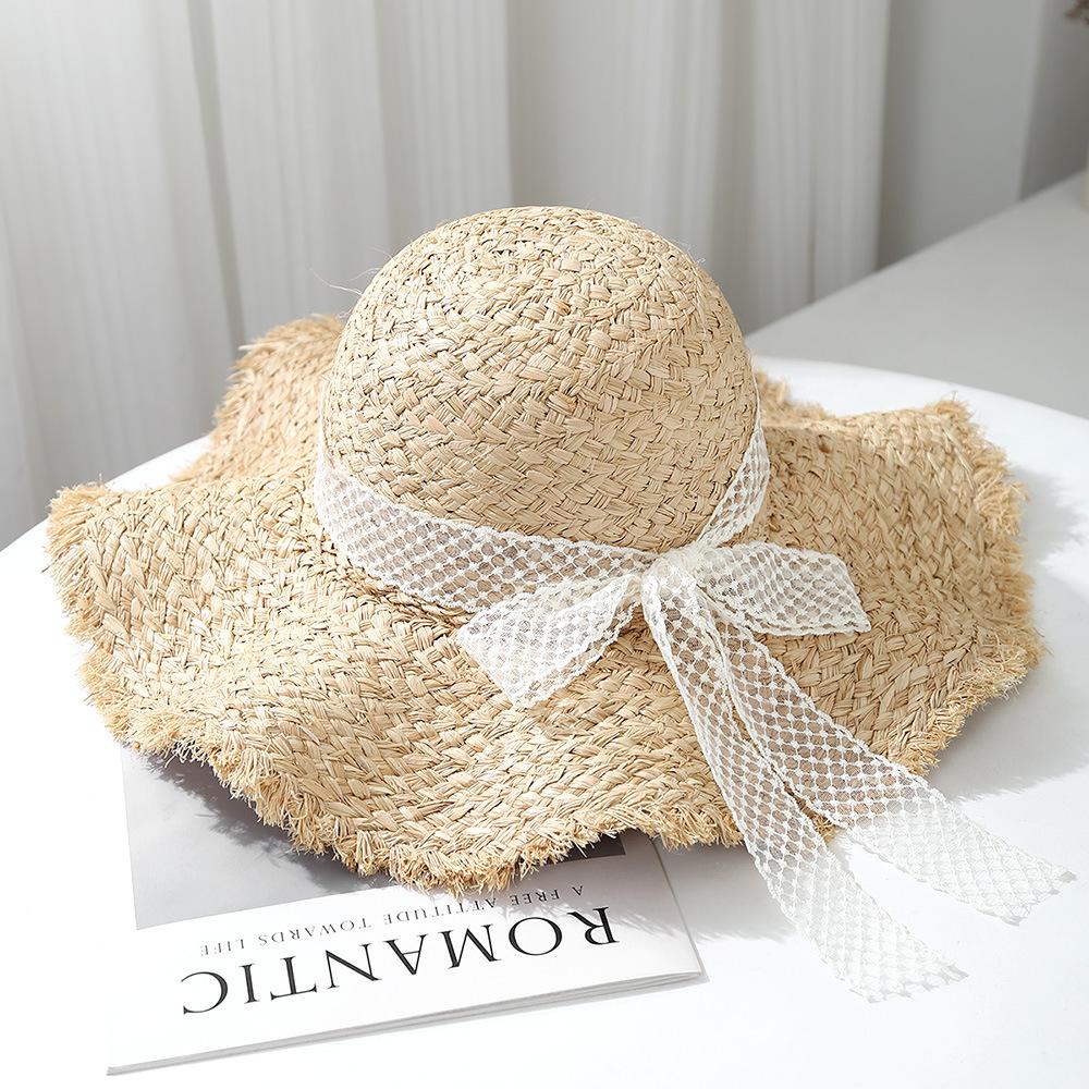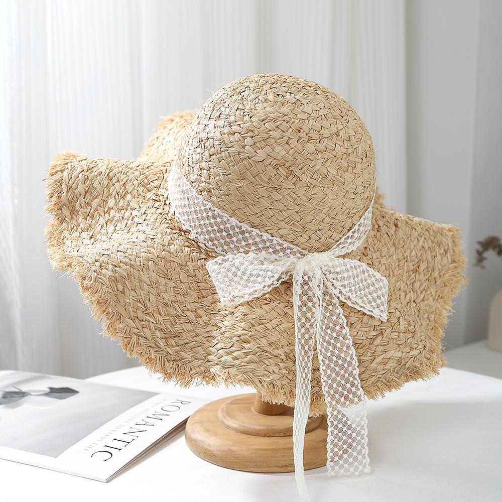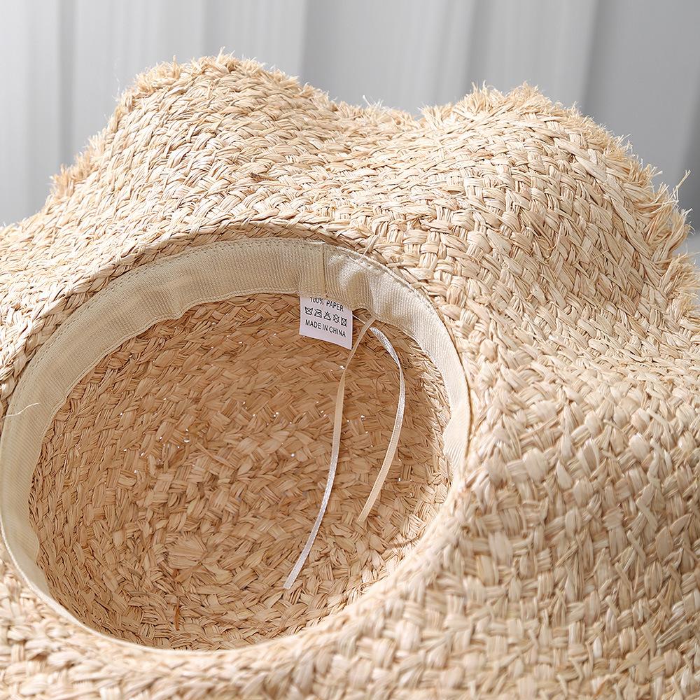 Sombrero de Rafia para Mujer Primavera y Verano Sombrero de Ala Ancha Protección Solar Vacaciones en la Playa Sombrero Tejido Sombrero de Playa Ondulado