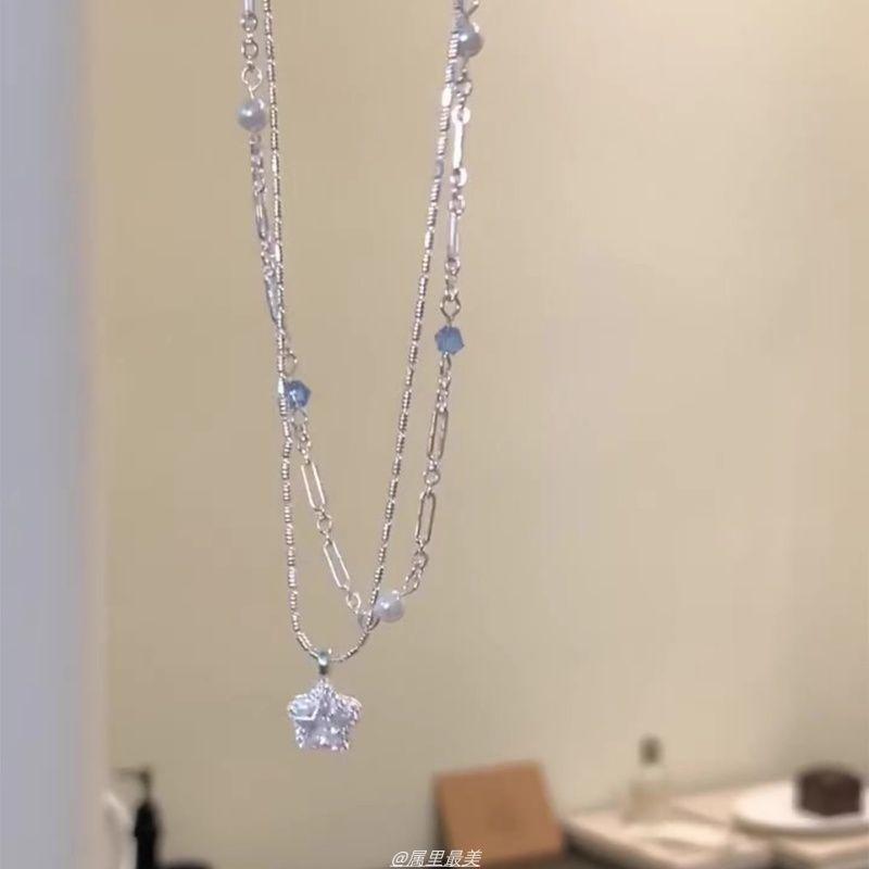 Collar de Perlas de Doble Capa "Estrella Fugaz" Diseño Nicho de Alta Gama Colgante de Estrella Cadena Clavícula