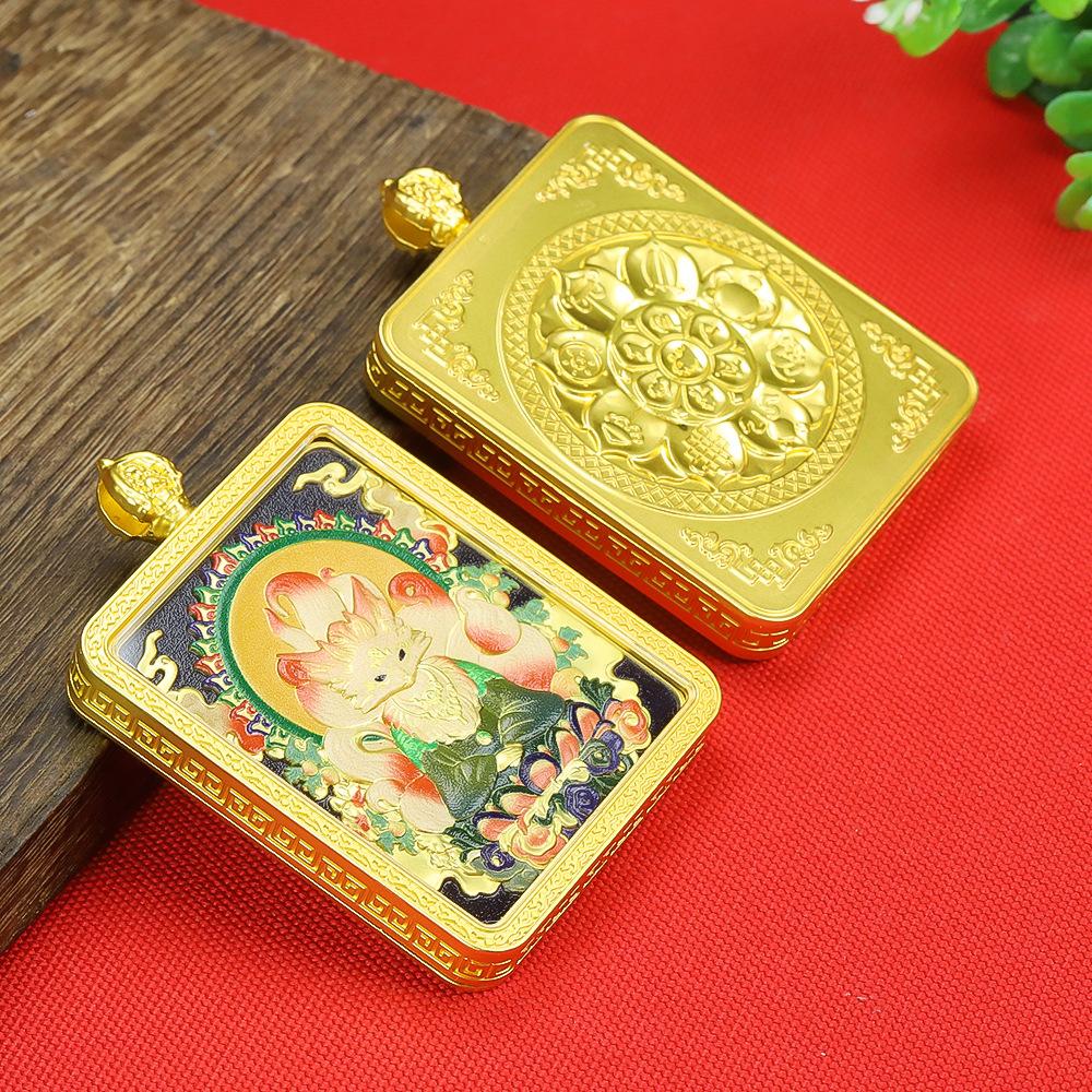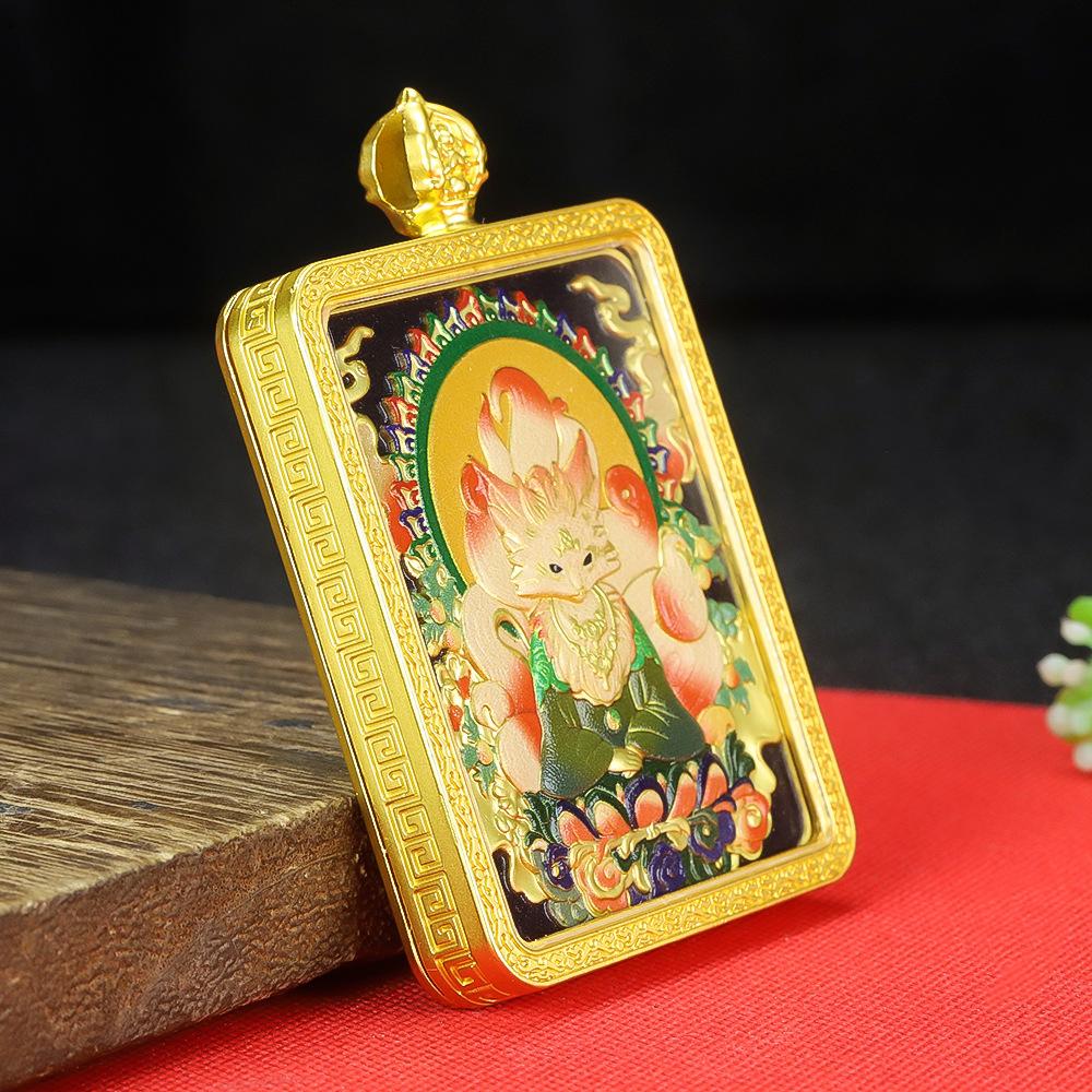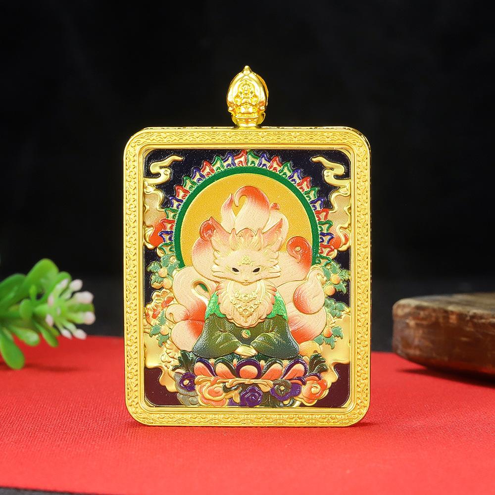 Colgante Thangka de Zorro de Nueve Colas Pintado Colgante para la Fortuna de los Hombres en el Año de Nacimiento, Colgante Protector