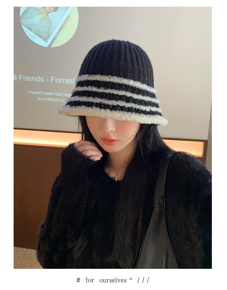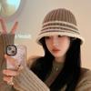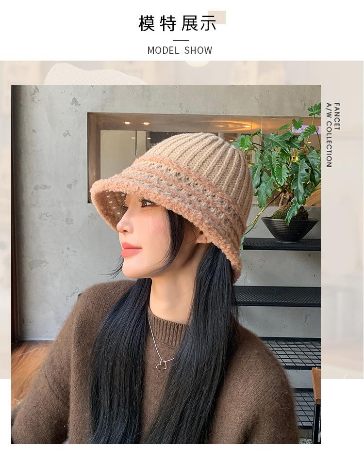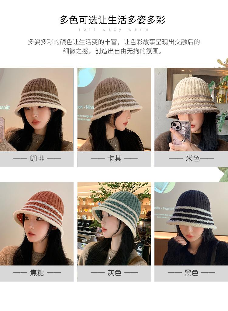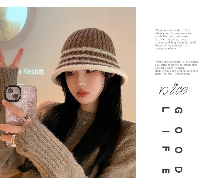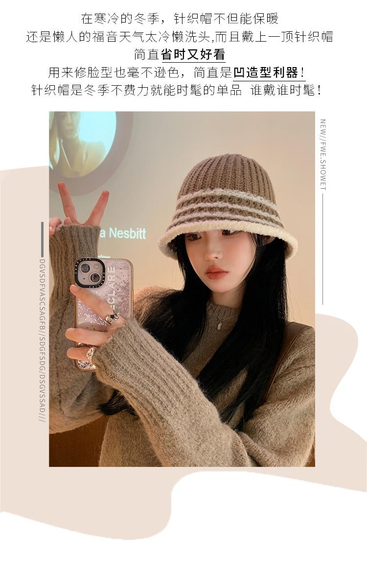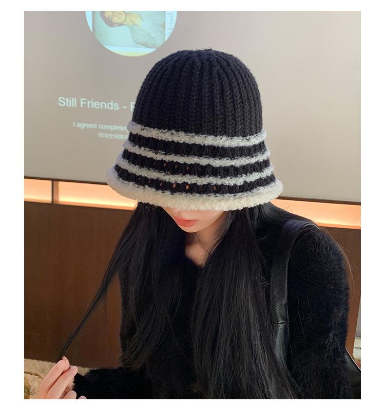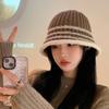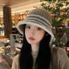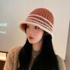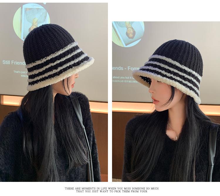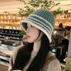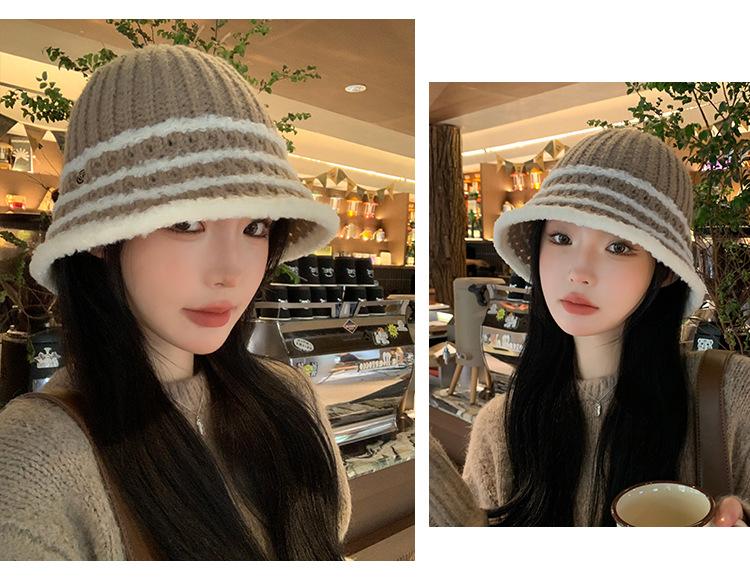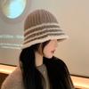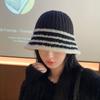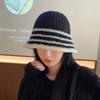 Otoño e Invierno Nuevo Estilo Coreano Tejido Rayado Pequeño Sombrero de Cubo que Muestra el Rostro Cálido y a la Moda Sombrero Tejido de Lana para Mujer