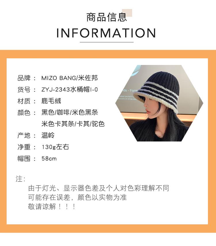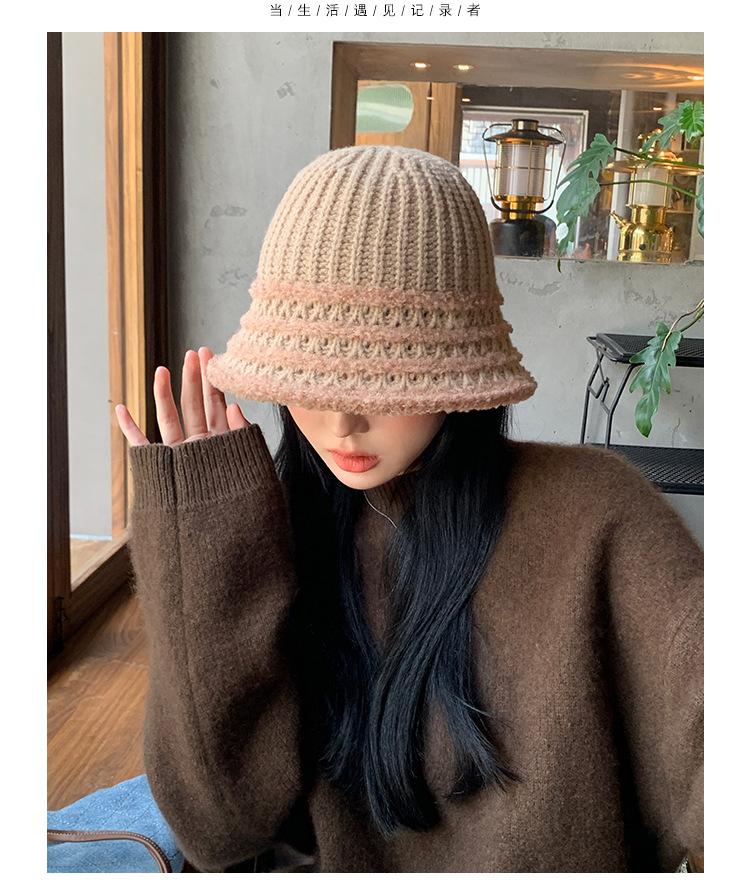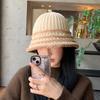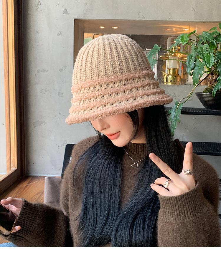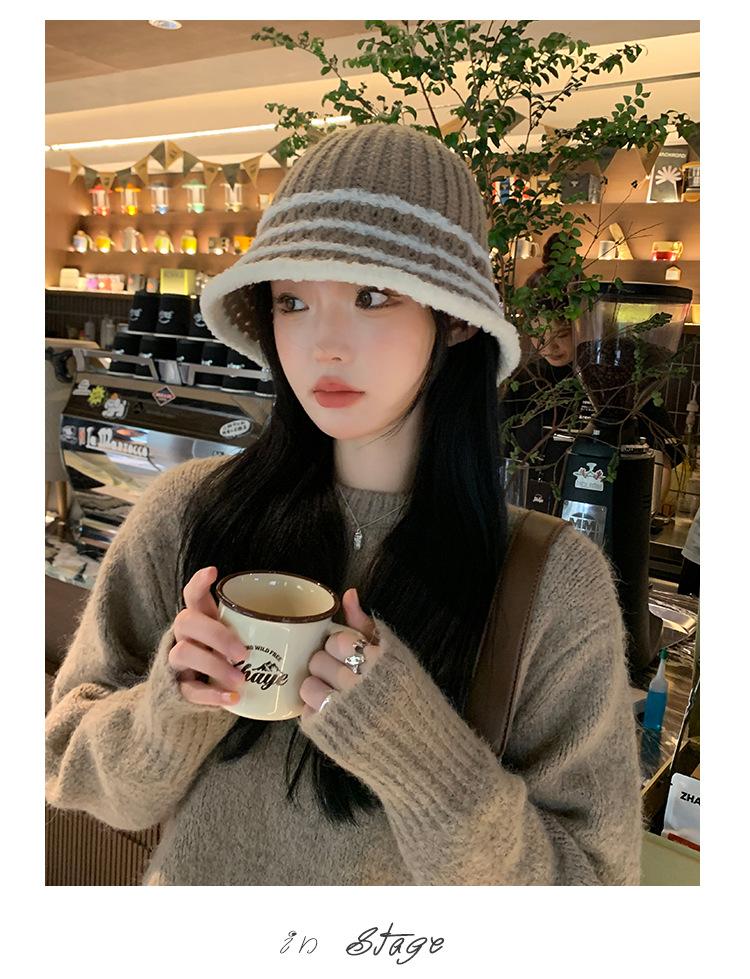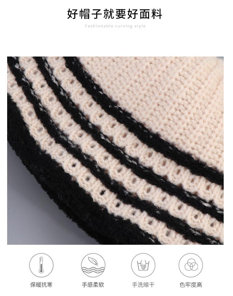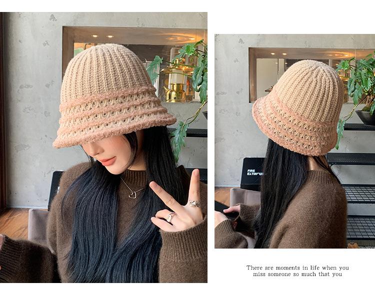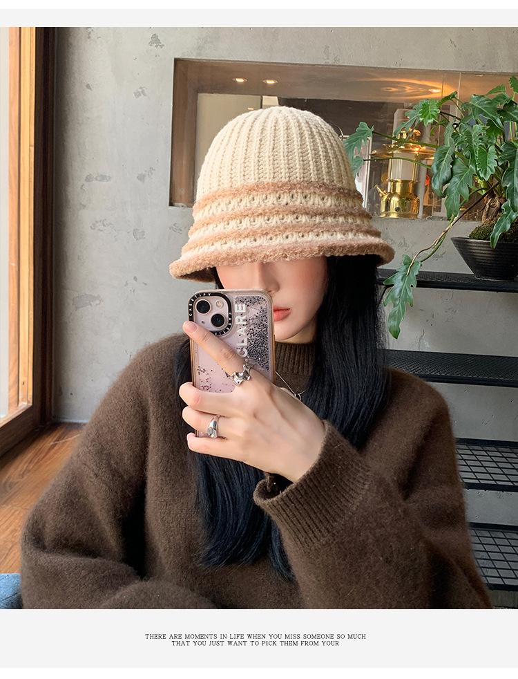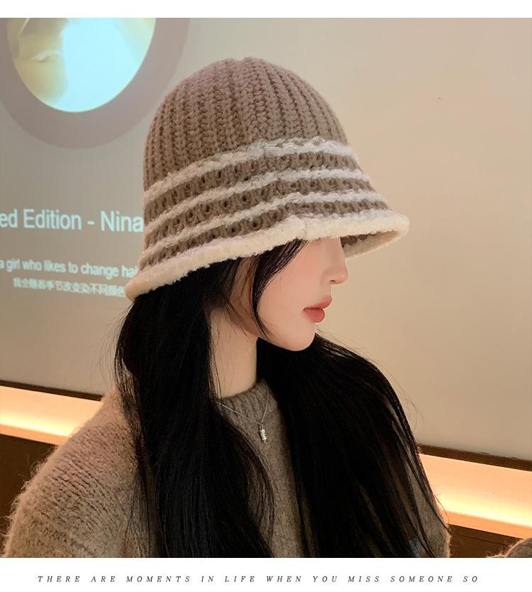 Otoño e Invierno Nuevo Estilo Coreano Tejido Rayado Pequeño Sombrero de Cubo que Muestra el Rostro Cálido y a la Moda Sombrero Tejido de Lana para Mujer
