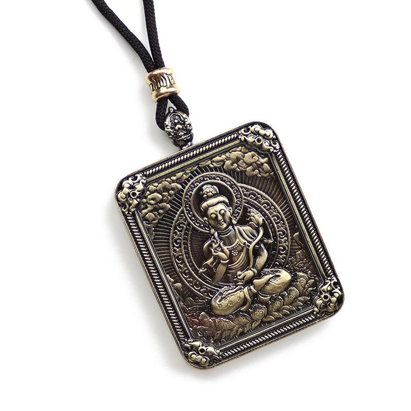 Colgante Thangka Tibetano Dragón Wuye Ocho Santos Patronos Thangka de Doble Cara Colgante de Buda Thangka Cuadrado de Bronce Collar