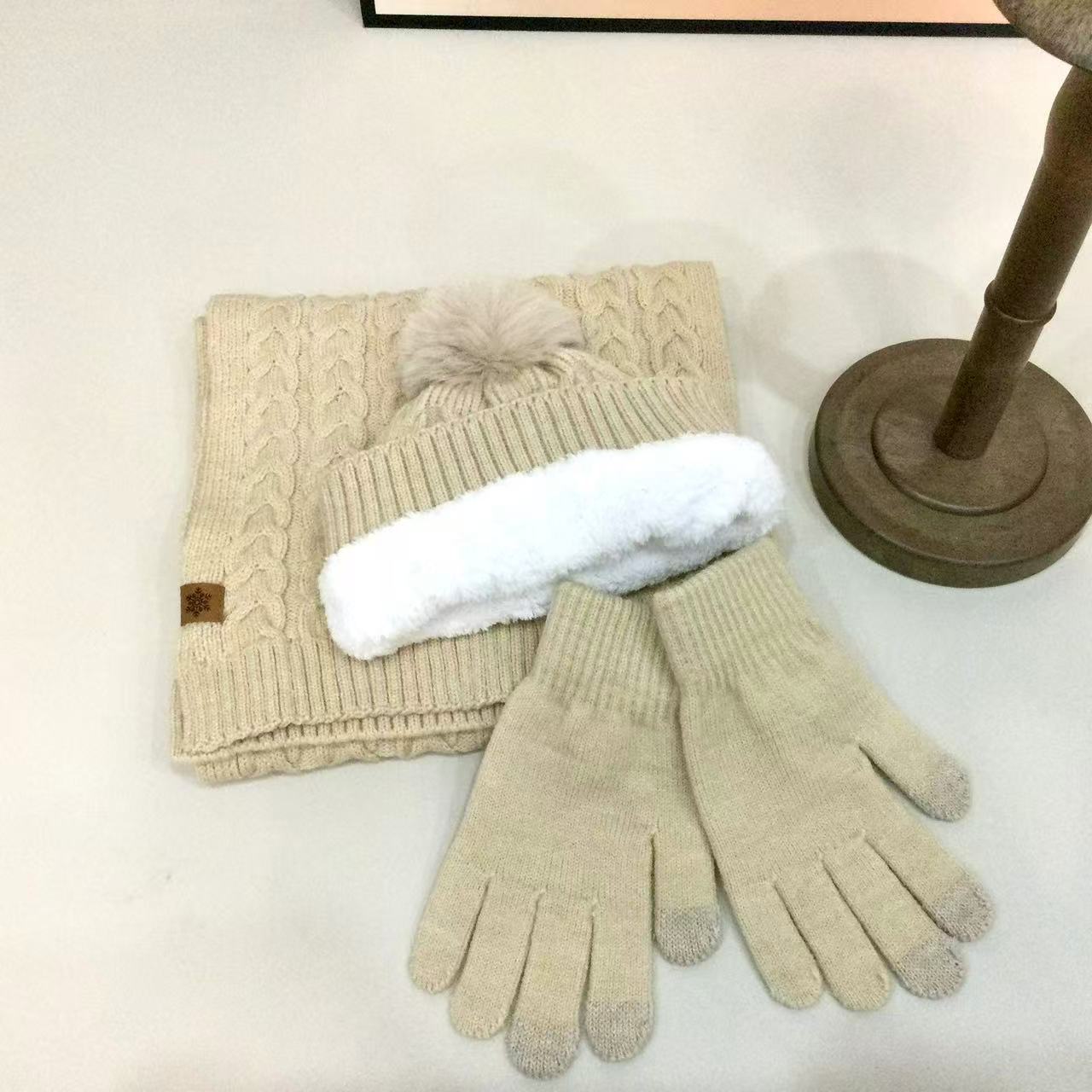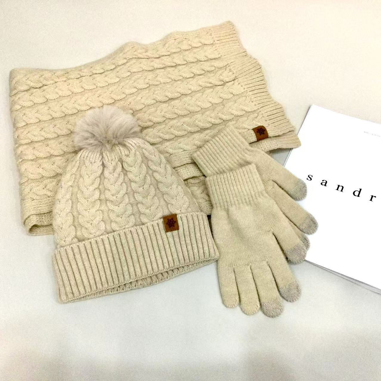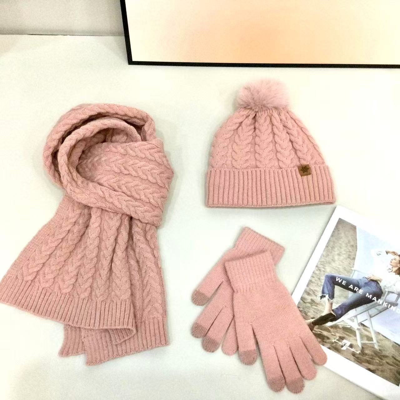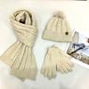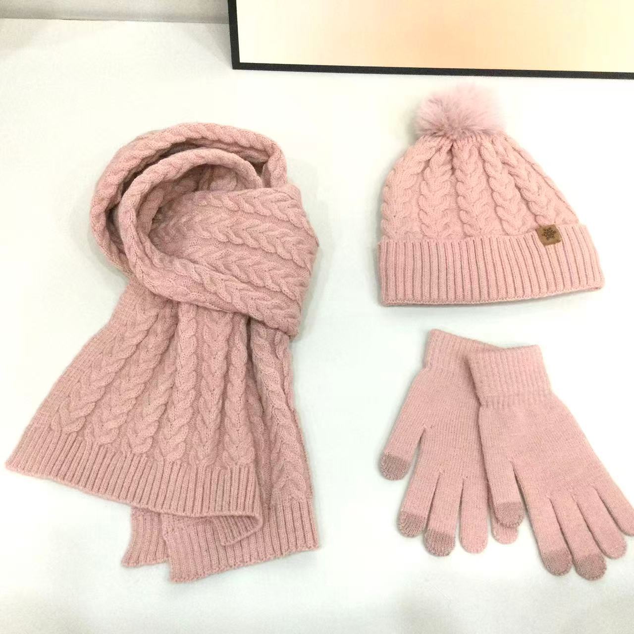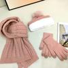 Amazon Transfronterizo Nuevo Estilo Coreano Trenzado Lana Color Puro Bufanda Guantes Sombrero Traje Cálido de Invierno de Tres Piezas