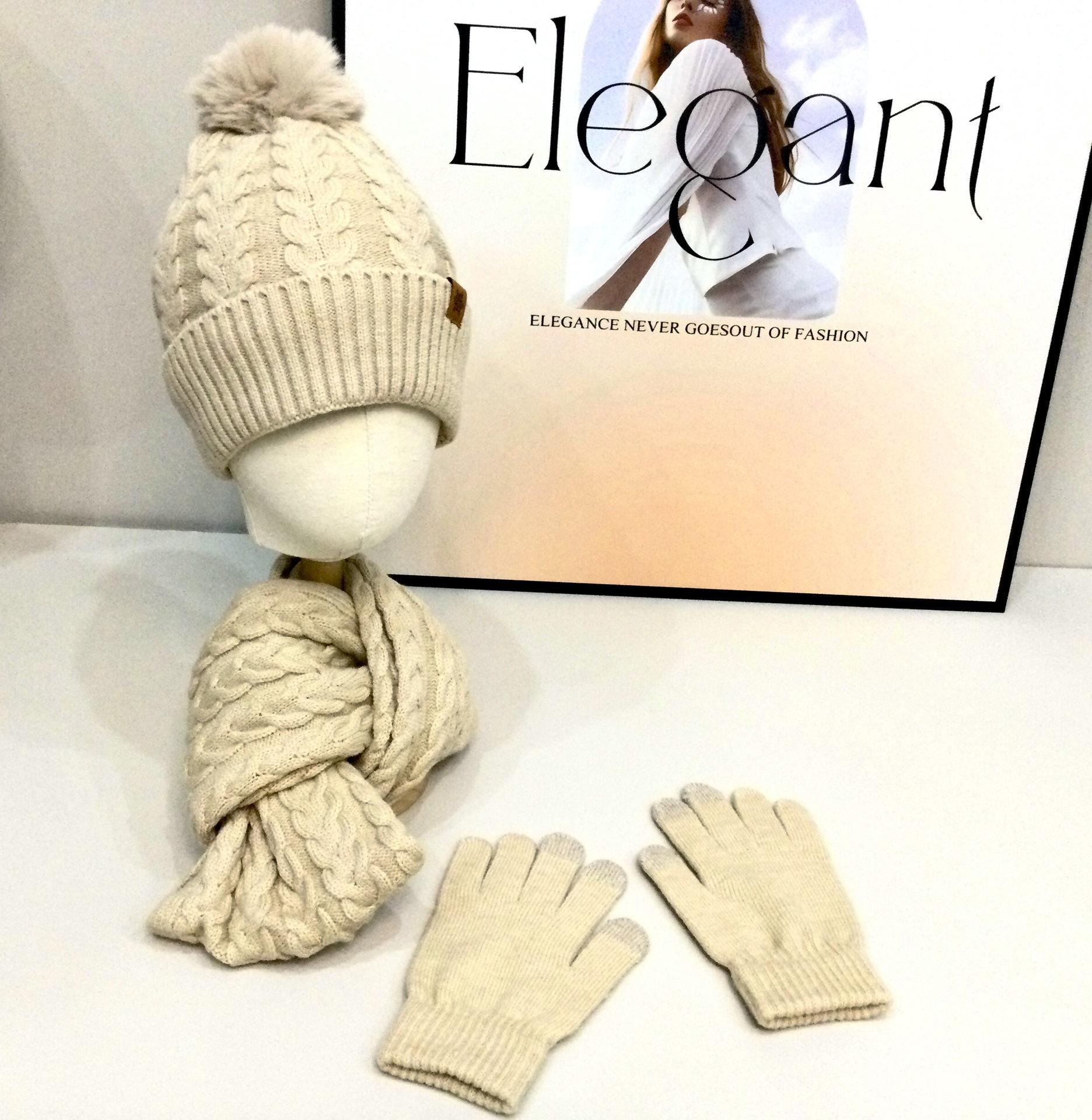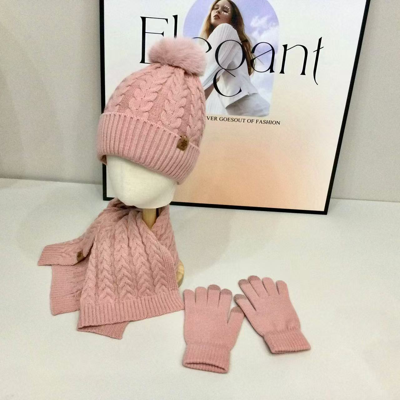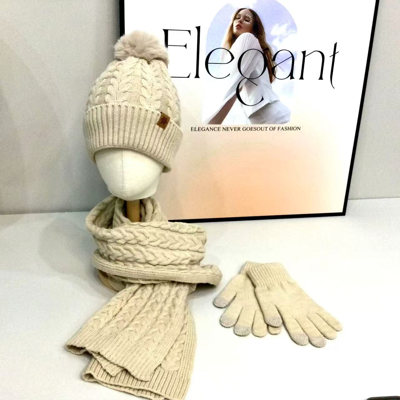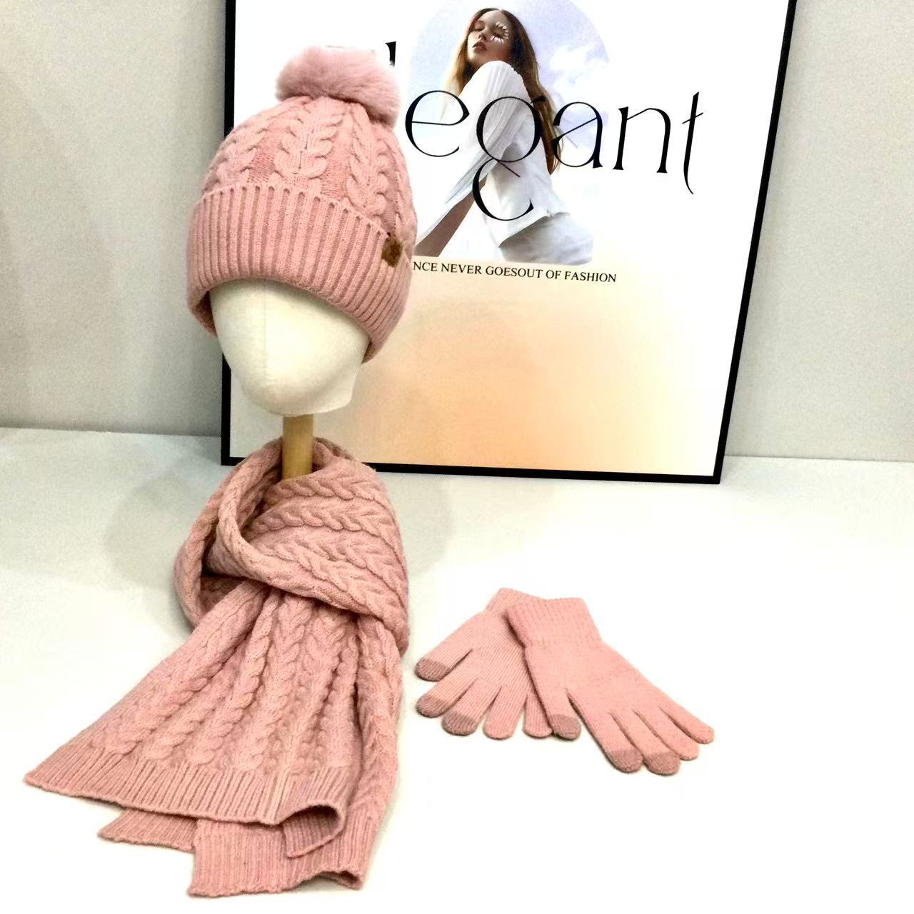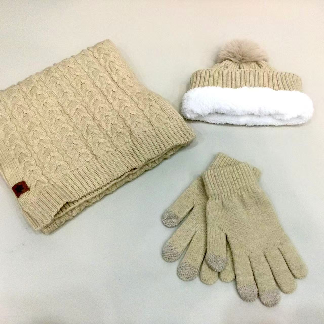 Amazon Transfronterizo Nuevo Estilo Coreano Trenzado Lana Color Puro Bufanda Guantes Sombrero Traje Cálido de Invierno de Tres Piezas