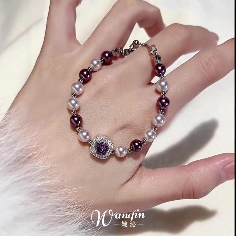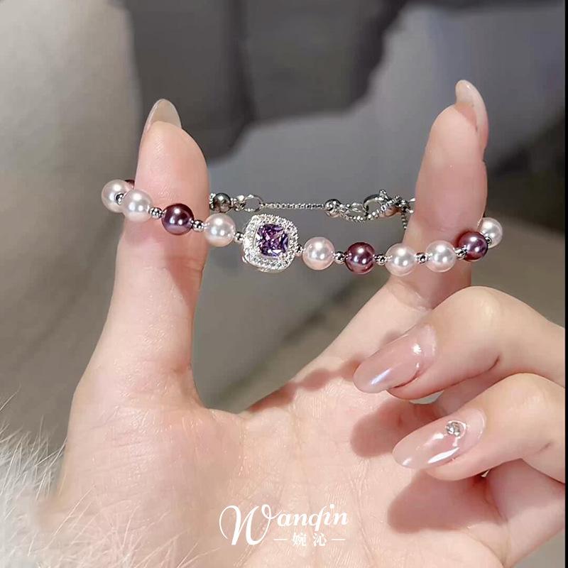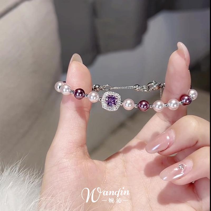 Pulsera Cuadrada de Perla Zircón Lujo Ligero Gama Alta Nicho Pulsera Temperamento Exquisito Moda Versátil Pulsera Venta al por Mayor Mujeres