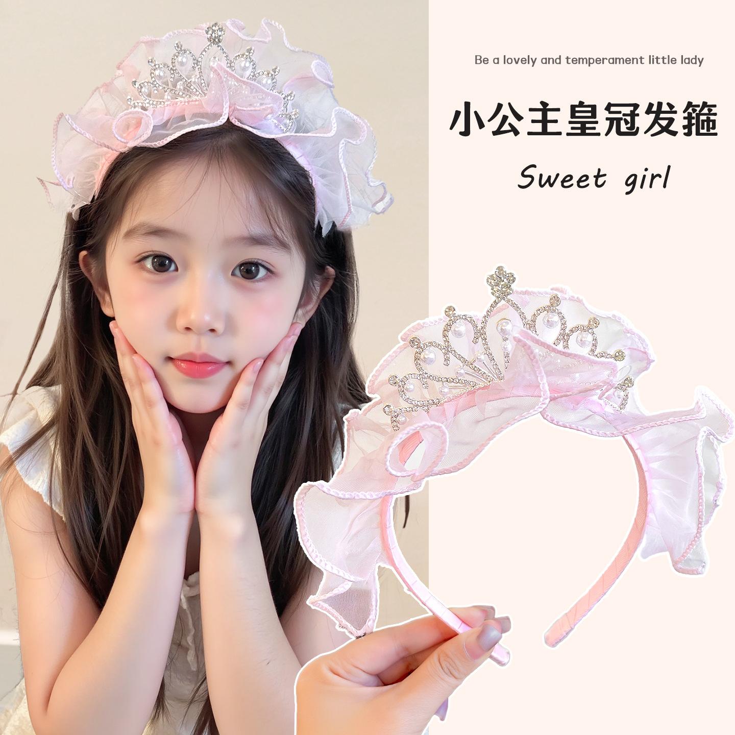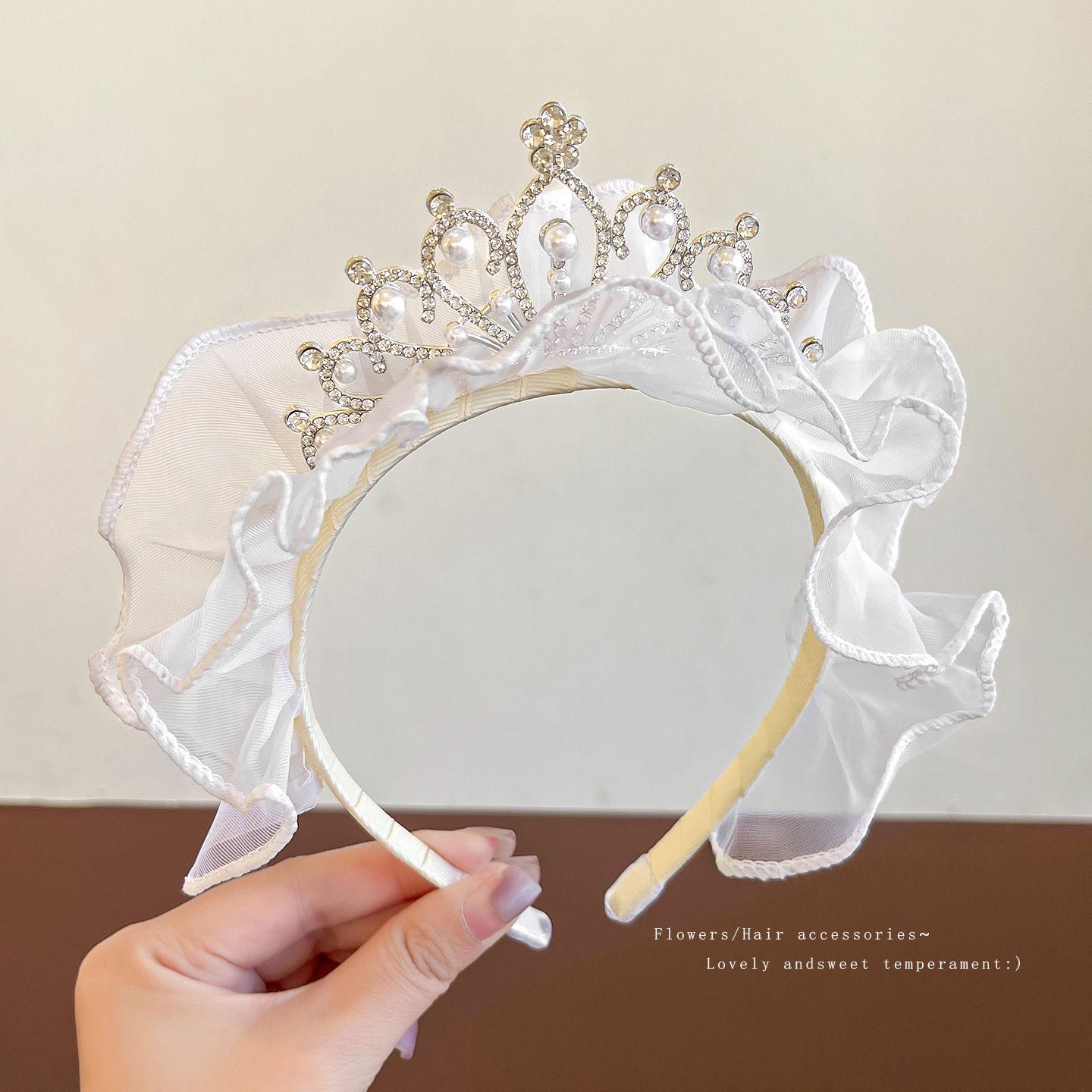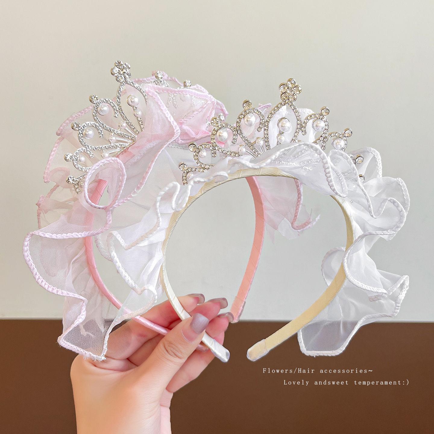 Diadema de Corona de Diamantes de Imitación de Princesa Diadema de Encaje de Perlas para Niños Accesorios para el Cabello para Vestido de Cumpleaños de Niña Tocado para Niña Bebé