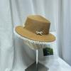 Sombrero de Paja con Cinta de Encaje Estilo Vacacional para Mujer Verano Francés Ala Ancha Playa Mar Sombrilla Protección Solar Recortado Sombrero para el Sol