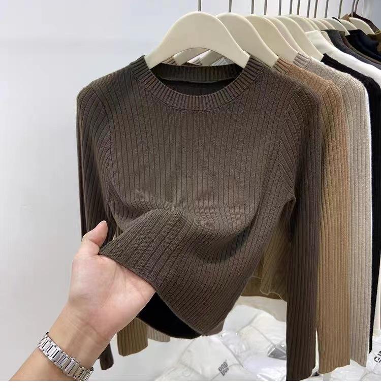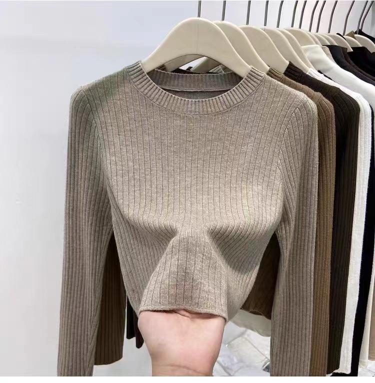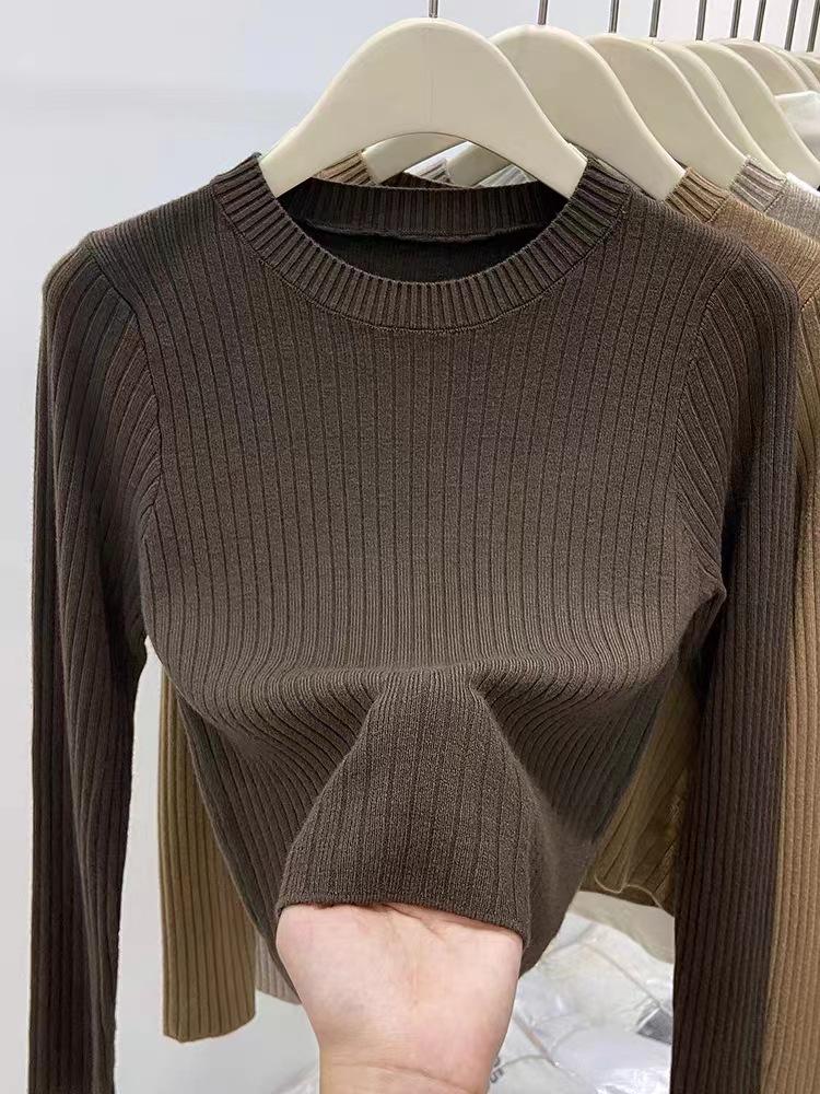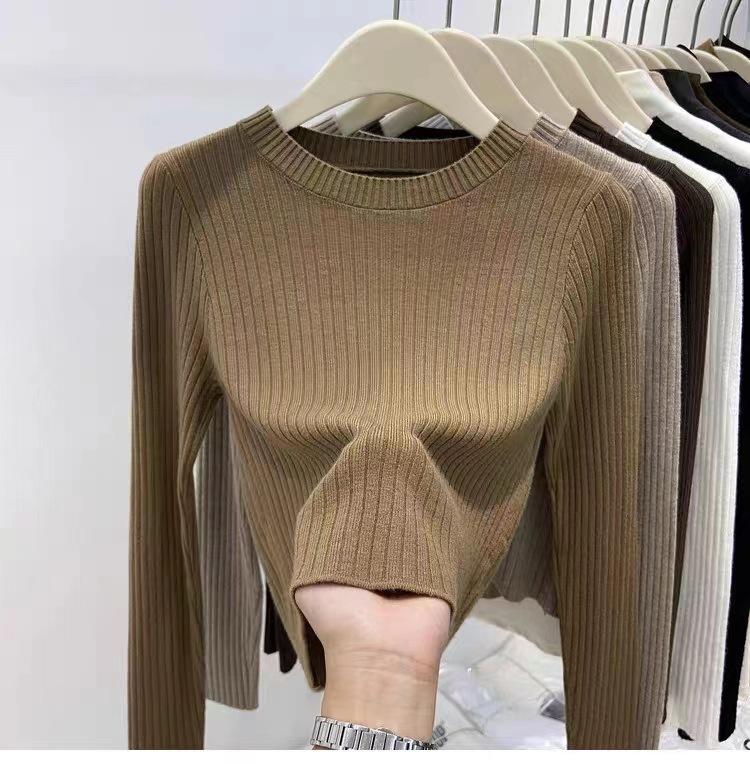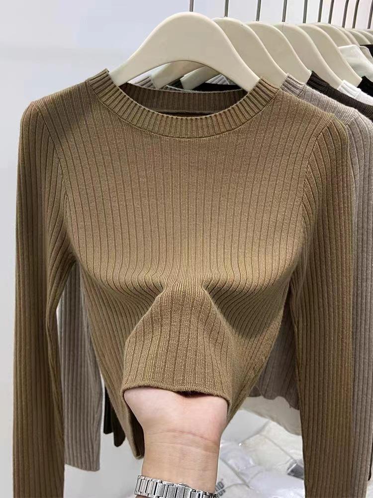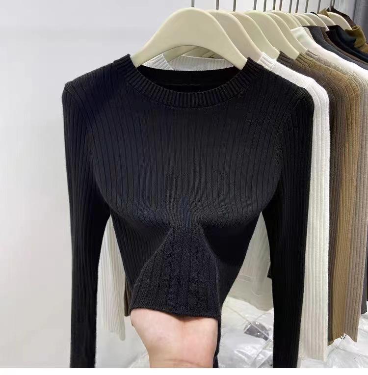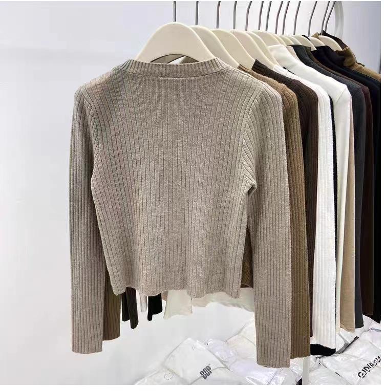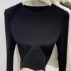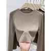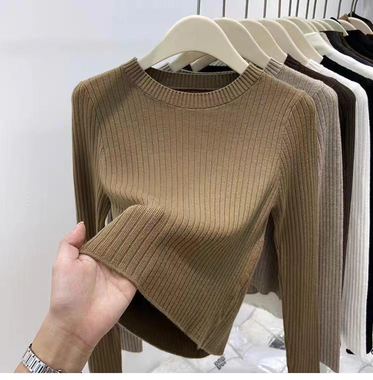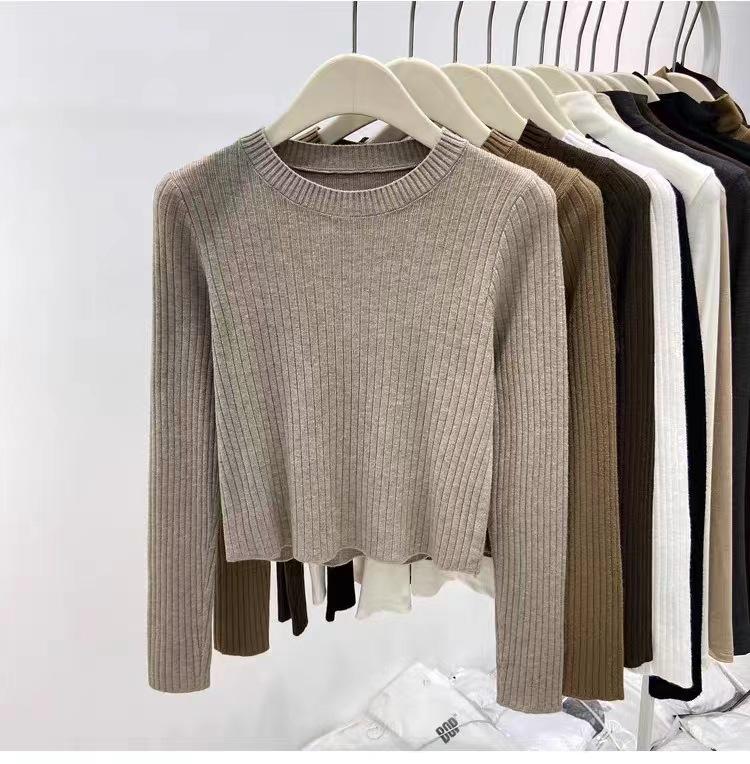 Suéter de punto francés de alta gama petite corto capa base primavera suave ceroso acanalado top interior mujer
