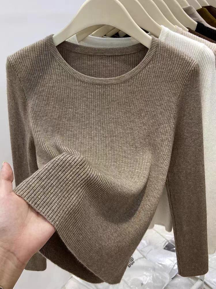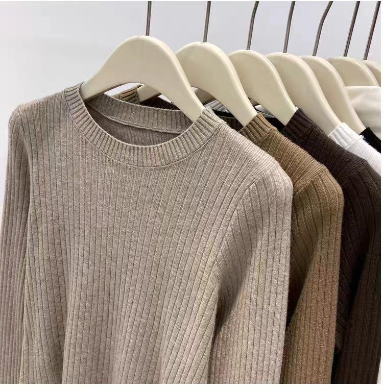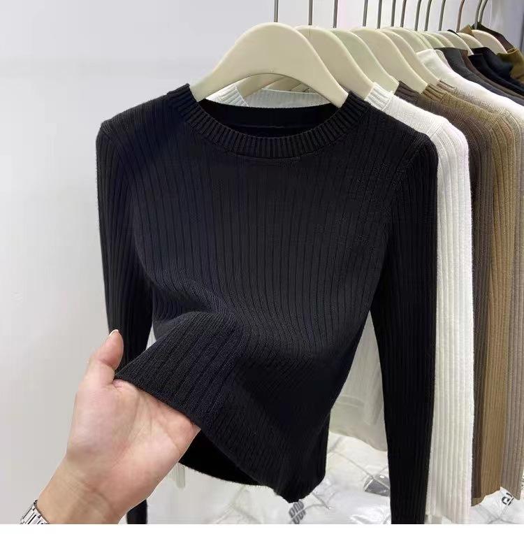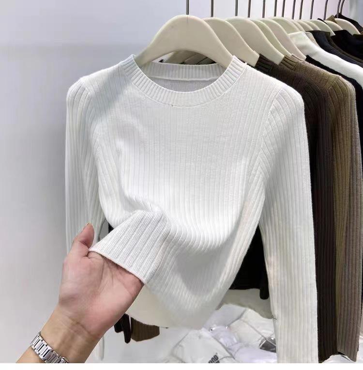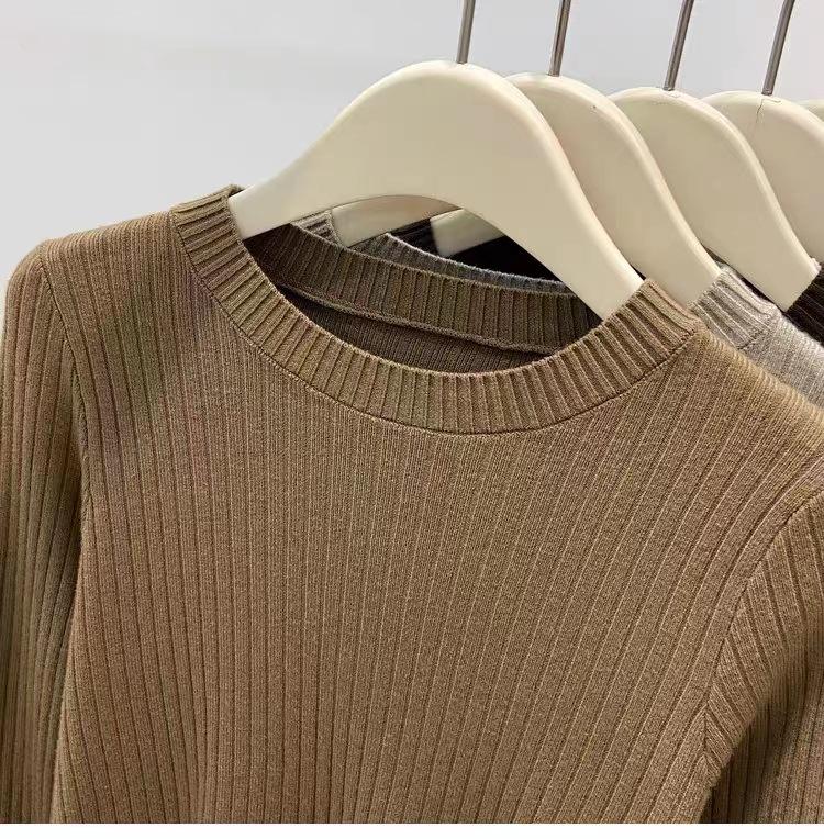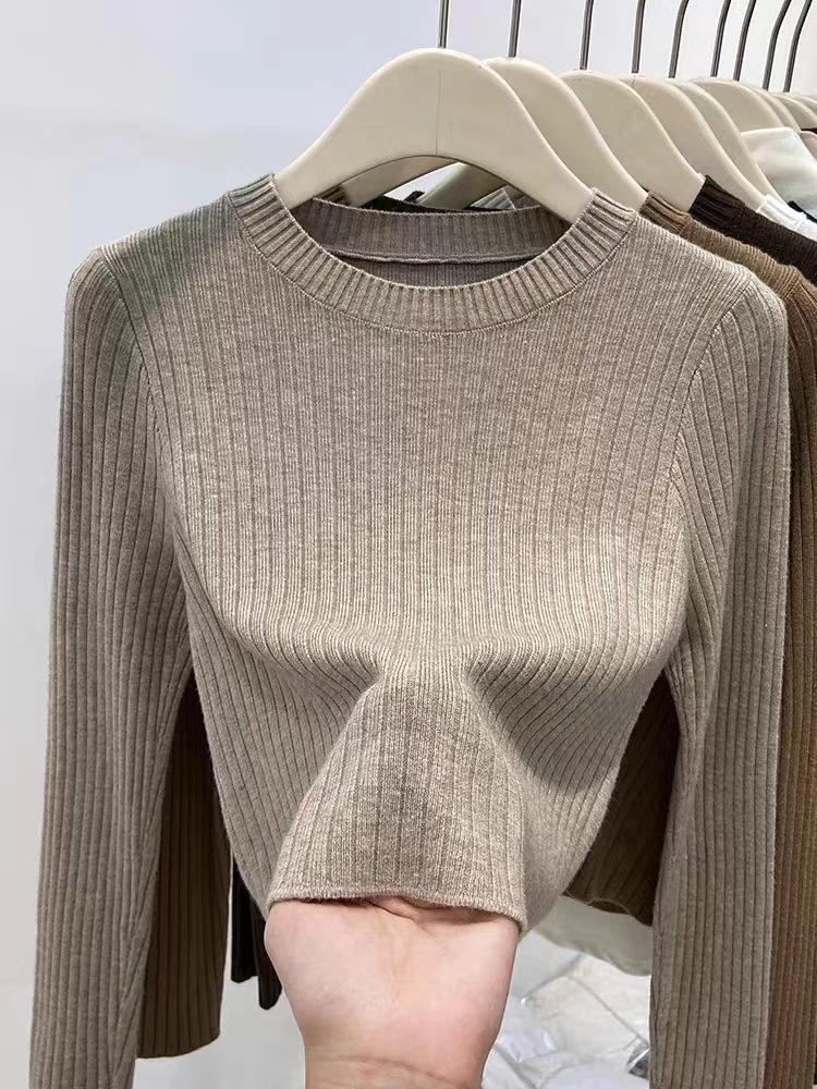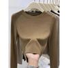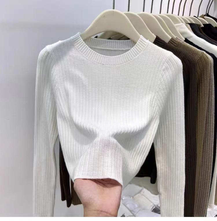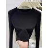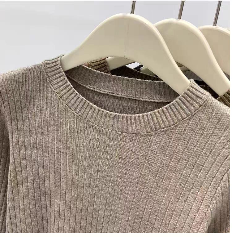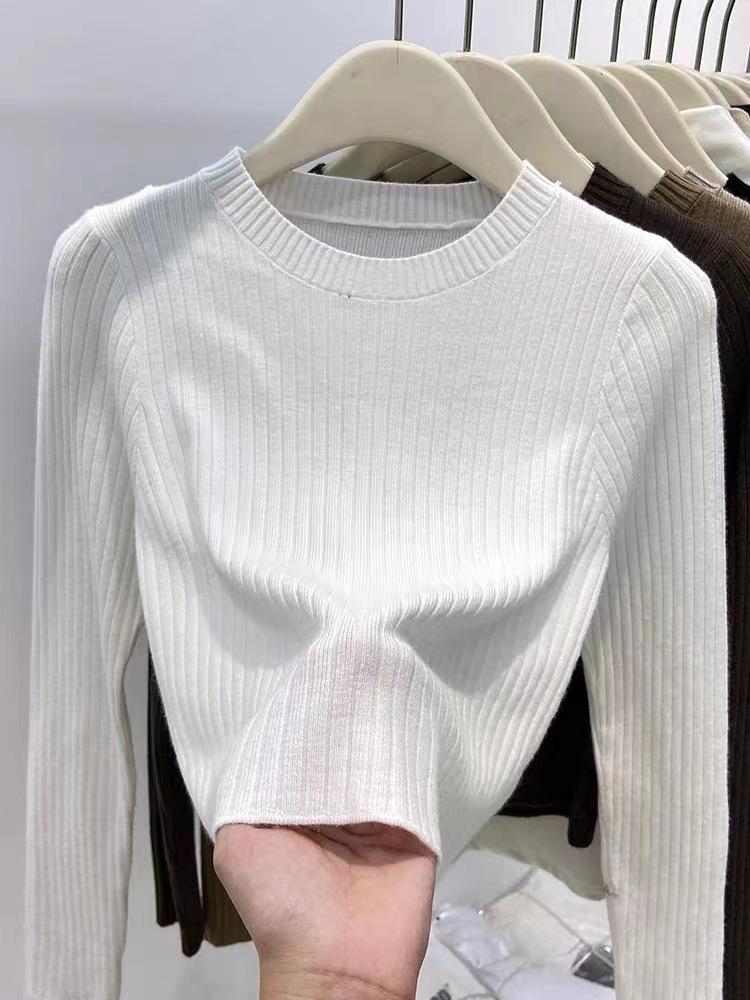 Suéter de punto francés de alta gama petite corto capa base primavera suave ceroso acanalado top interior mujer