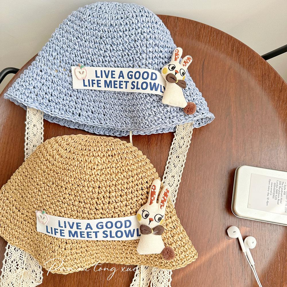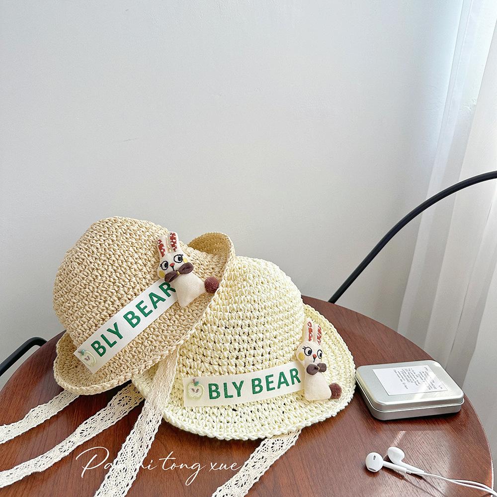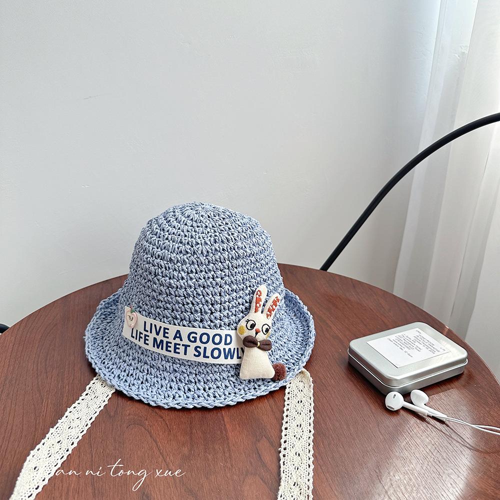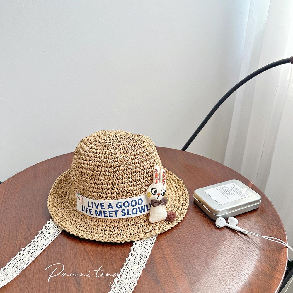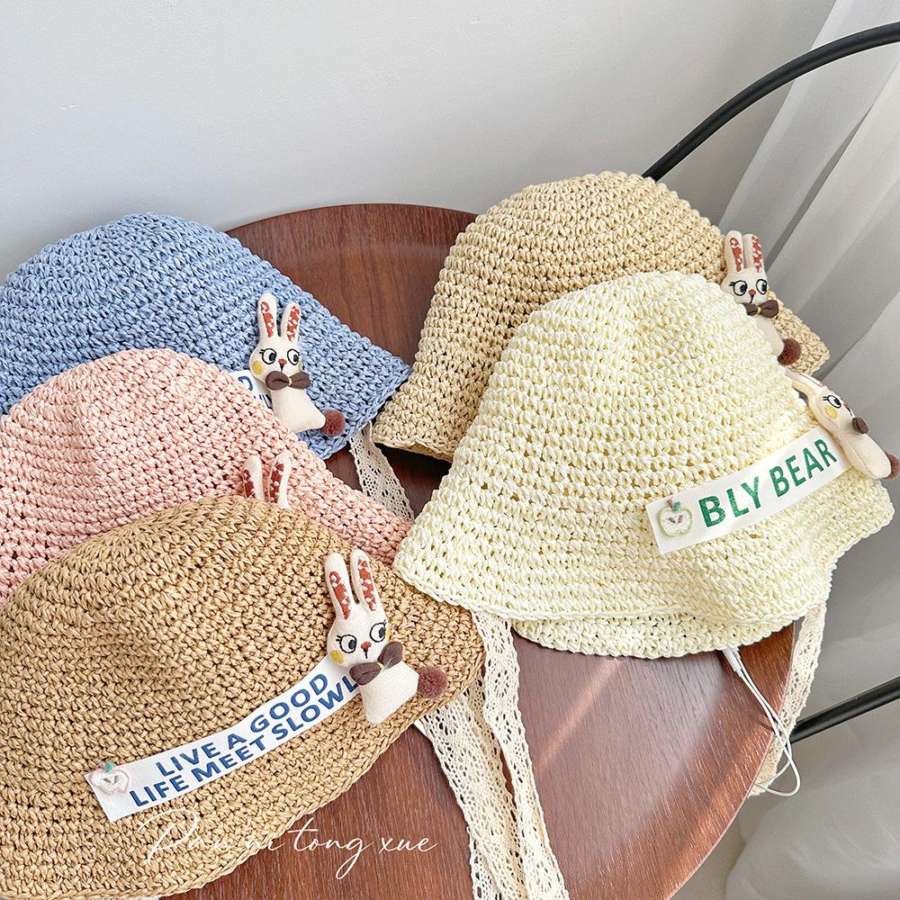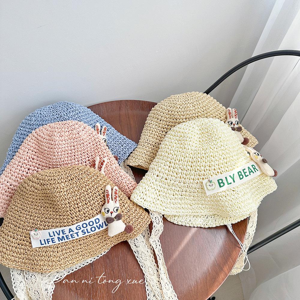 Lindo Sombrero de Sol para Bebé de Conejo para Salir Sombrero de Paja para Bebé Verano Sombrero de Sol Combinable para Todo Sombrero de Sol de Pescador para Niños