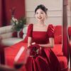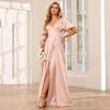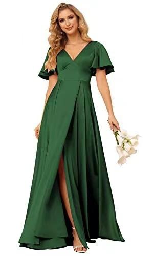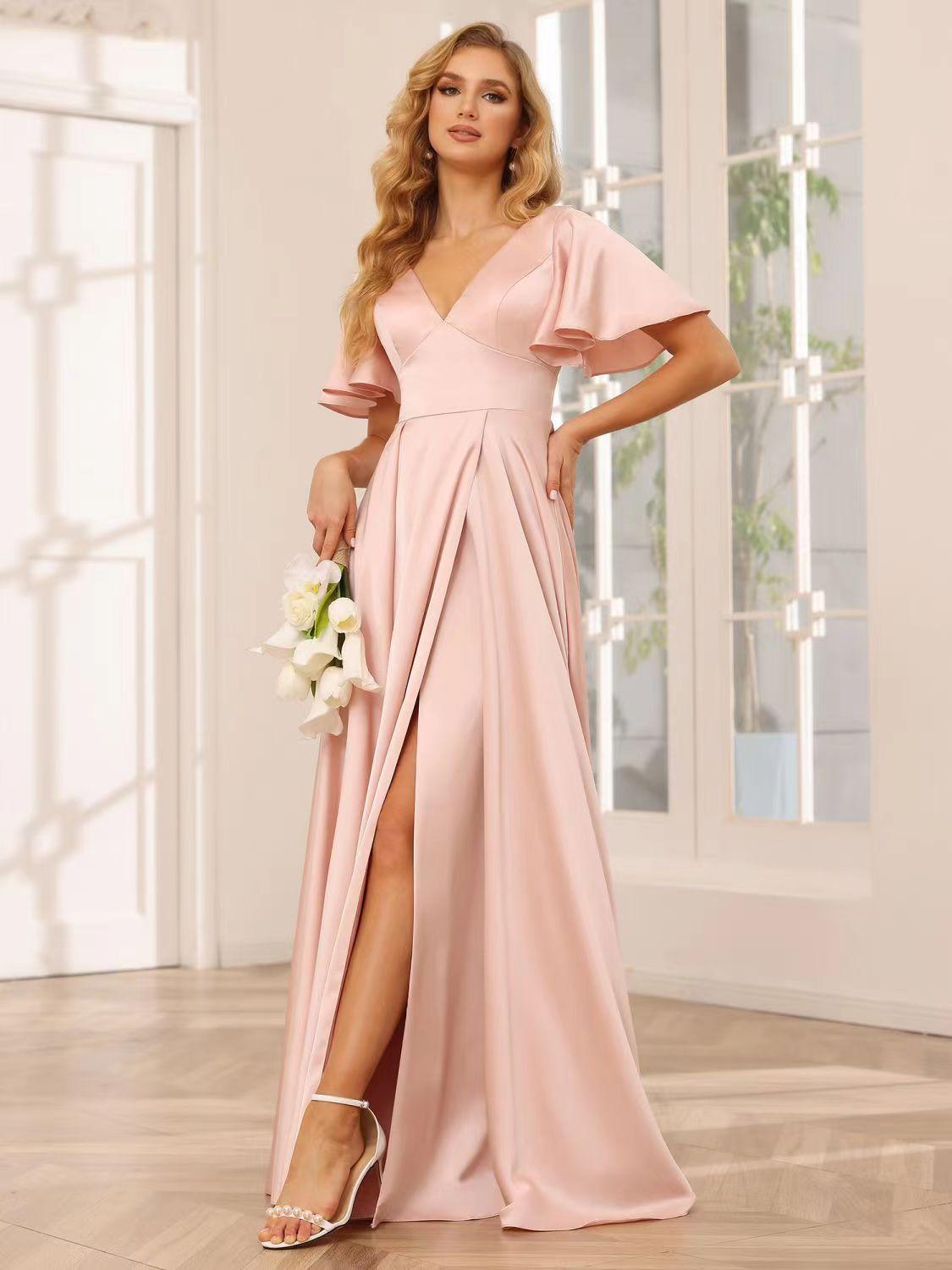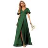 Vestido de Noche Sexy de Satén de Amazon Cuello en V Profundo Abertura Lateral Vestido de Graduación Cintura Alta Temperamento Adelgazante Vestido de Fiesta