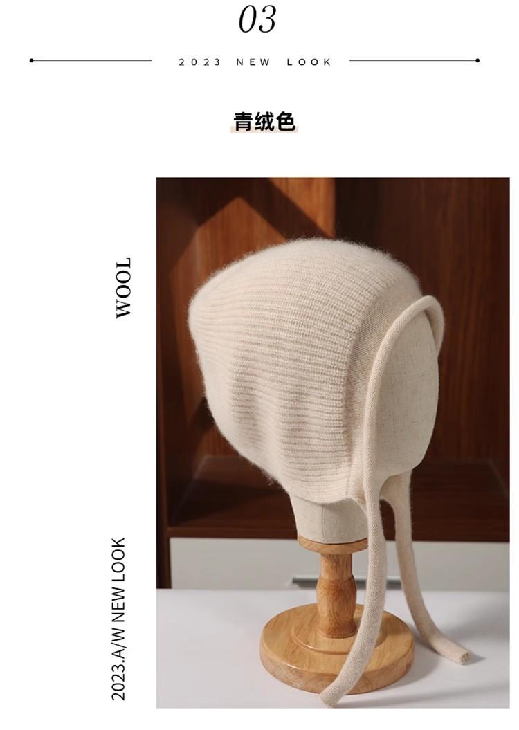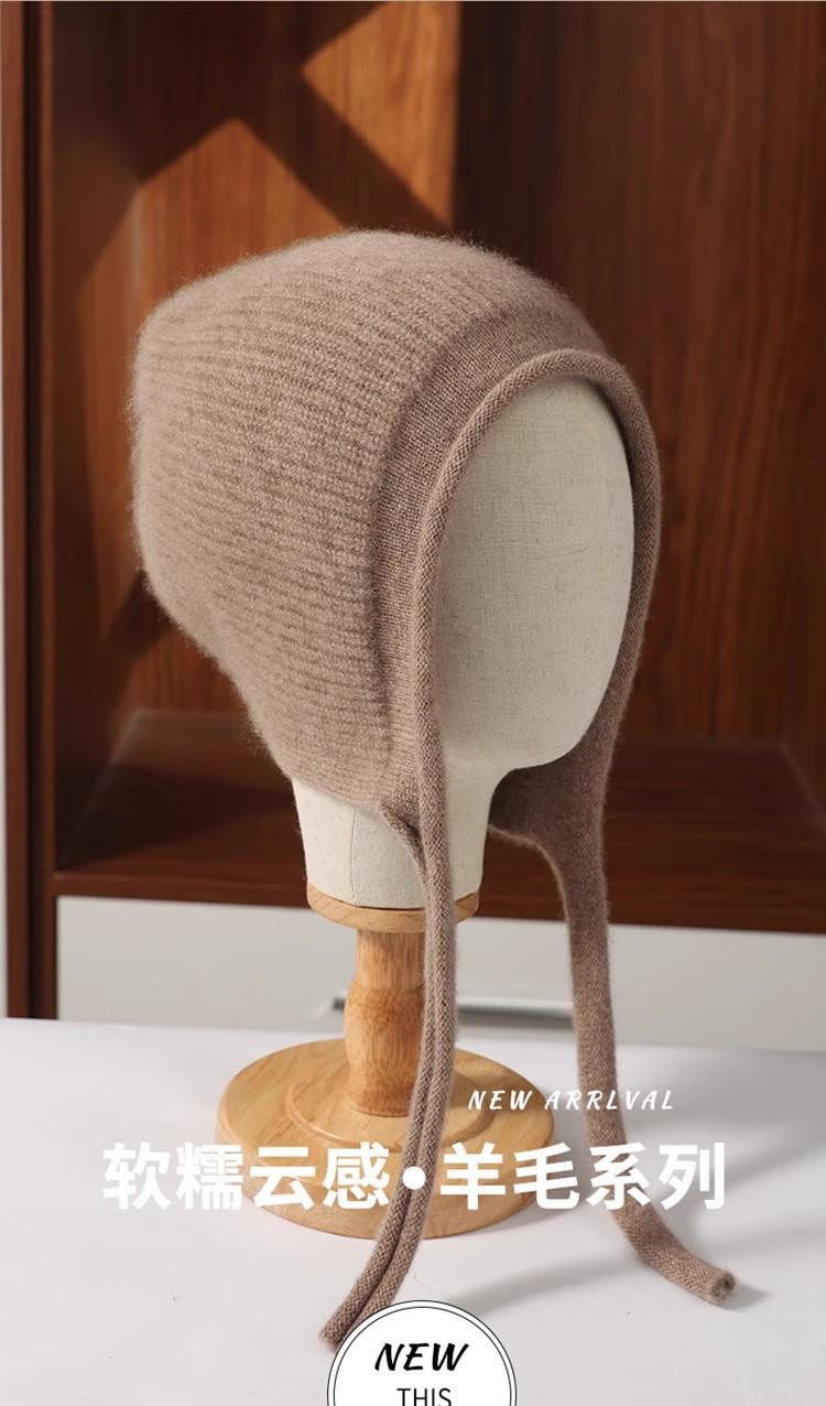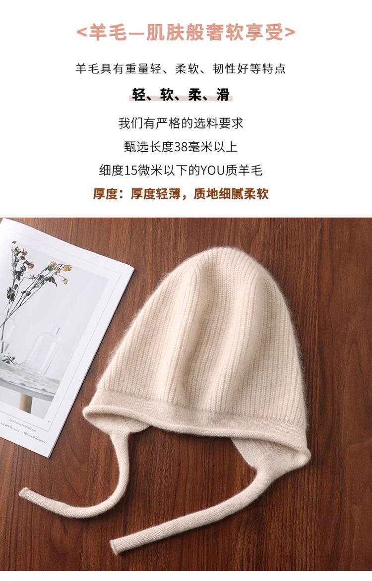 Otoño e invierno lana pura tejida gorro de lana infantil lindo gorro de lana de cachemira cálido protección para las orejas cara pequeña gorro frío al por mayor