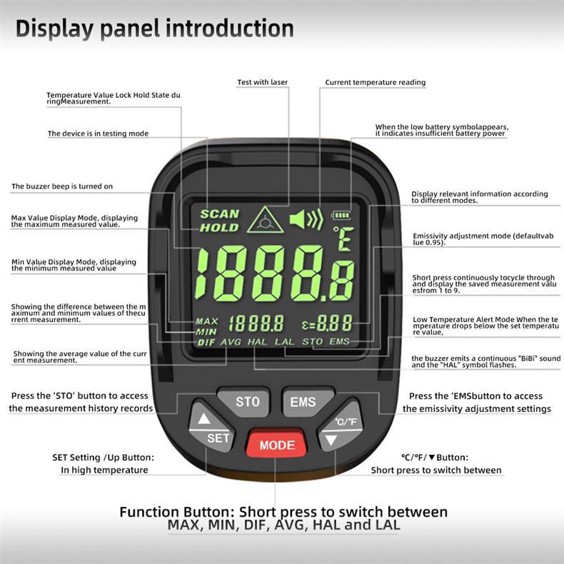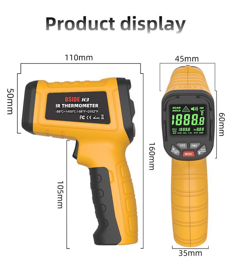 Termómetro infrarrojo de alta temperatura BSIDE H3 -50 grados a 1400 grados 50:1 termómetro termómetro sin contacto