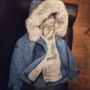 forro gris + cuello de piel grisIluminación normal
