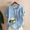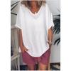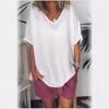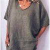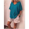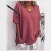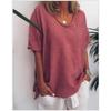 2025 Amazon AliExpress Europa y América Verano Nuevo Color Sólido Holgada Manga Corta Casual Algodón Lino Camiseta