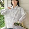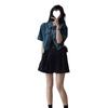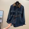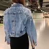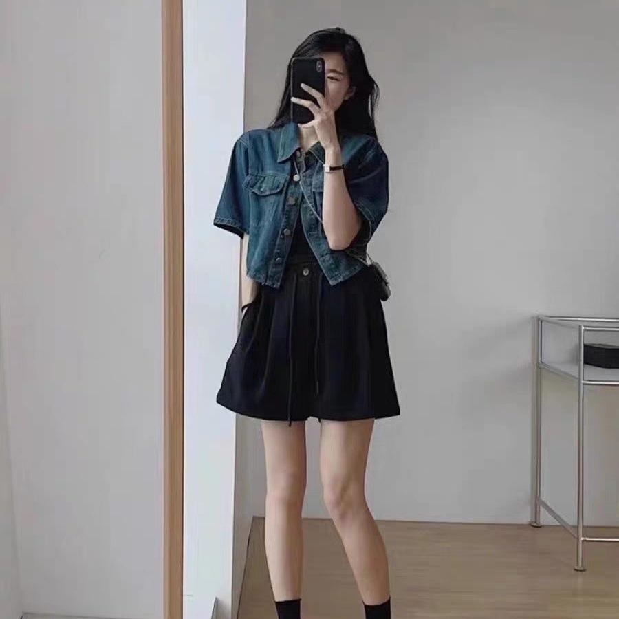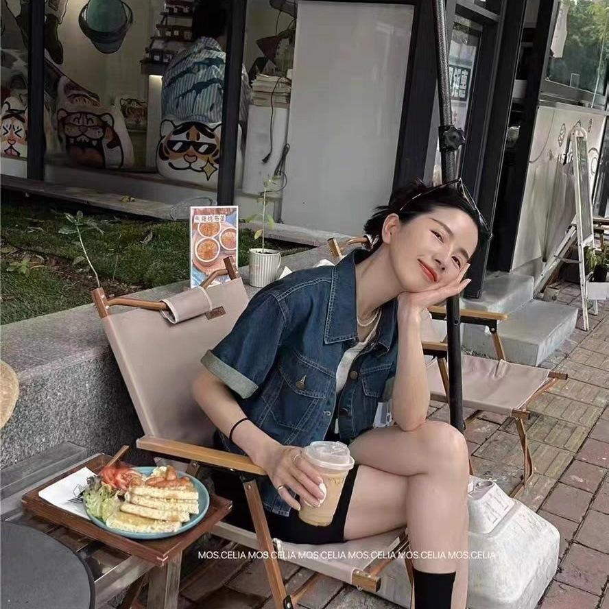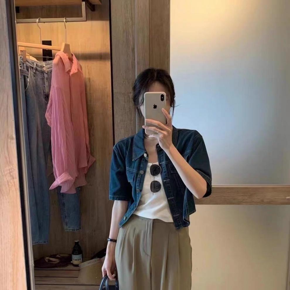 Chaqueta vaquera vintage de manga corta estilo Hong Kong para mujer, verano 2024, nueva, holgada, versátil, con solapa pequeña, camisa delgada