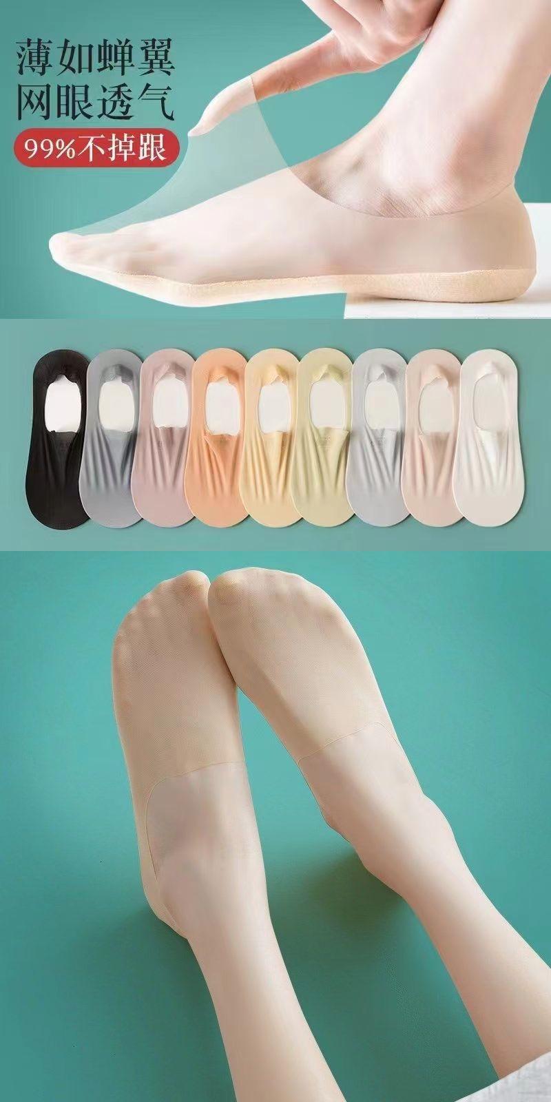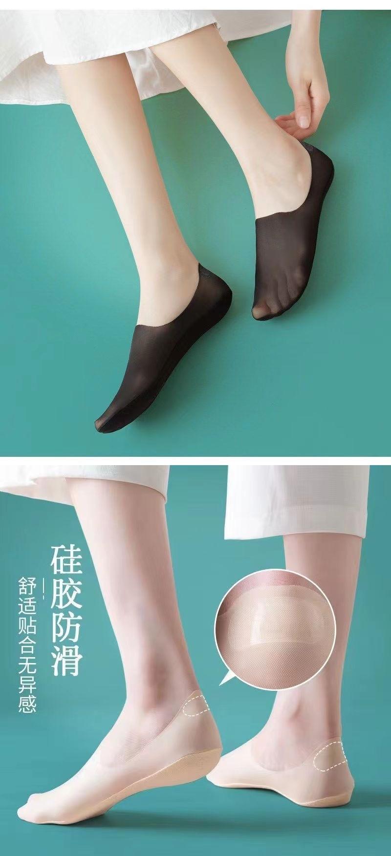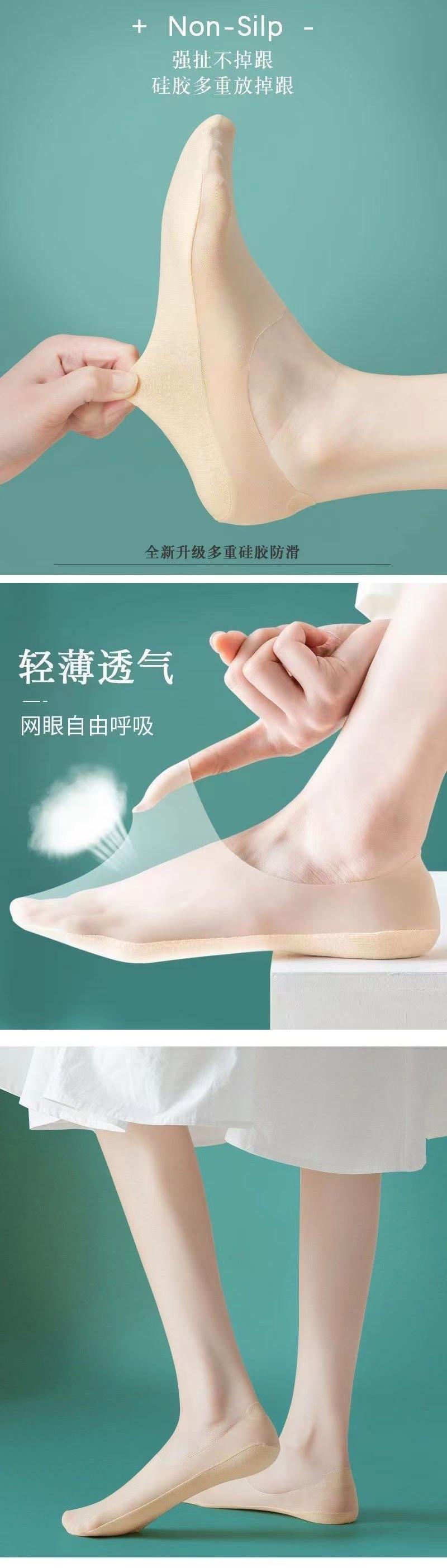 Calcetines invisibles de boca baja tipo barco para mujer, calcetines de malla ultrafinos de verano con suela delgada, calcetines de seda de hielo con talón antideslizante de silicona para mujer