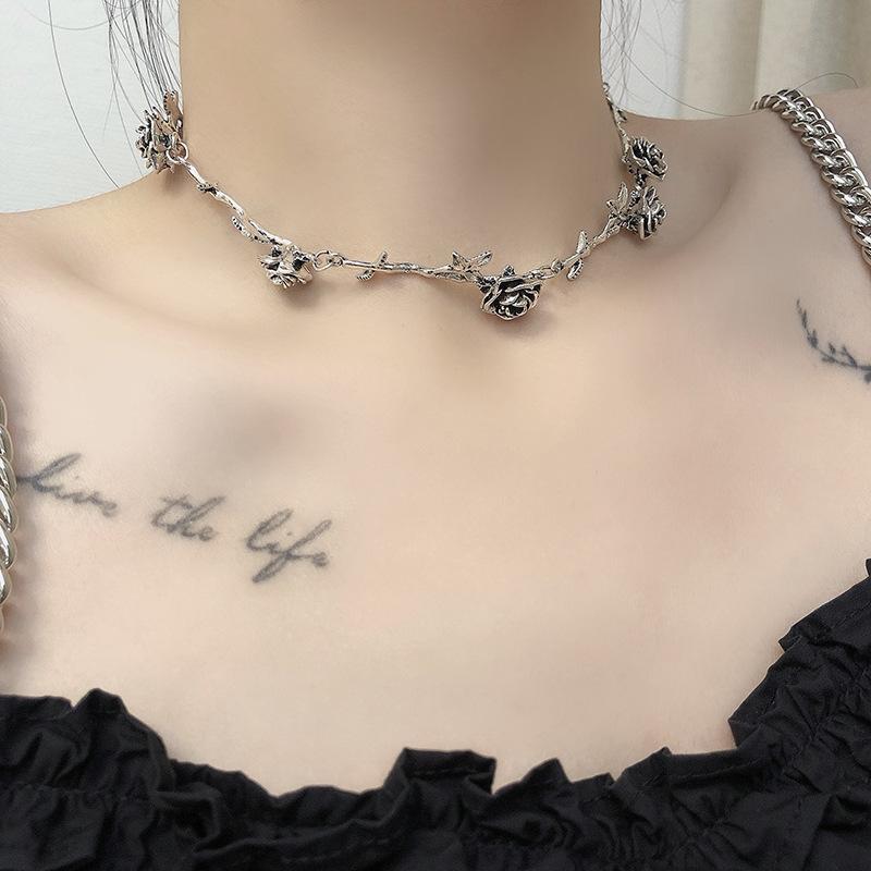 Collar de Camelia Negra Retro Francés para Mujer Diseño Nicho Decoración de Rosa Cadena de Clavícula Moderna Accesorios