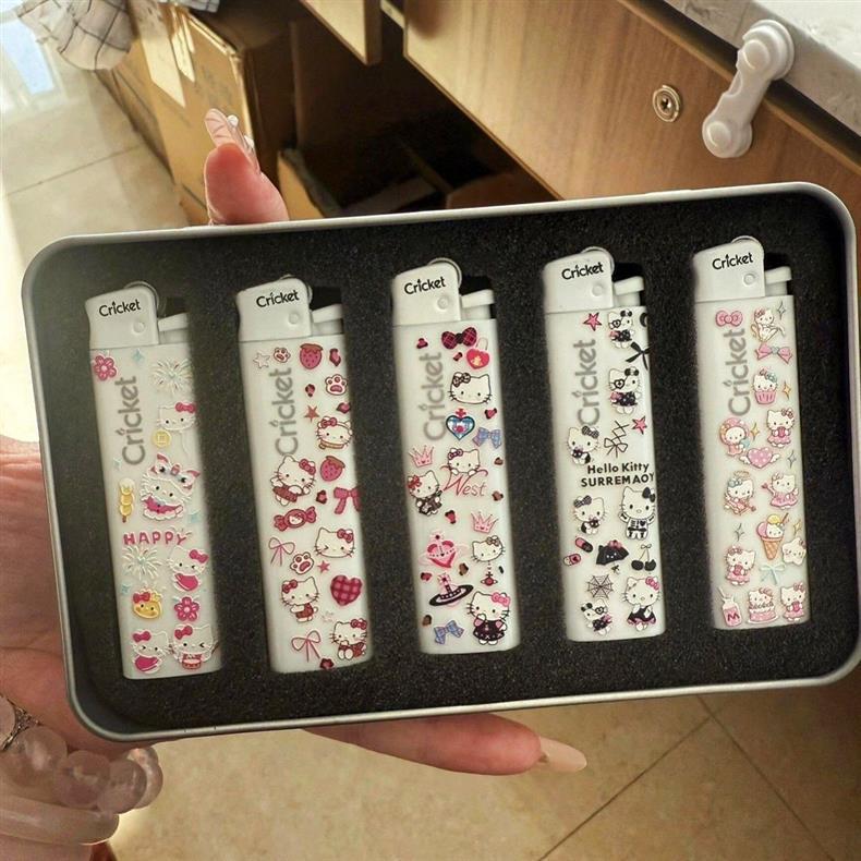 [iron box] five lighters + five hello kitty stickers [random, please note if you choose]