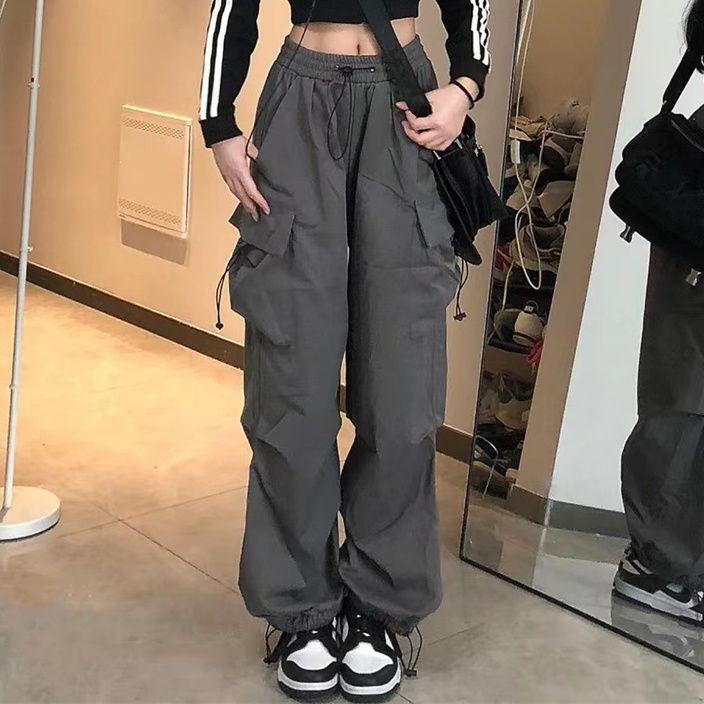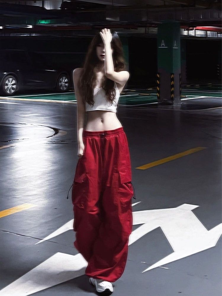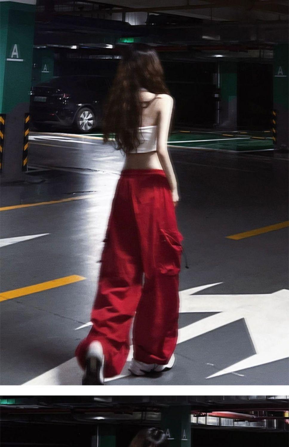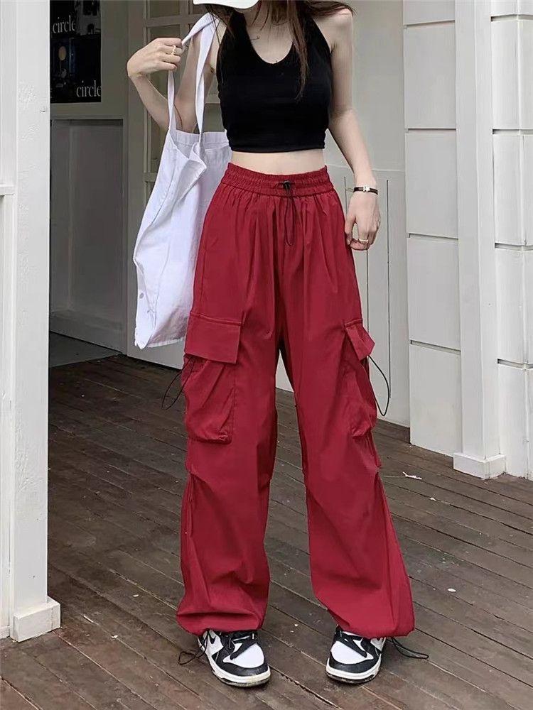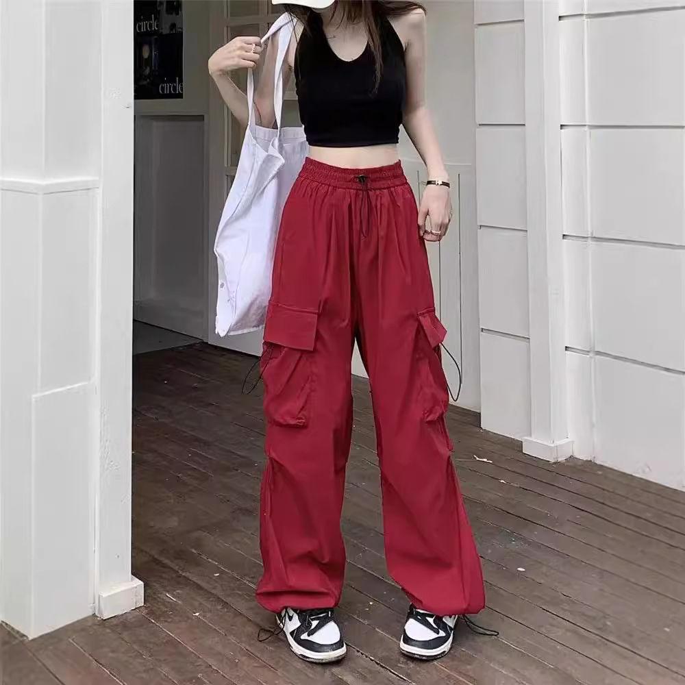 Pantalones cargo rojos americanos para mujer Primavera y otoño 2024 Casual Sueltos Retro High Street Jazz Delgados Rectos Deportivos