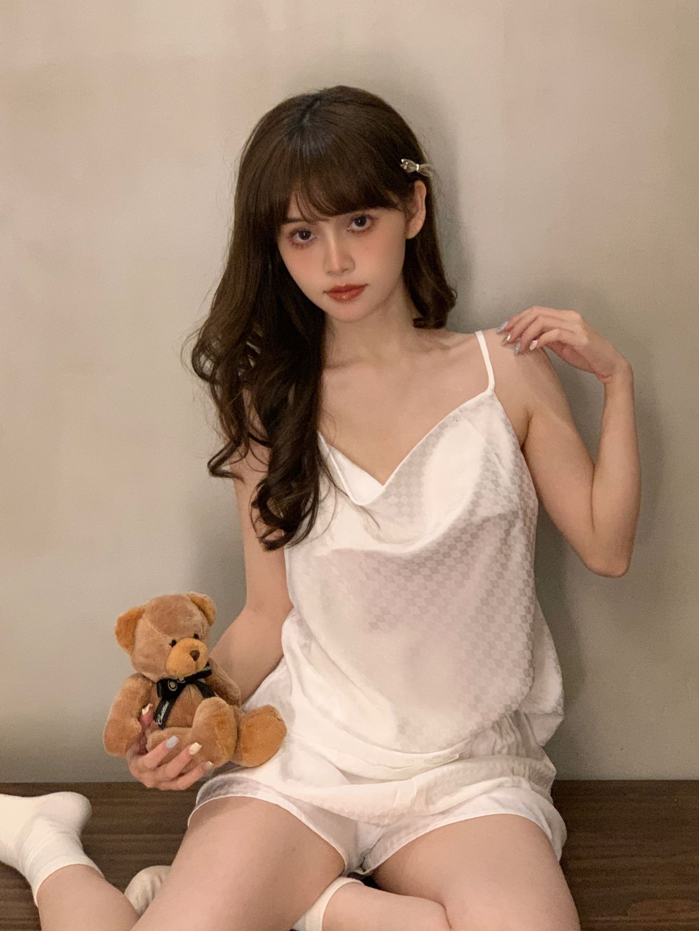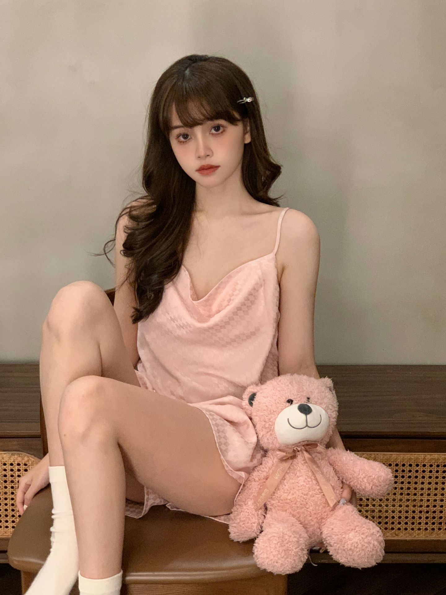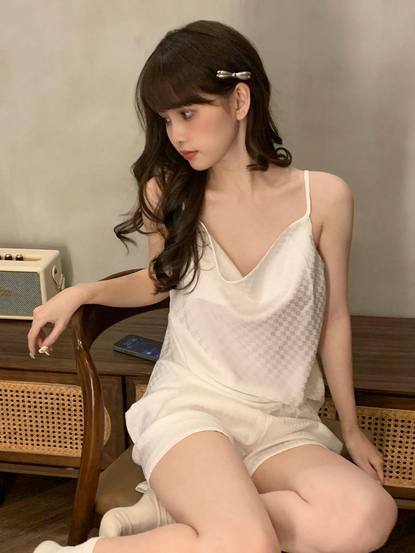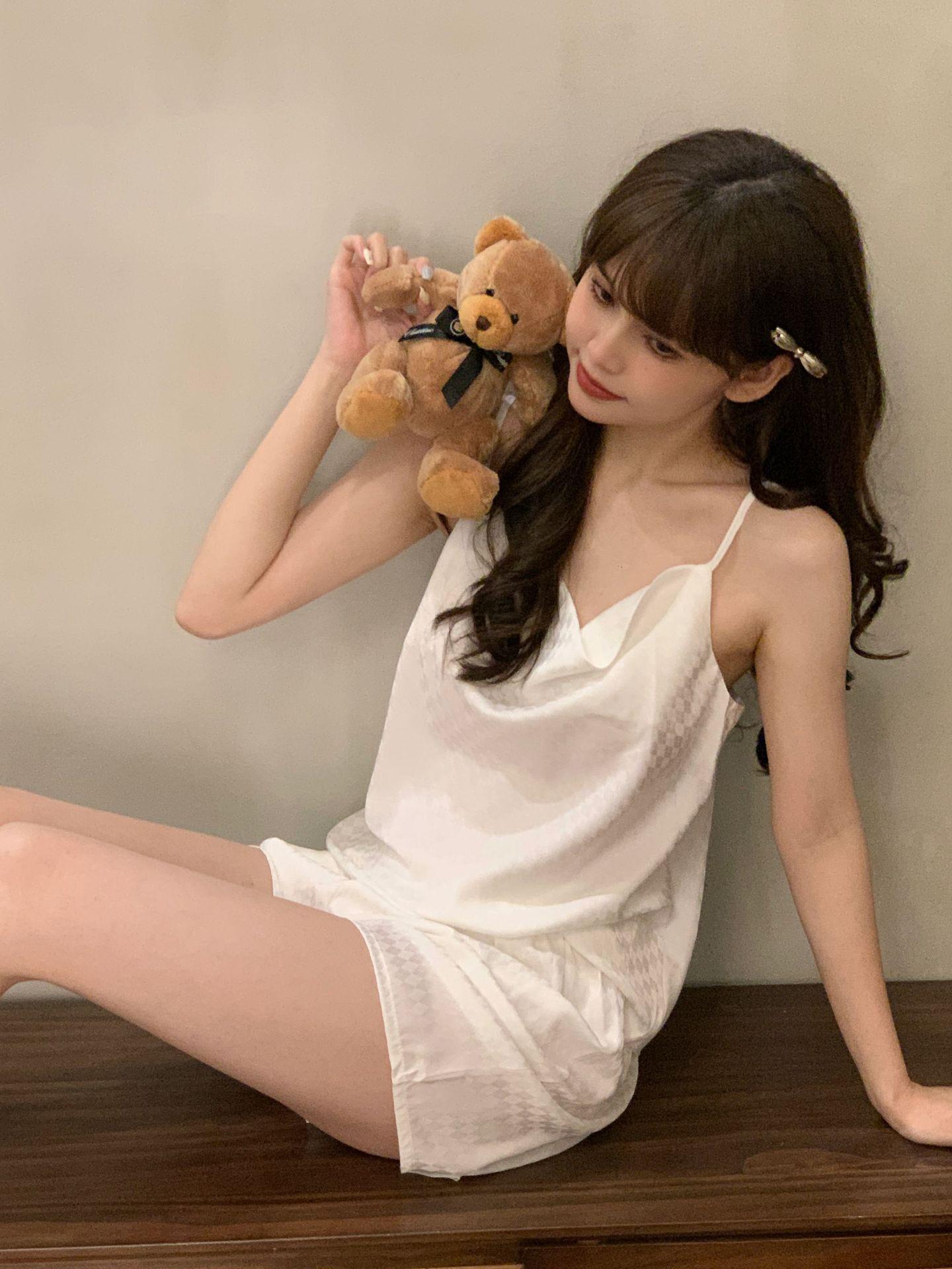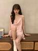 Pijamas de Seda de Hielo para Mujer Verano Niñas Deseo Puro Tirantes Shorts Conjunto Ropa para el Hogar Pijamas Mujer Rosa Sexy Ropa para el Hogar