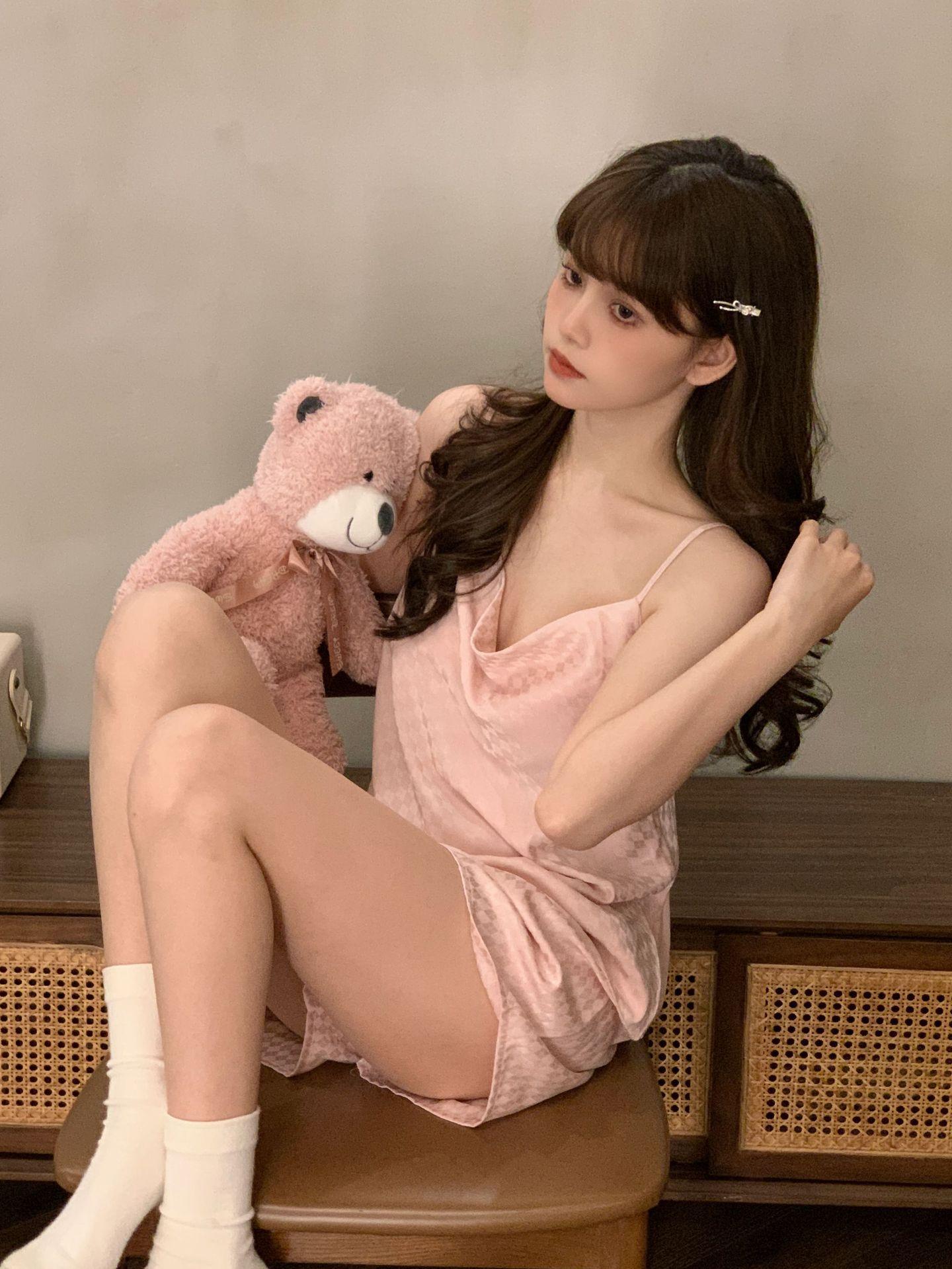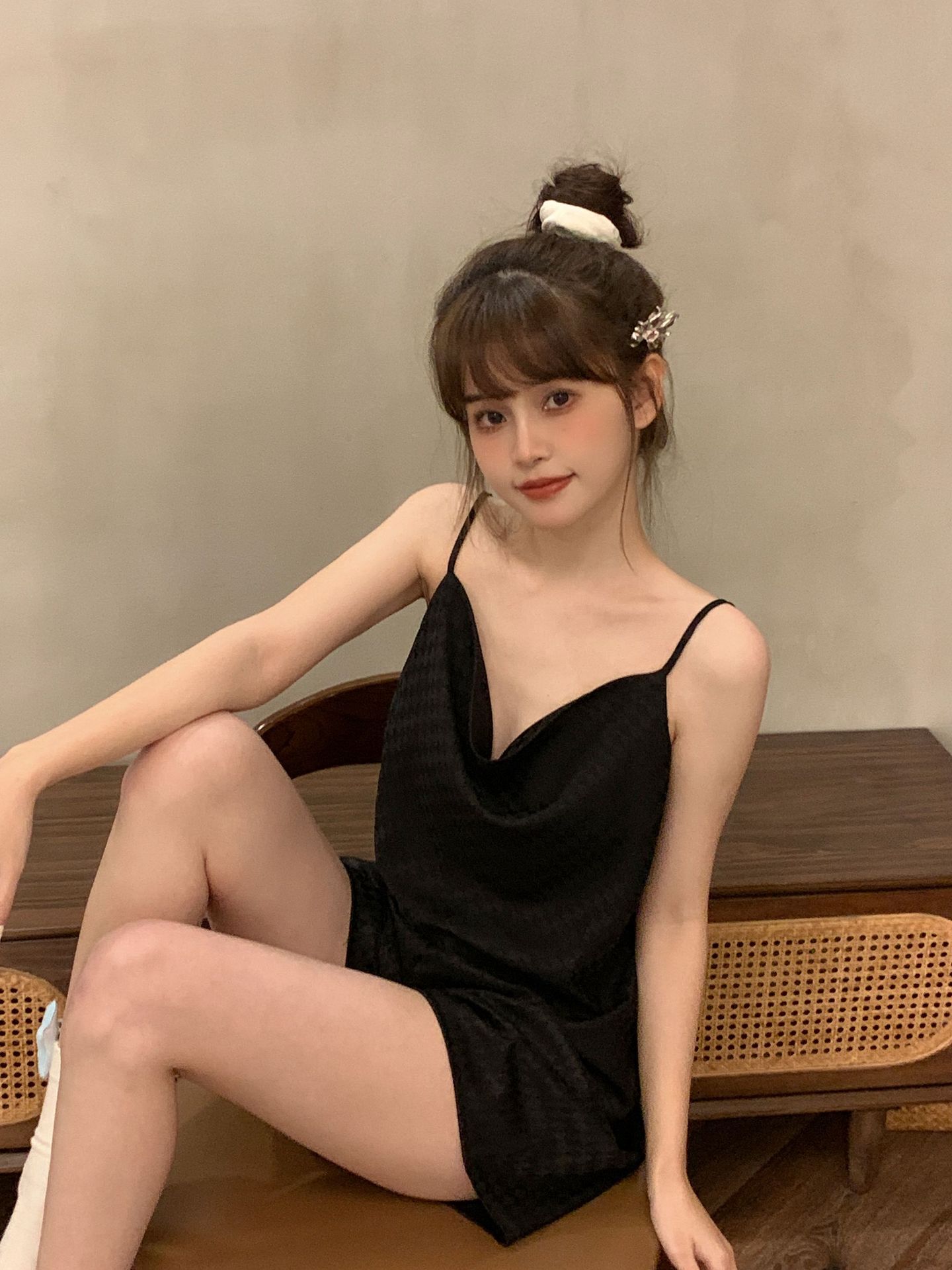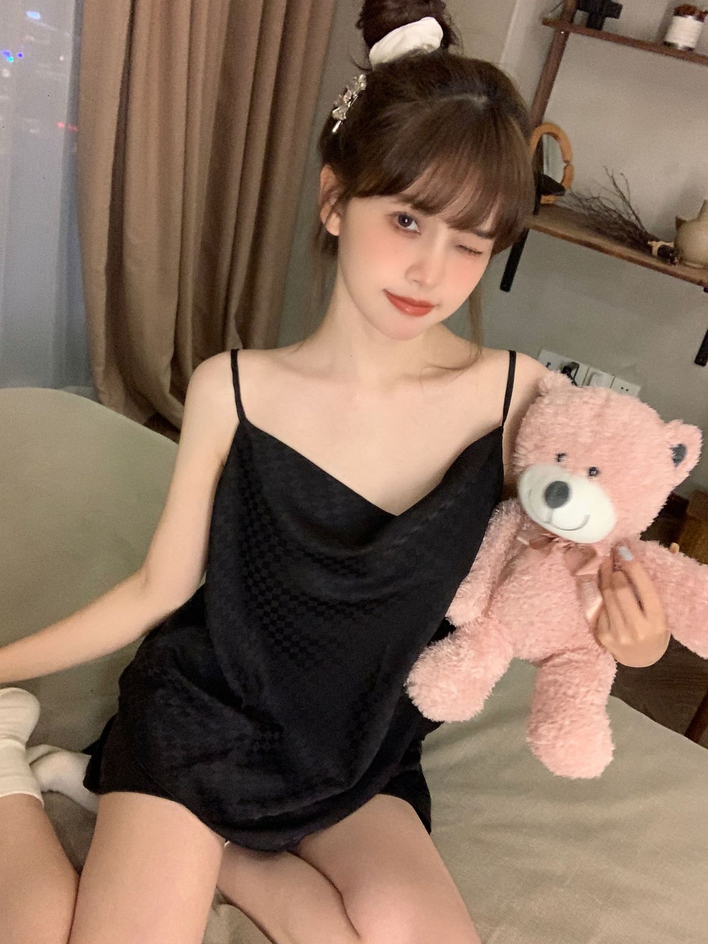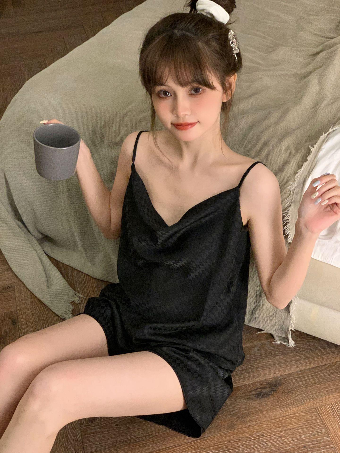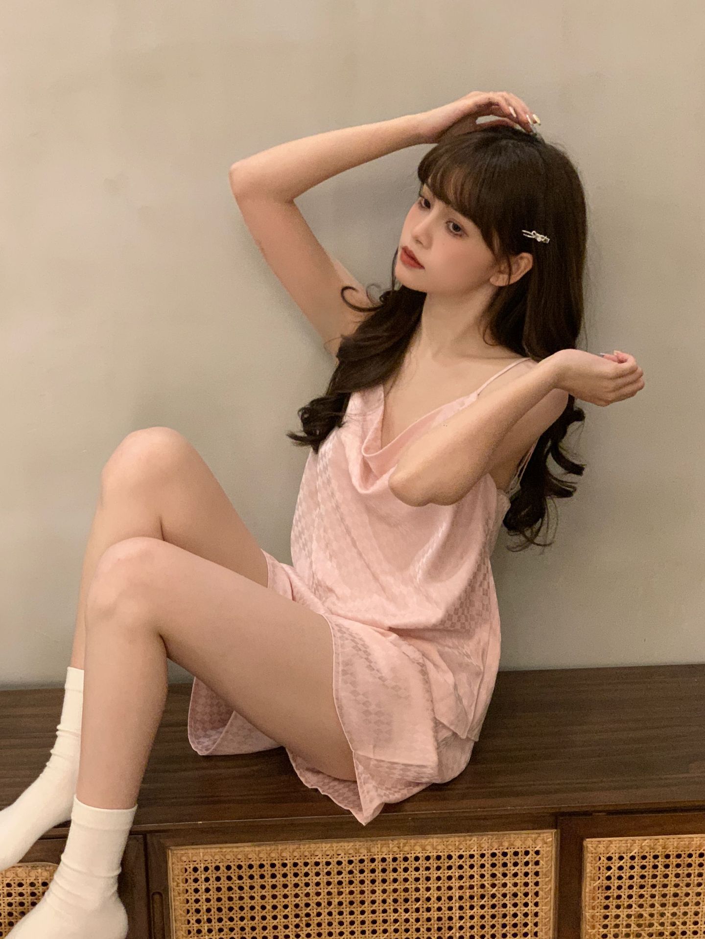 Pijamas de Seda de Hielo para Mujer Verano Niñas Deseo Puro Tirantes Shorts Conjunto Ropa para el Hogar Pijamas Mujer Rosa Sexy Ropa para el Hogar
