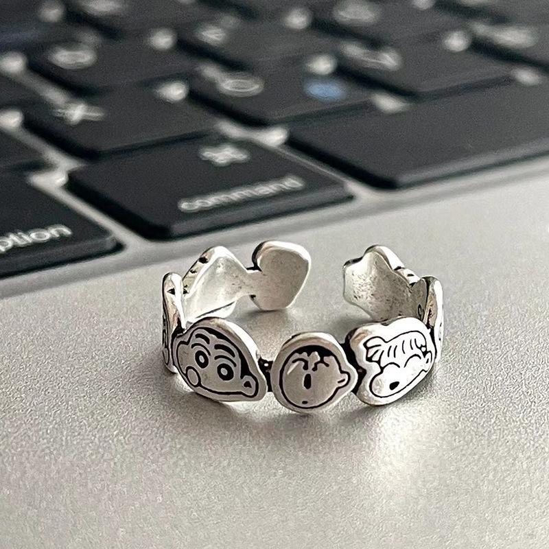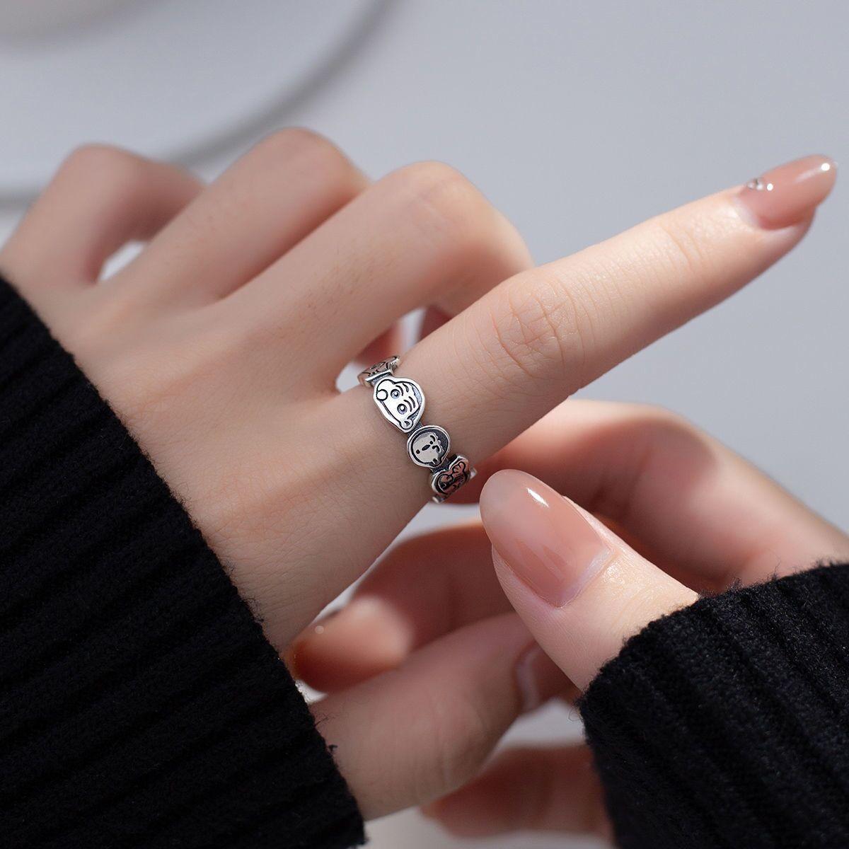 Nuevo y lindo anillo de dibujos animados, pequeño anillo nuevo para mujer, diseño de nicho, anillo de dedo índice abierto ajustable