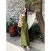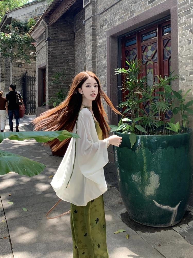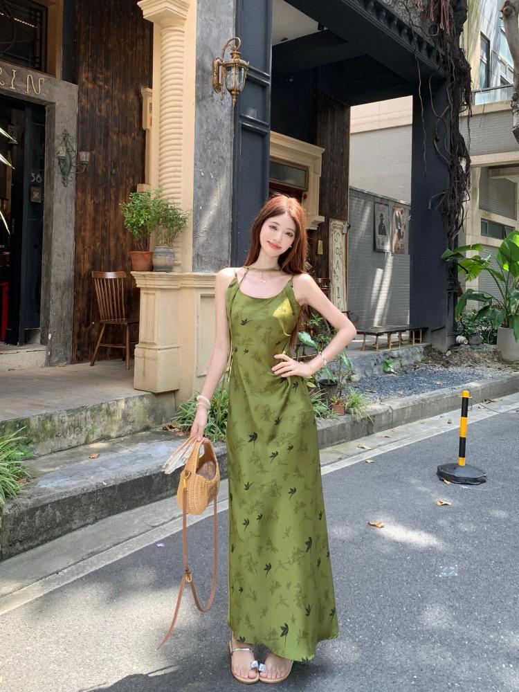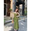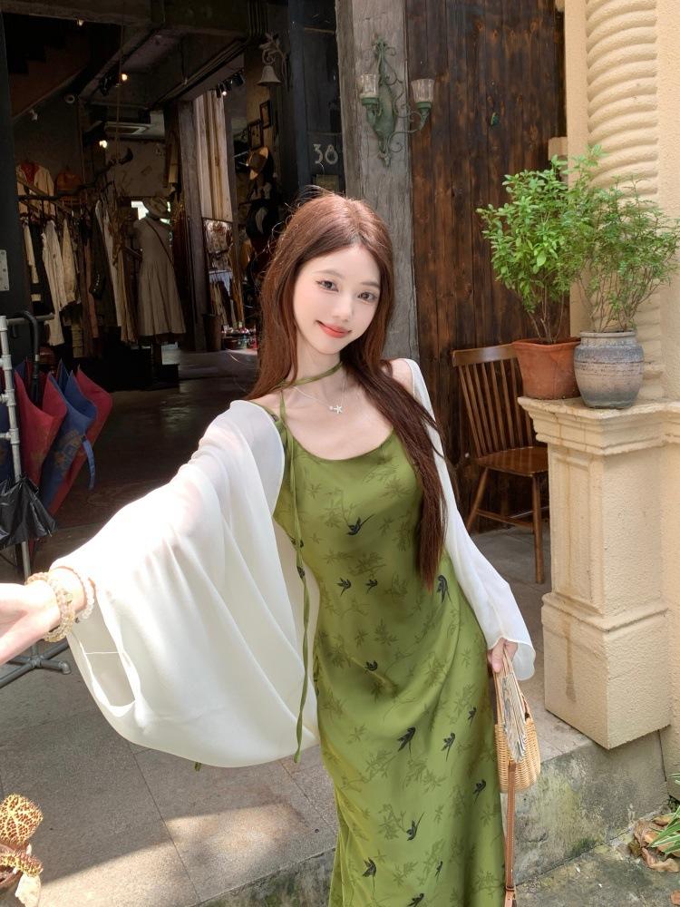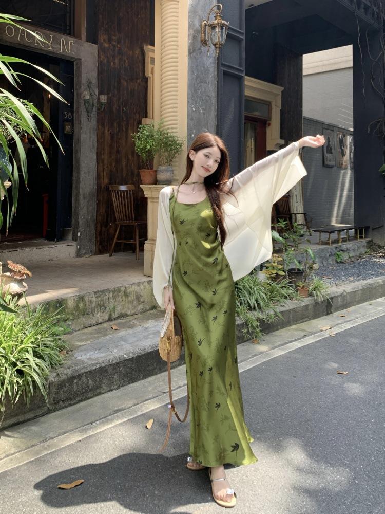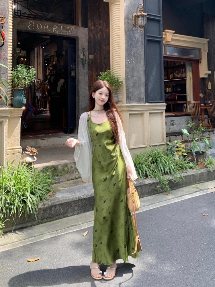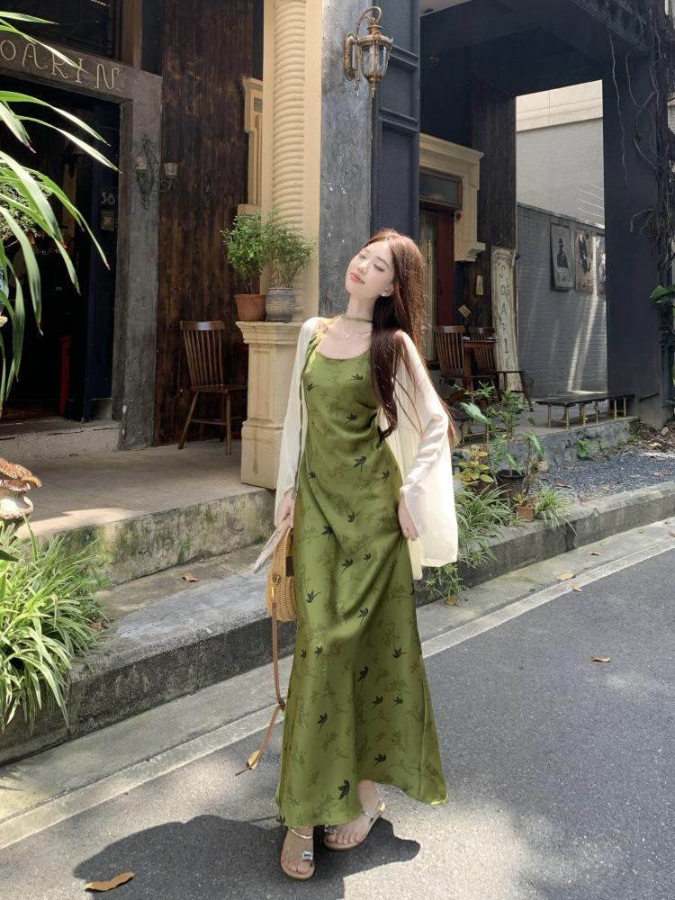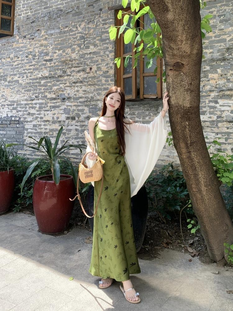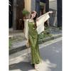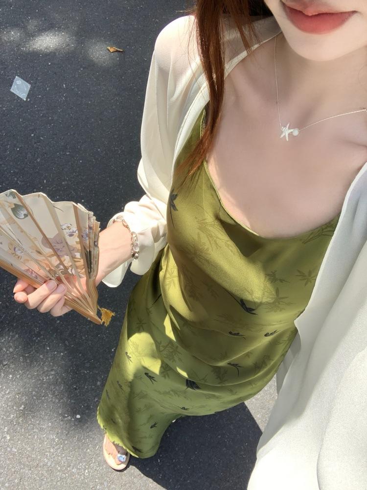 Nuevo Vestido Verde de Tirantes Espagueti Estilo Chino para Mujer Verano 2025 Nuevo Temperamento de Alta Gama Conjunto de Dos Piezas Vestido Largo