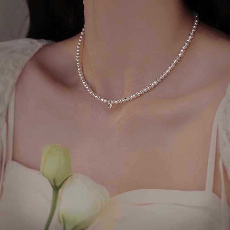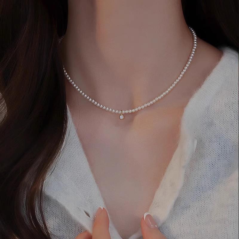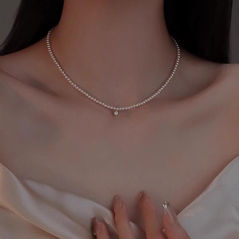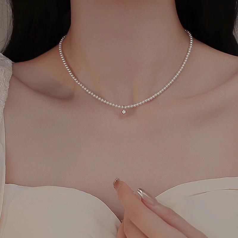 Collar de Perlas Coreano Shijia de Plata Esterlina S925 de 3 mm para Mujer con Colgante de Diamante Brillante Nicho de Lujo Ligero Temperamento Clavícula