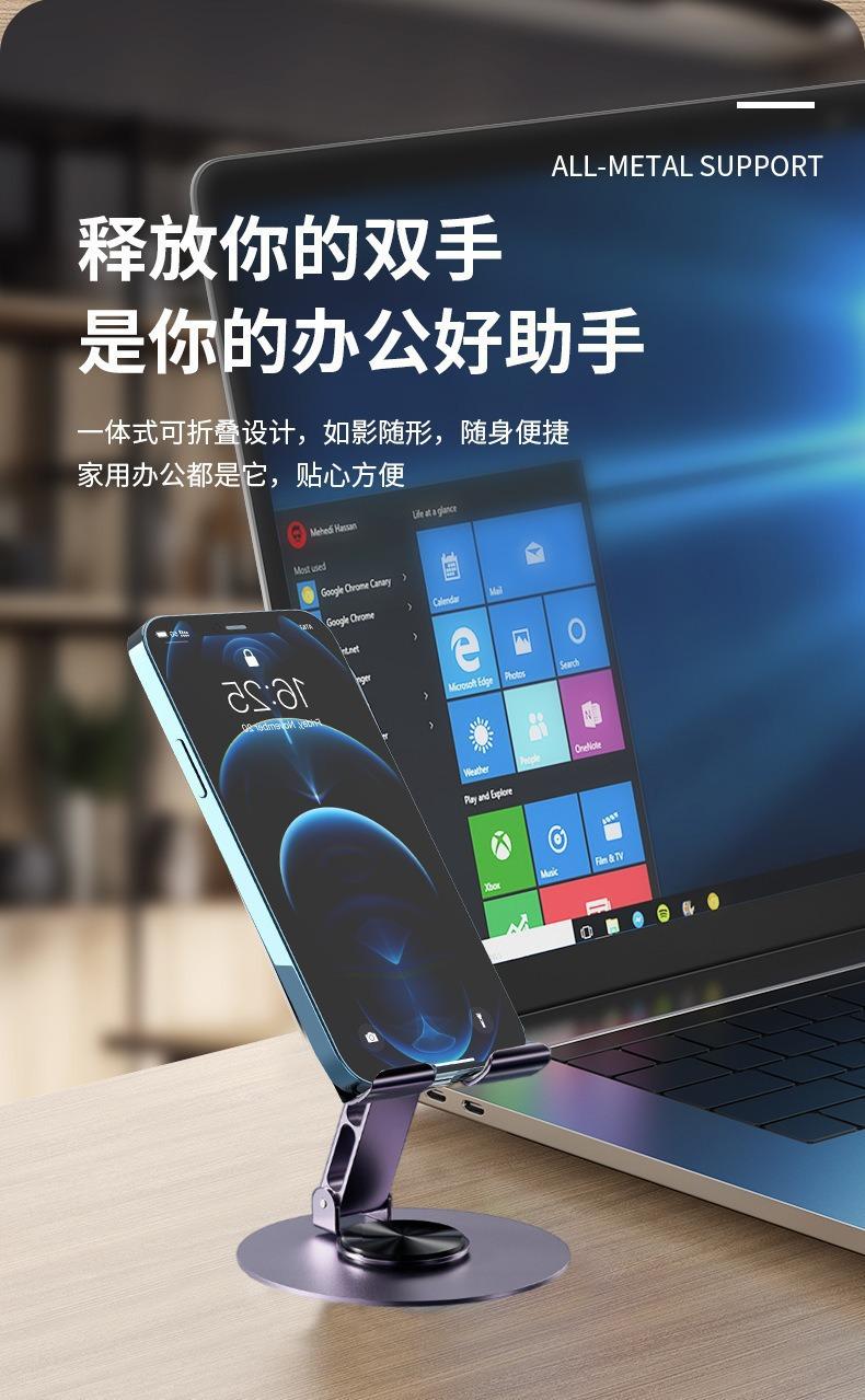 Soporte Metálico Plegable Giratorio 360 Grados para Teléfono Móvil Tableta Multiángulo Portátil Plegable de Escritorio Aleación de Aluminio