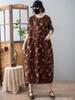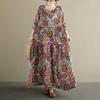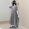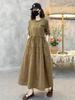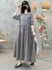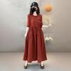 Primavera y Otoño Nuevo Vestido Retro de Algodón y Lino para Mujer Suelto Talla Grande Encaje Cuello Redondo Lazo Cintura Vestido Largo al por Mayor