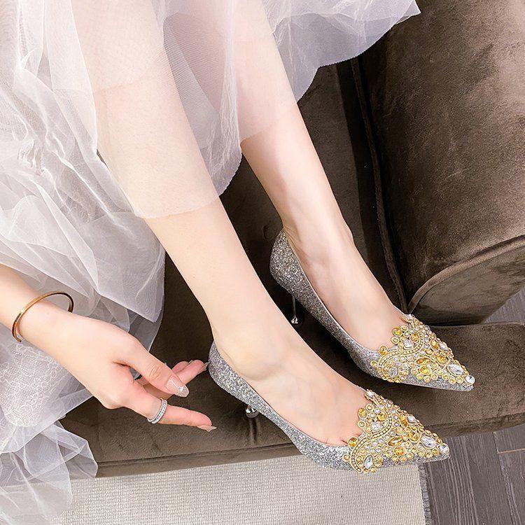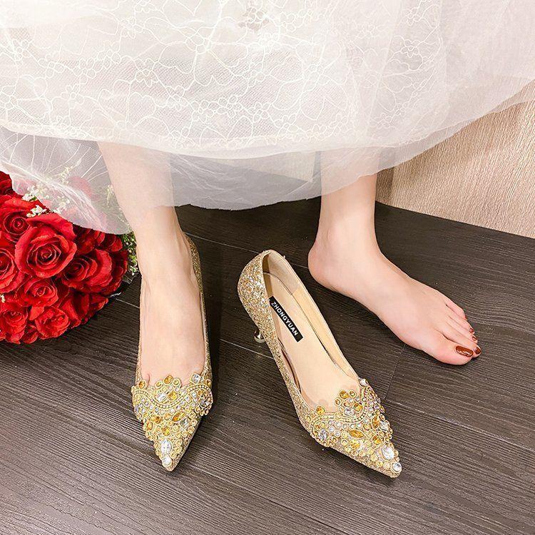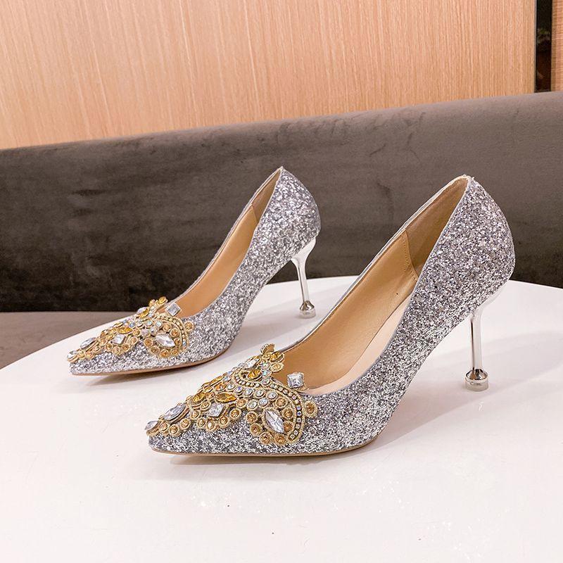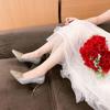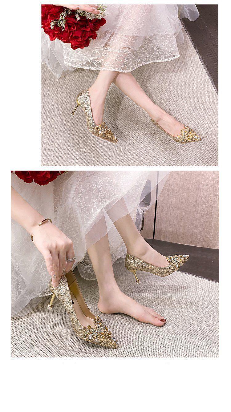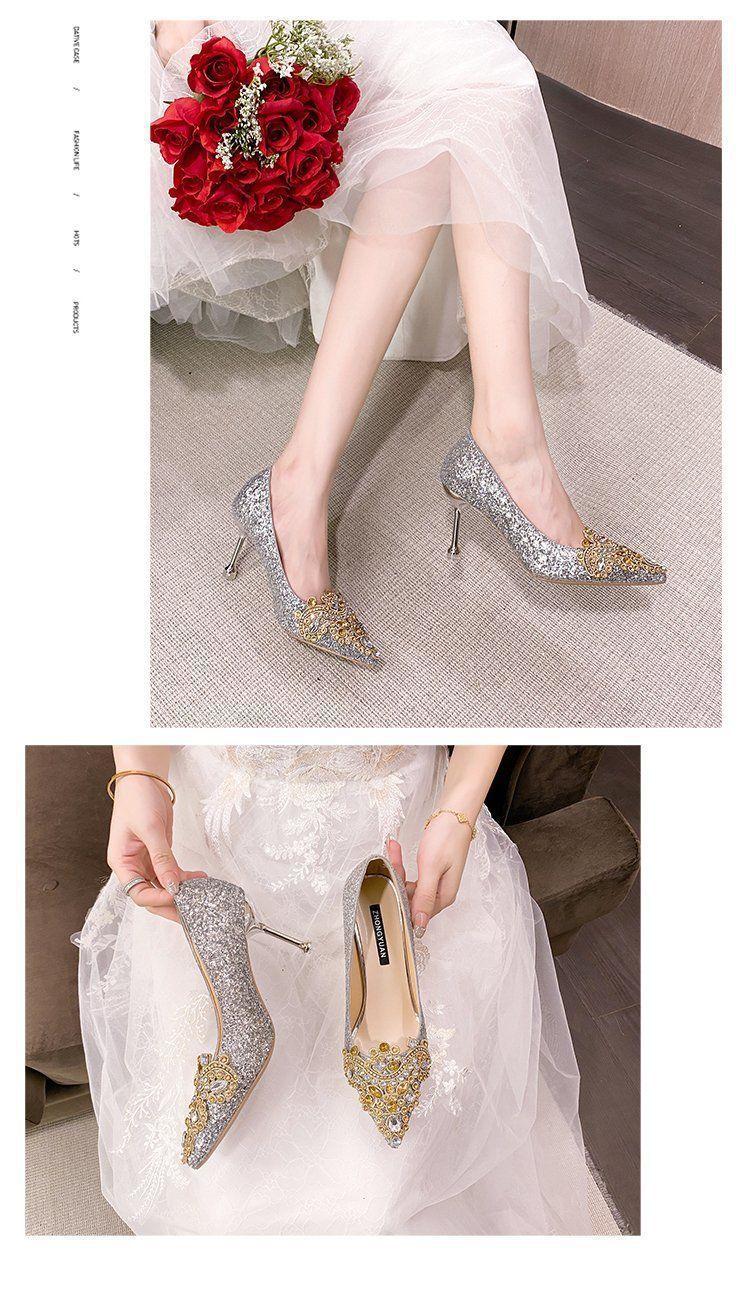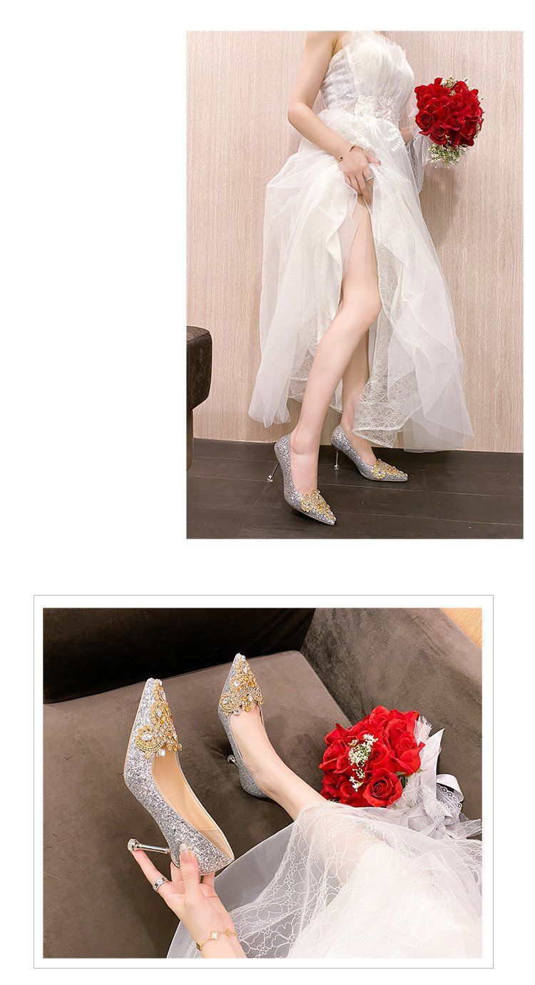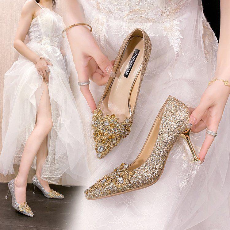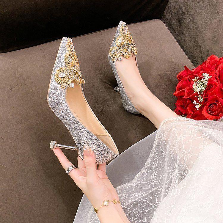 Vestido de Boda Xiuhe con Pedrería Color Champán Francés Dos Usos Zapatos Individuales de Tacón Alto Mujer 2025 Nuevos Zapatos de Boda Plateados Zapatos de Novia