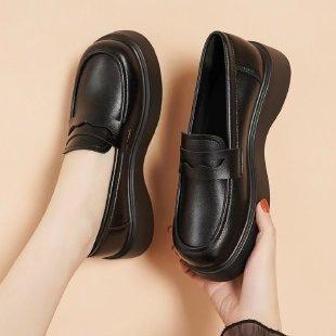 Mocasines Zapatos Casuales de Mujer 2025 Otoño Nuevos Zapatos Británicos de Cuero para Mujer Cuero Suave Suela Suave Versátiles Zapatos Planos Individuales de Mujer
