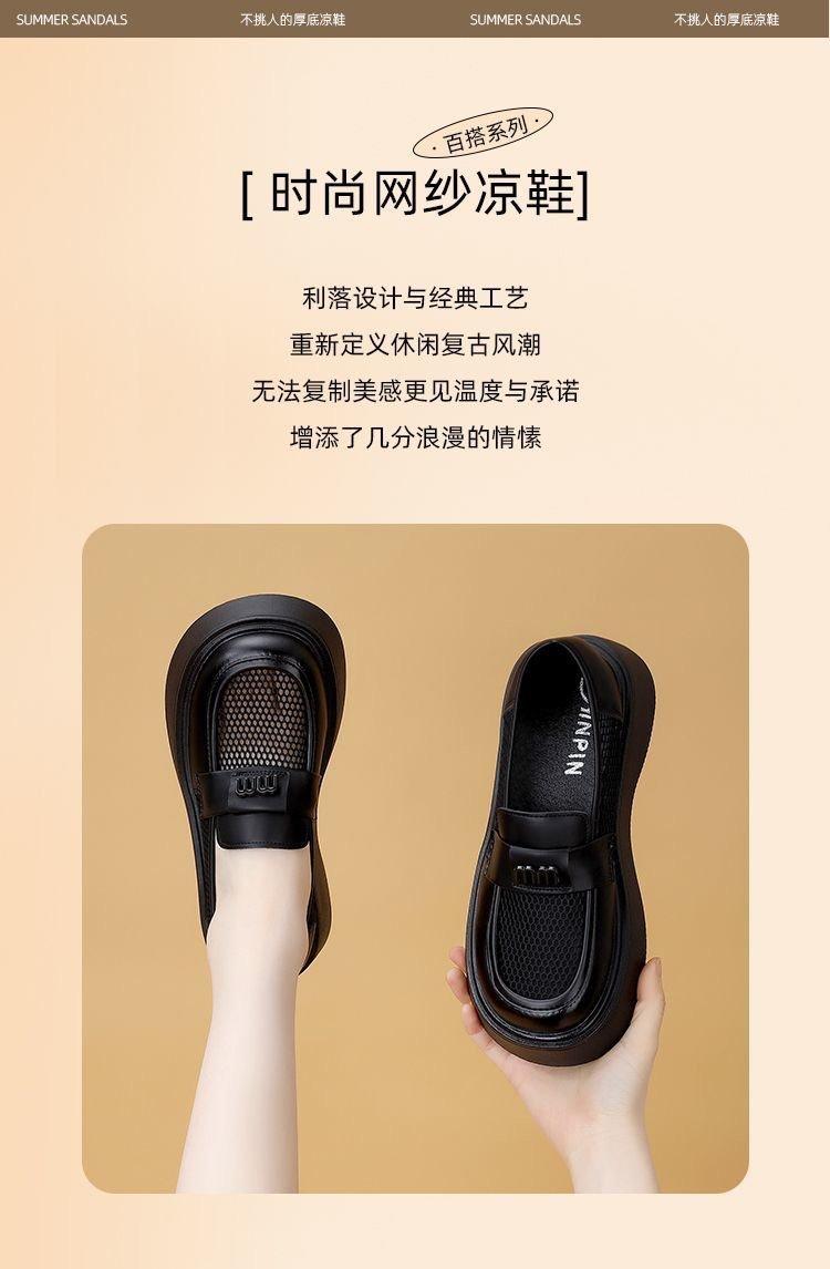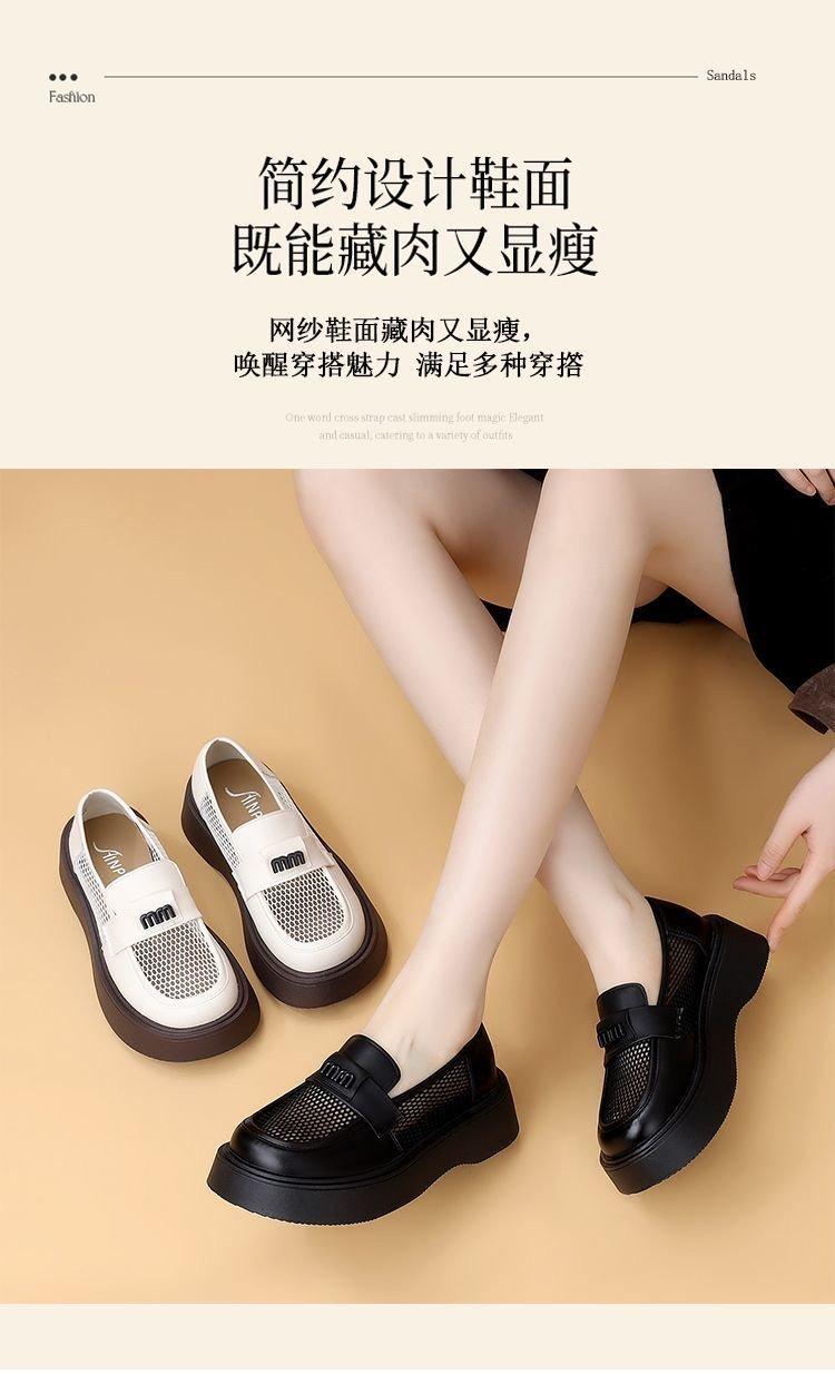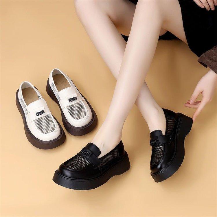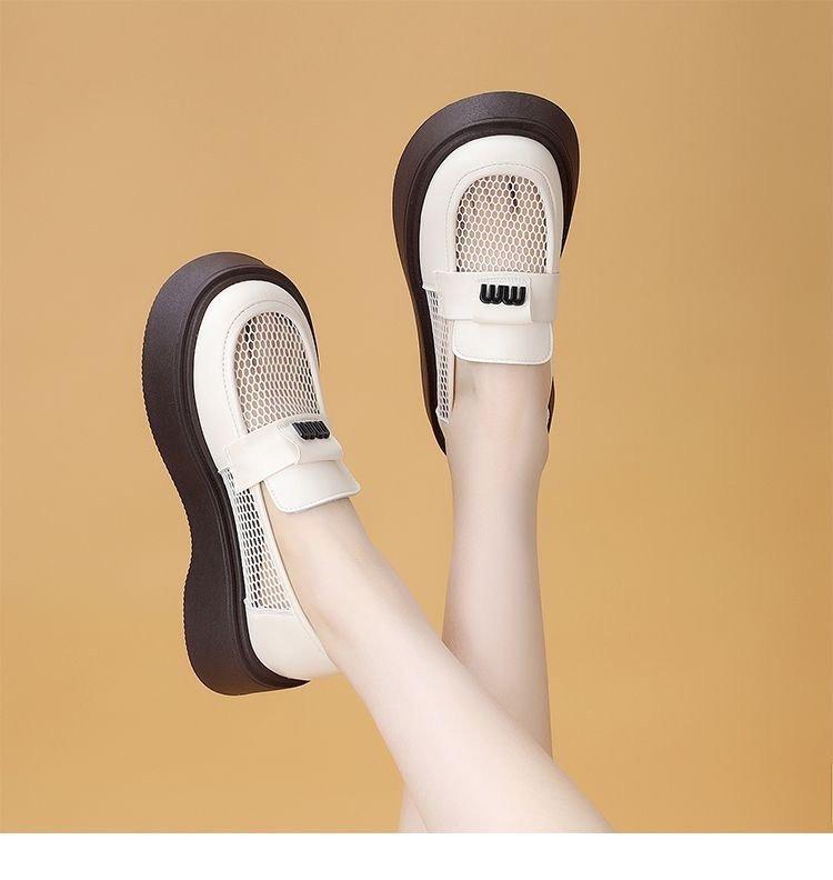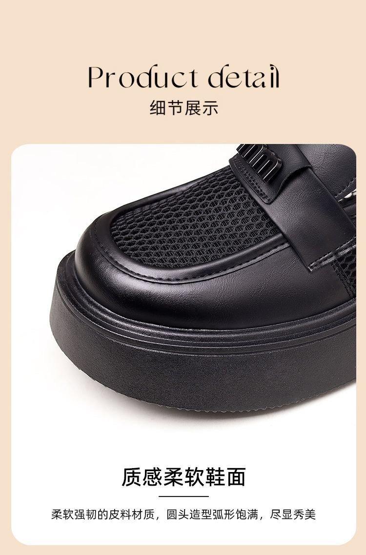 Mocasines de Malla de Cuero Suave de Suela Gruesa para Mujer 2025 Nuevo Estilo Veraniego Calado Transpirables Sandalias de Malla Británicas Slip-On
