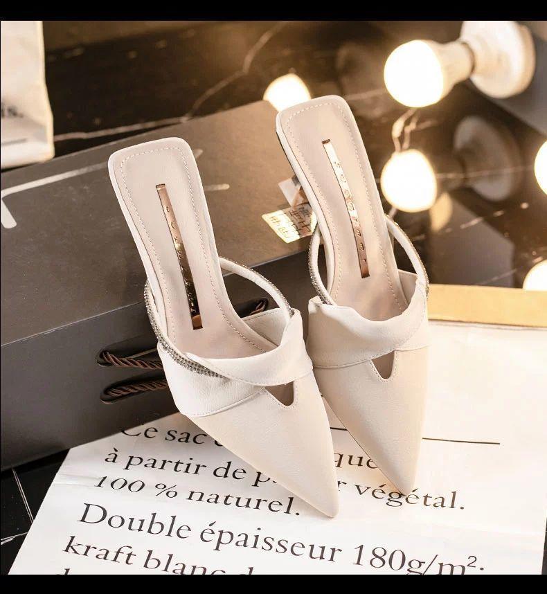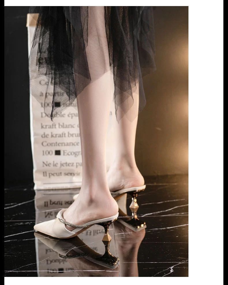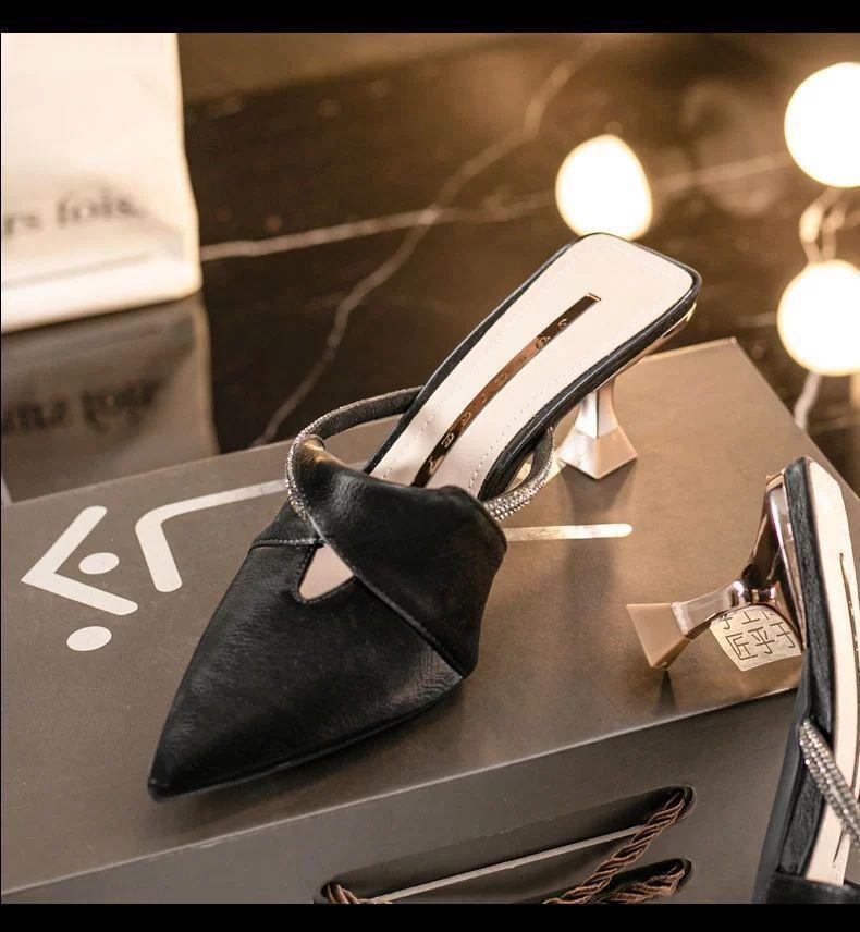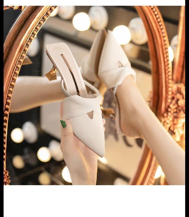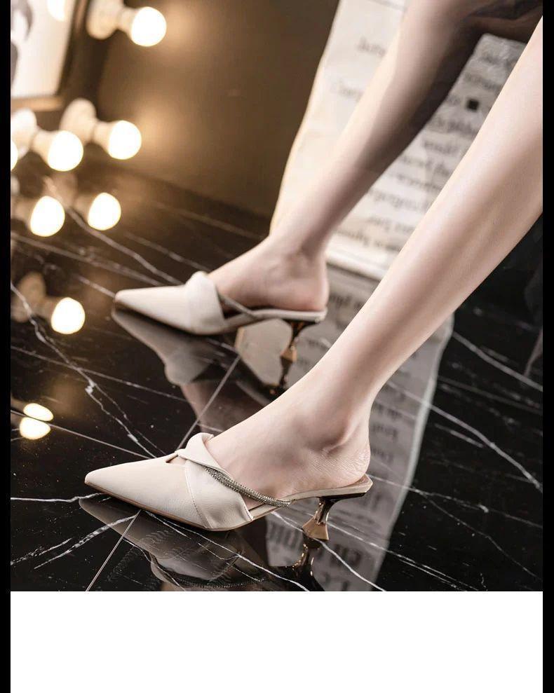 Sandalias de Punta para Mujer, Diseño Nicho 2025 Nuevo, Slip-On, Versátiles, Tacones Altos de Moda
