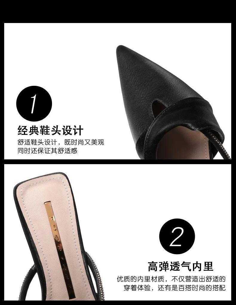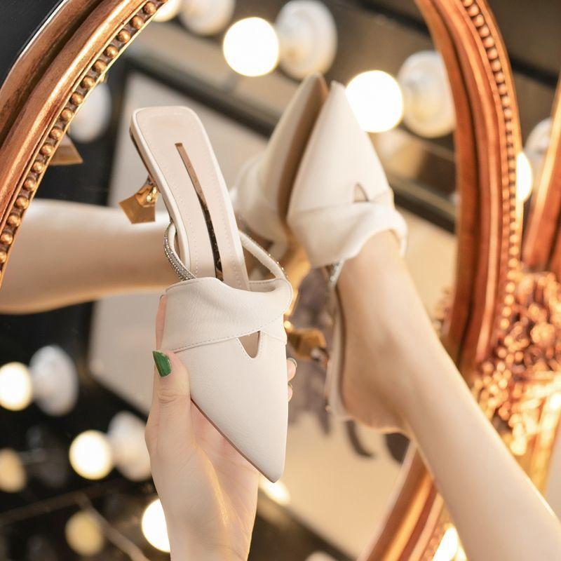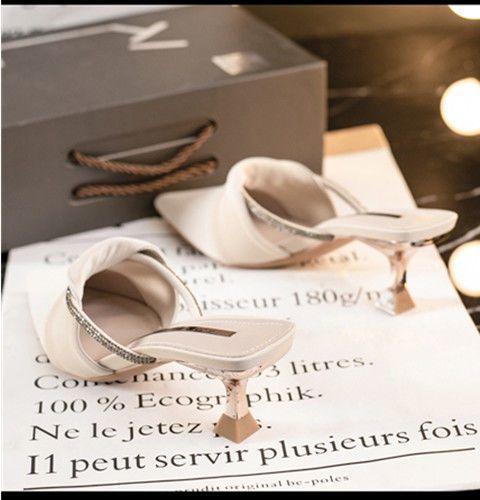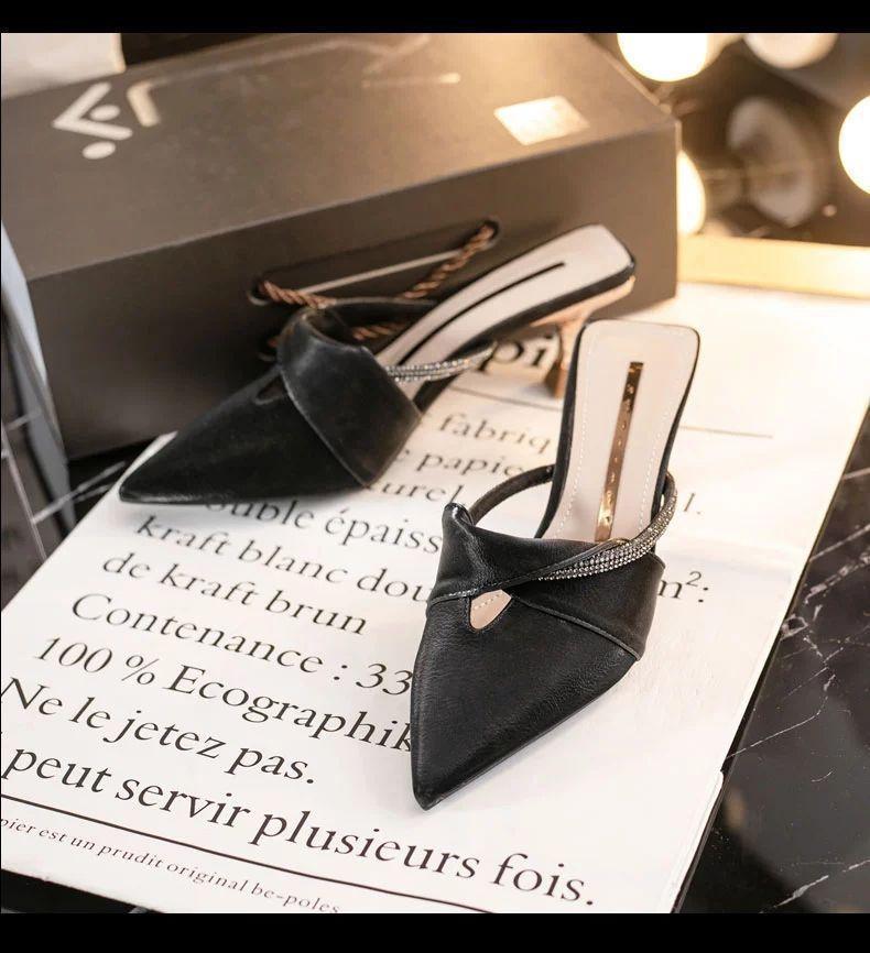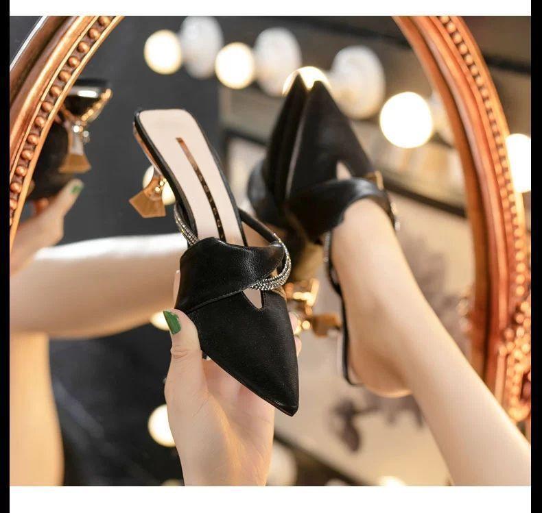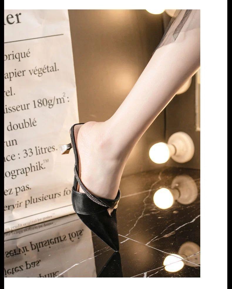 Sandalias de Punta para Mujer, Diseño Nicho 2025 Nuevo, Slip-On, Versátiles, Tacones Altos de Moda