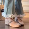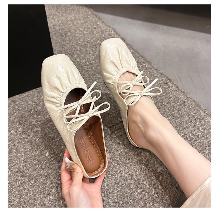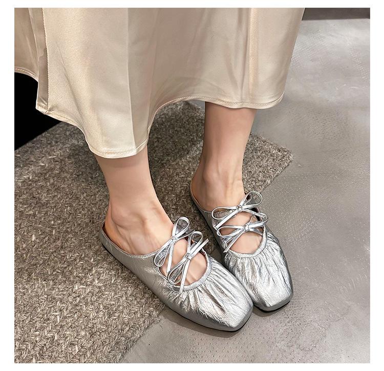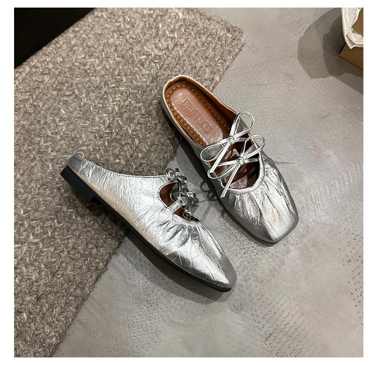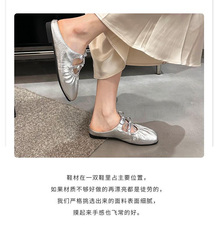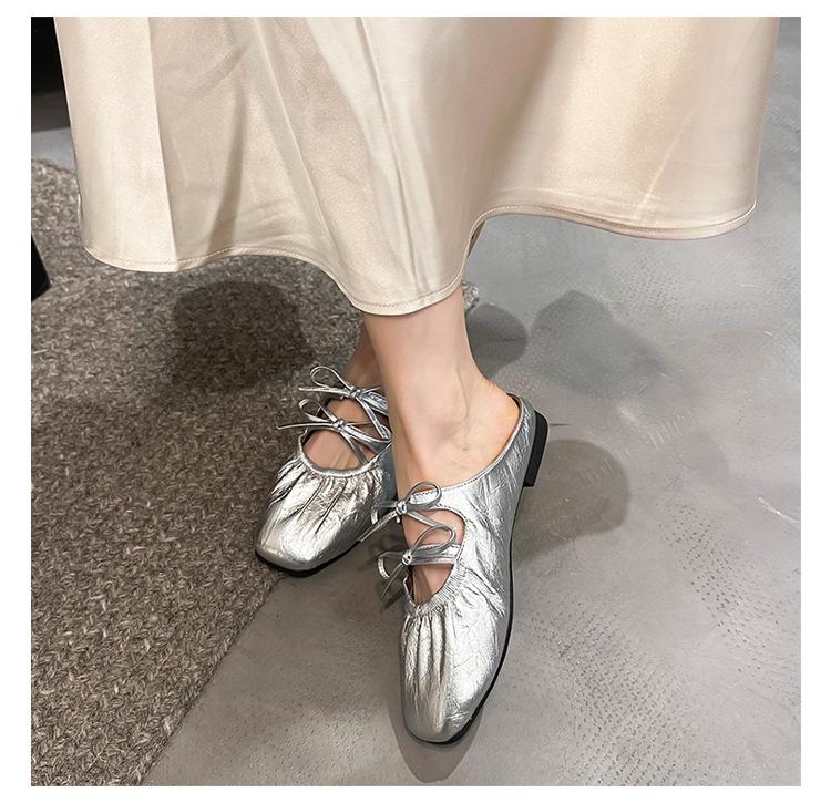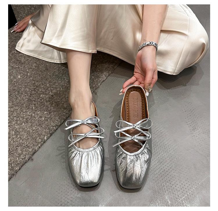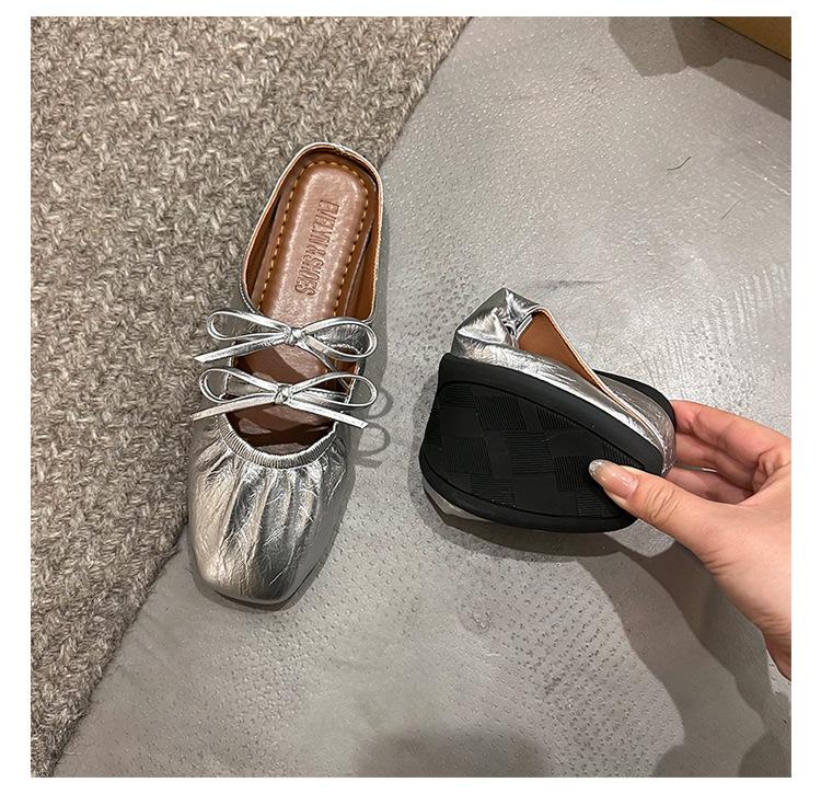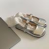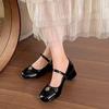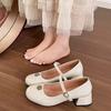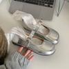 Zapatos individuales Mary Jane plateados de punta cuadrada con aumento de altura interior Zapatos de mujer Primavera 2025 Zapatos de noche suaves blanco crema francés para mujer