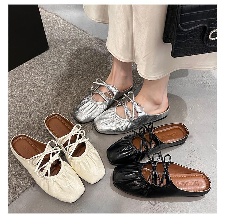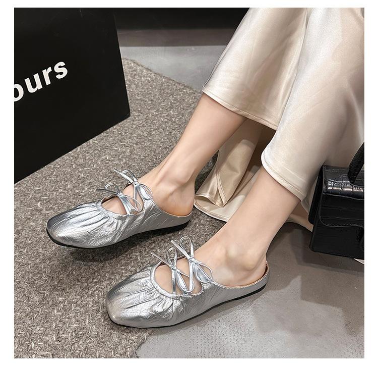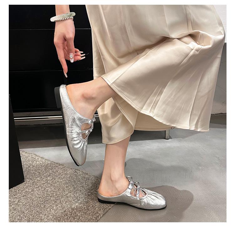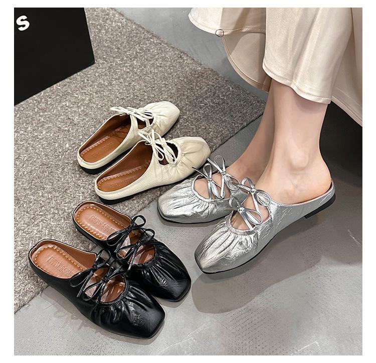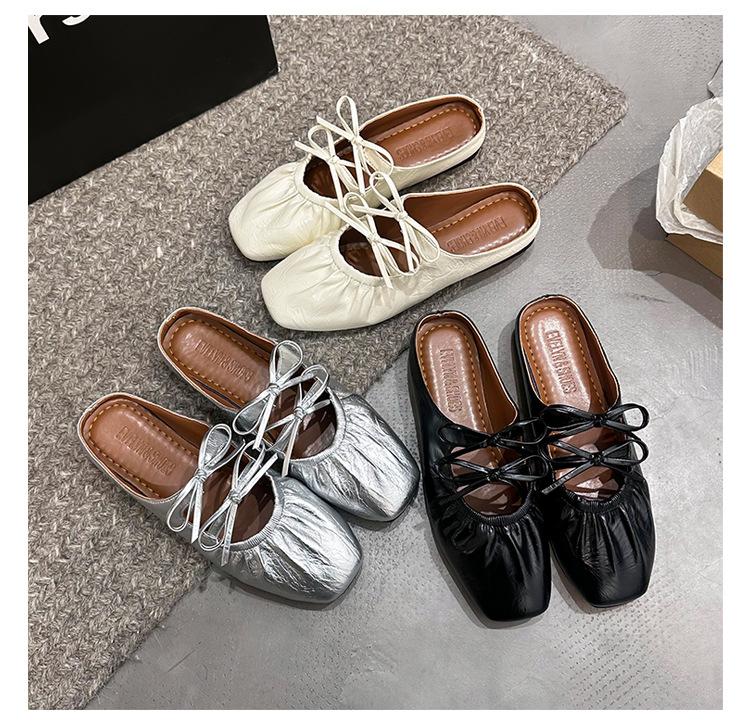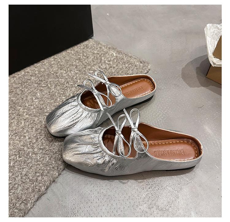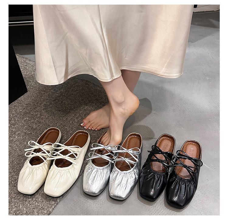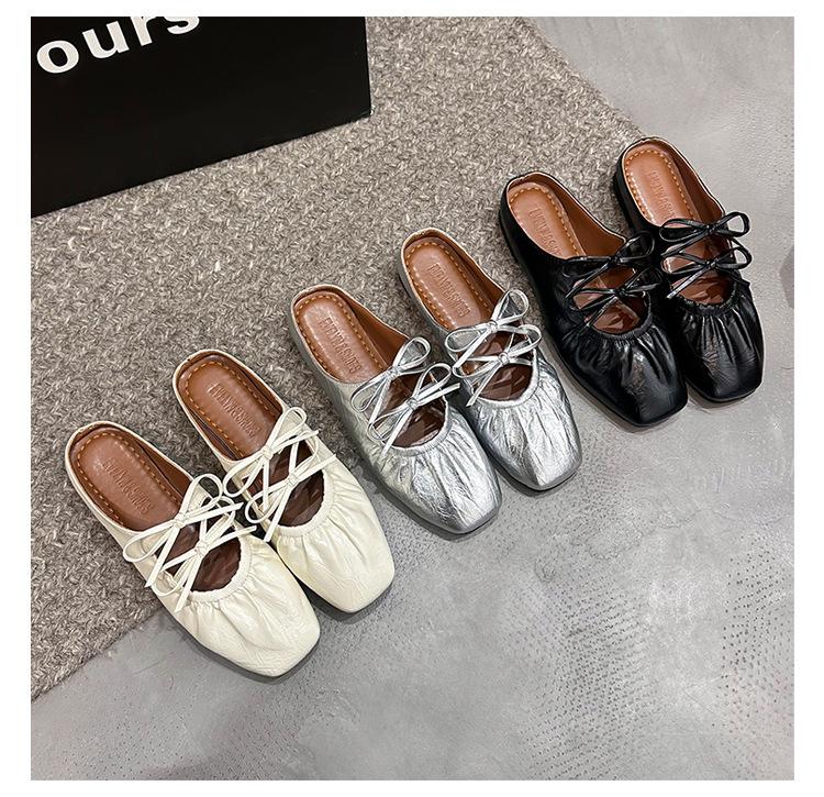Zapatos individuales Mary Jane plateados de punta cuadrada con aumento de altura interior Zapatos de mujer Primavera 2025 Zapatos de noche suaves blanco crema francés para mujer