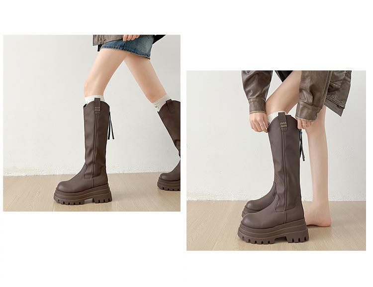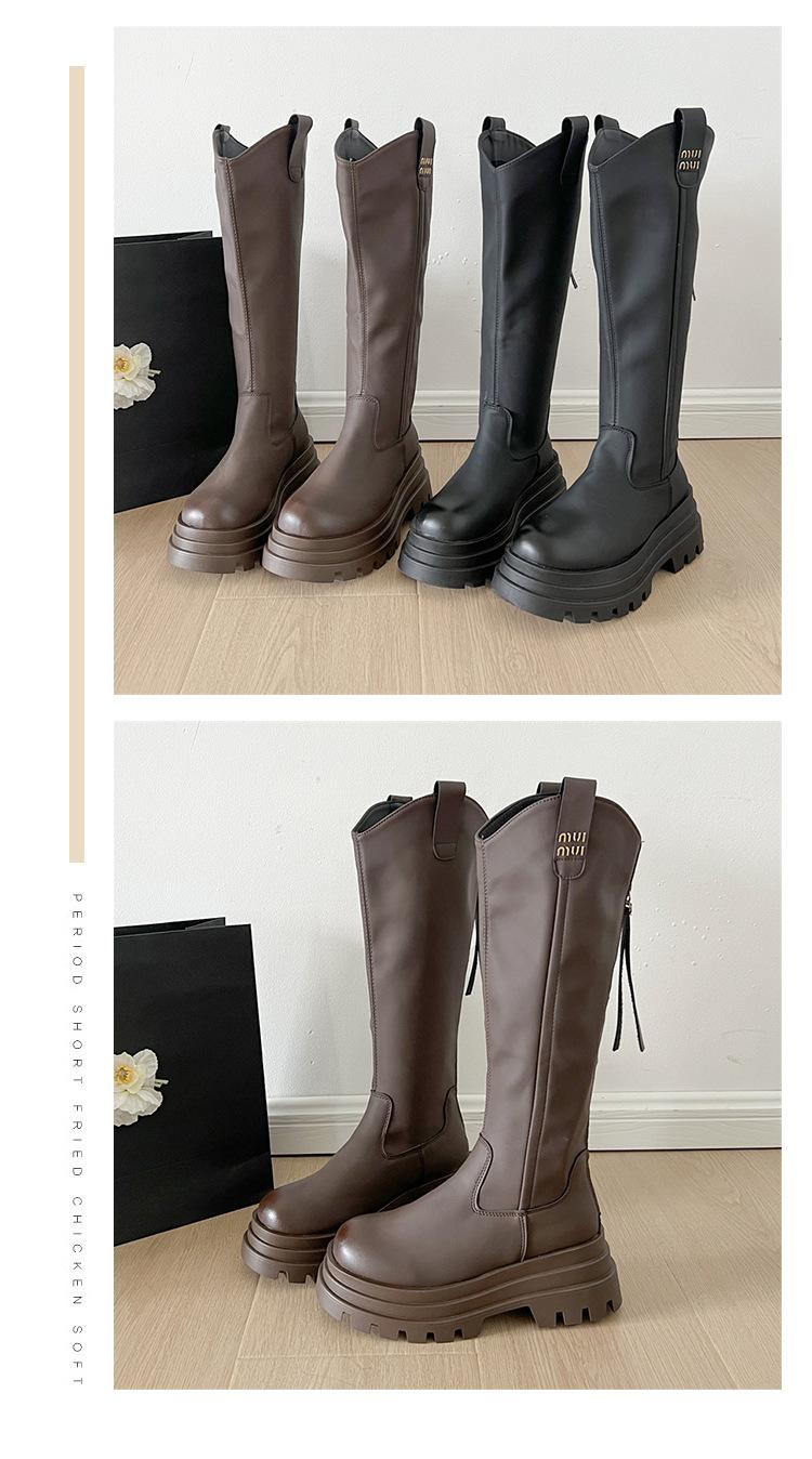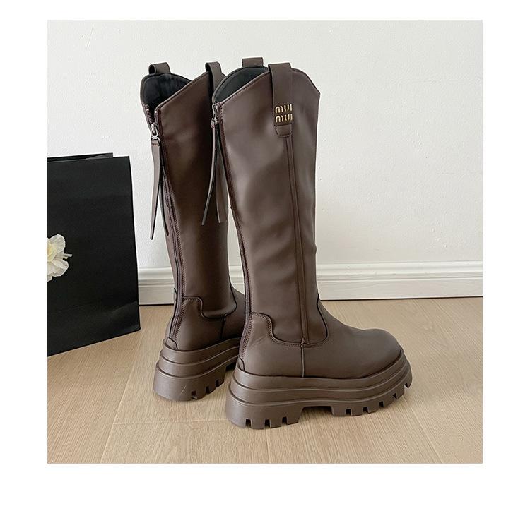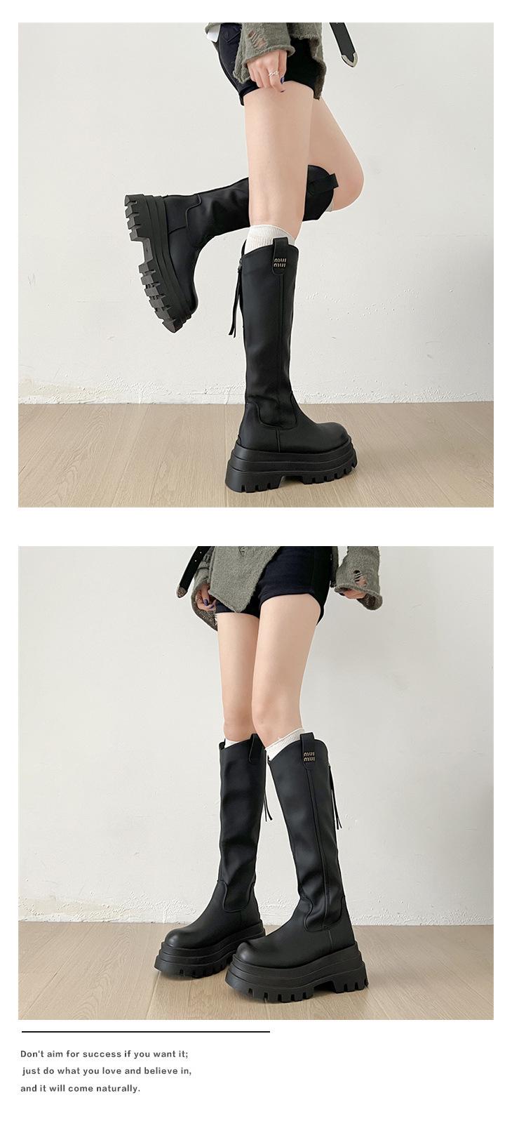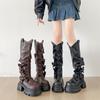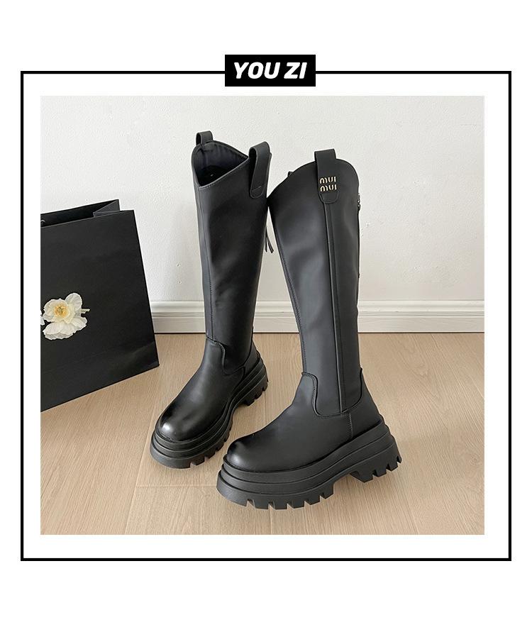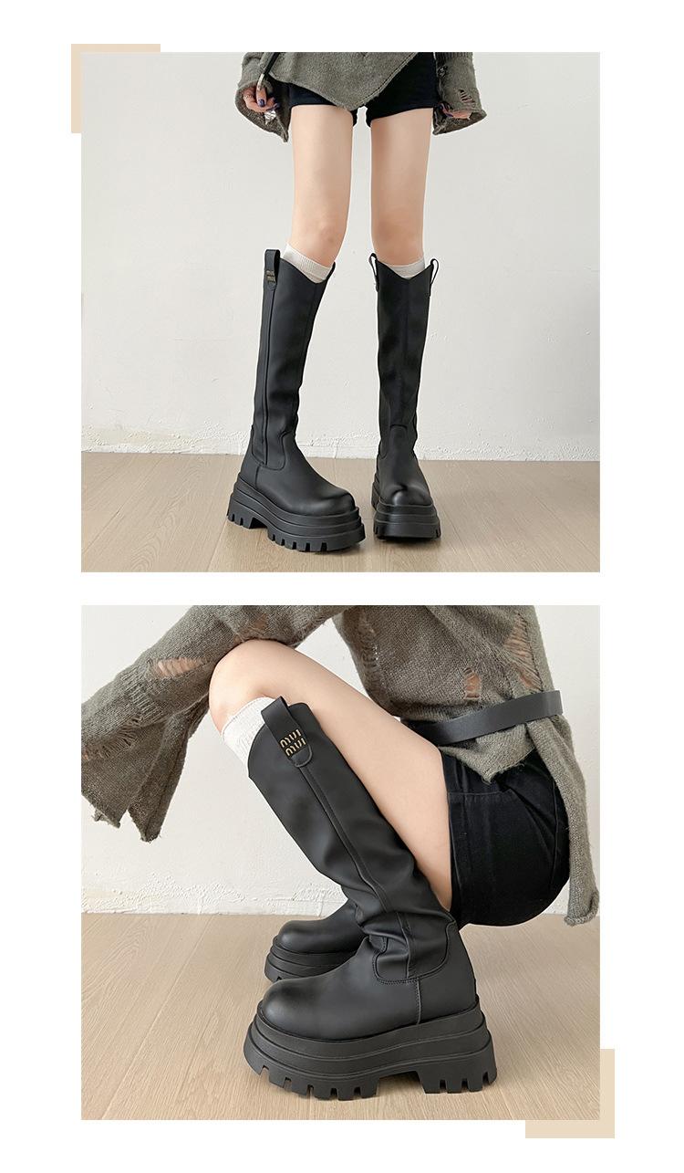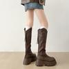 Botas largas negras estilo reina retro suela gruesa aumento de altura mujer 2025 nuevo verano adelgazantes versátiles botas de caballero