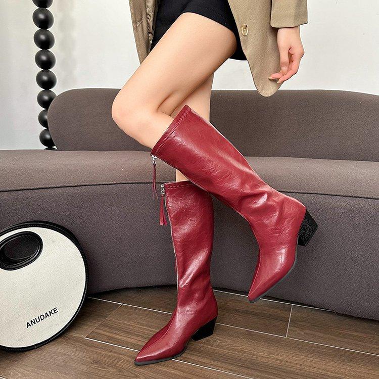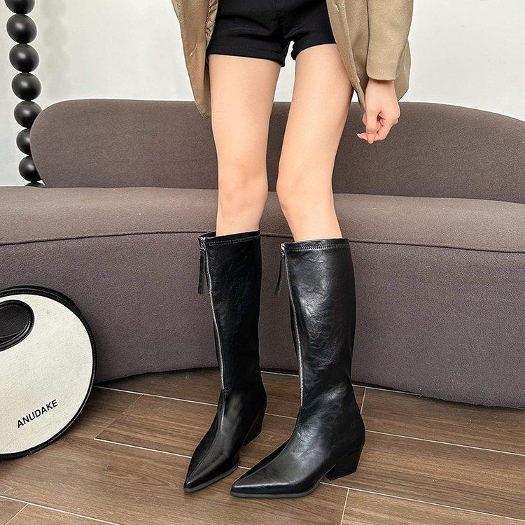 35-42 Zapatos de Mujer Talla Grande Botas Largas Mujer Otoño Invierno Tacón Alto Grueso Botas Altas Hasta el Muslo Botas de Moda Cremallera Frontal Caña Alta Botas Largas
