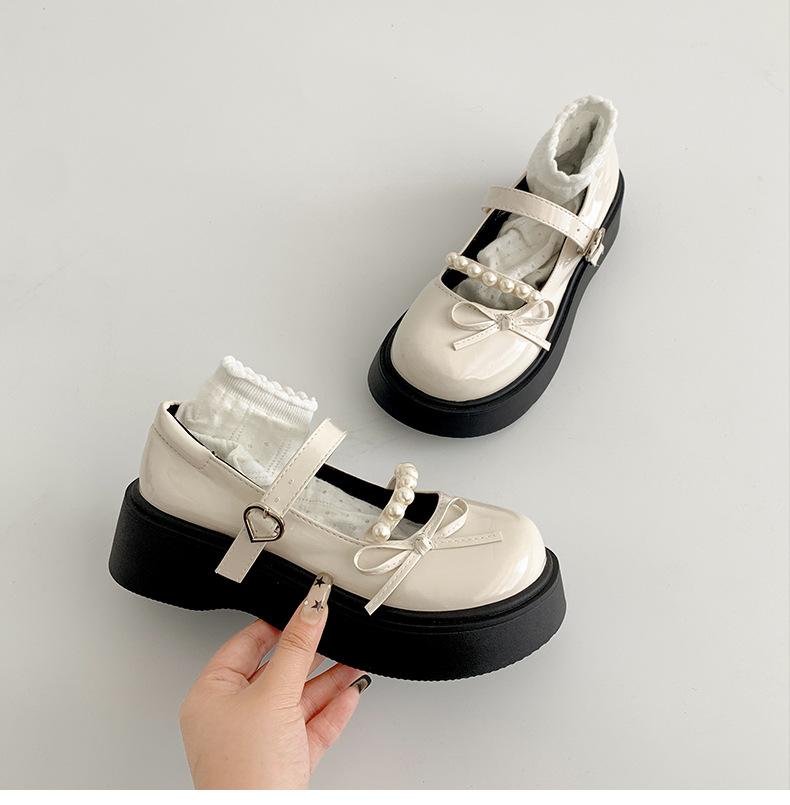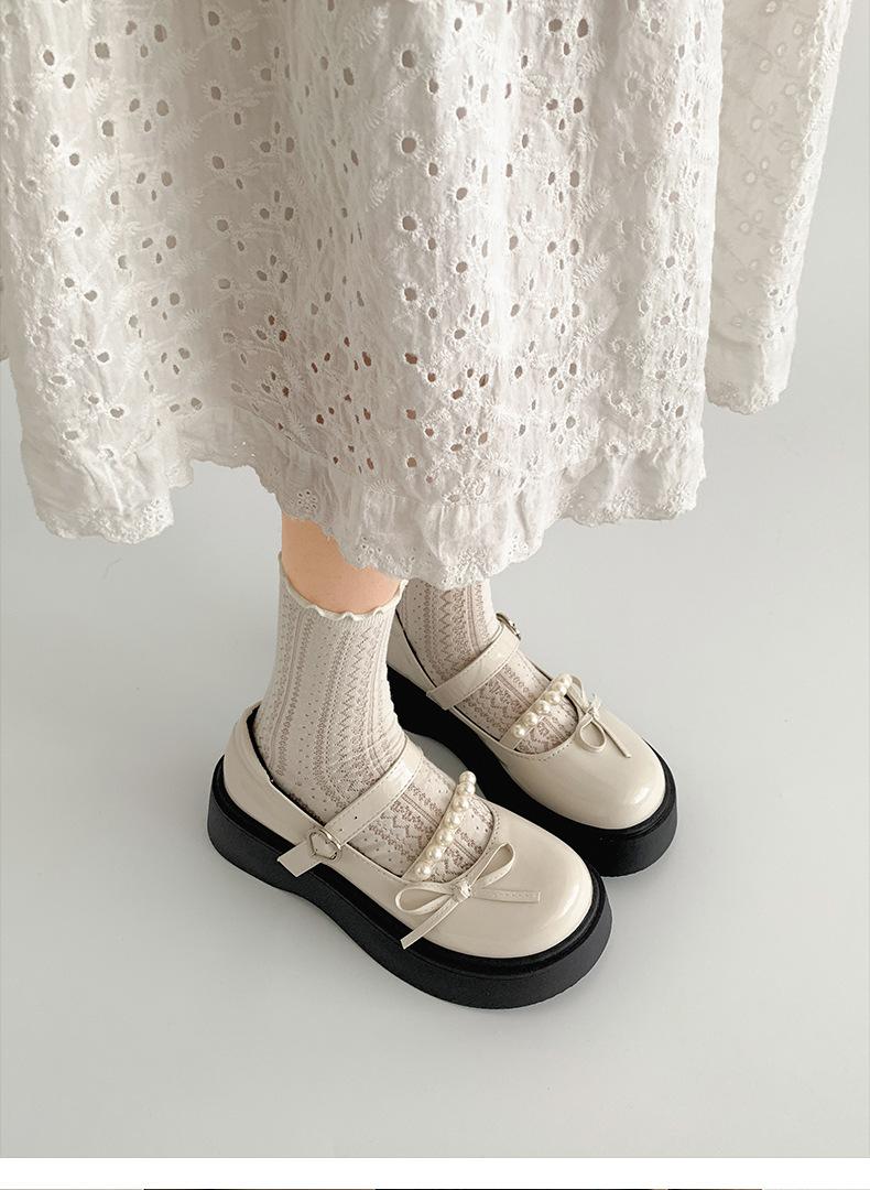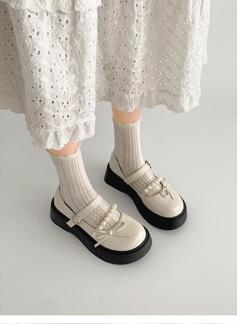 Zapatos de cuero pequeños británicos retro de alta gama blancos de suela gruesa para mujer 2025 nuevo verano para combinar con falda zapatos Mary Jane que aumentan la altura