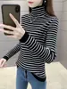 Nuevo Suéter de Punto Elegante a Rayas de Moda de Cuello Alto Medio Versátil Ajustado Básico para Mujer