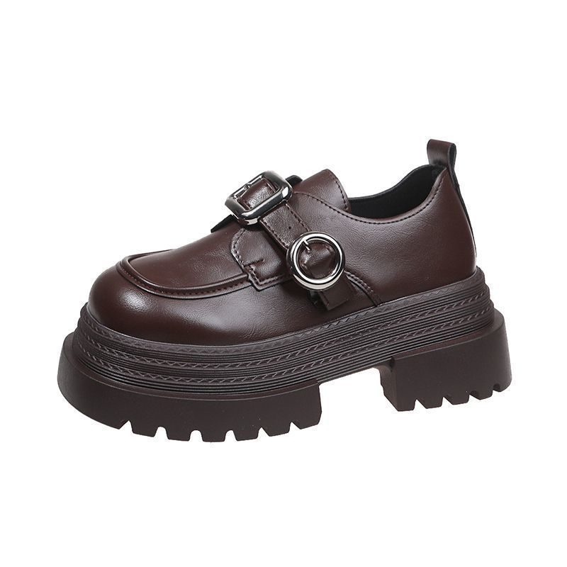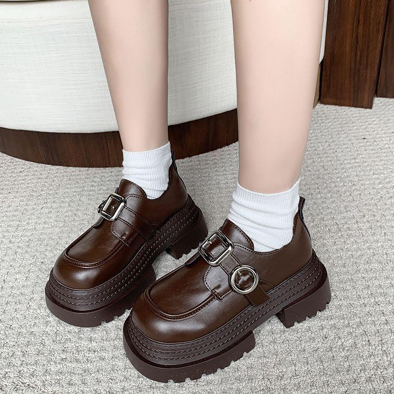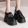 Mocasines retro de estilo británico negros de suela gruesa 2024 otoño e invierno nuevos zapatos de una sola capa versátiles zapatos de piel pequeños realzados para mujer