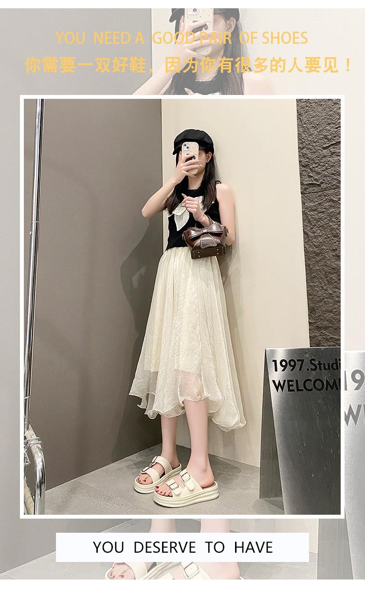 Pantuflas para Verano para Mujer para Exterior 2025 Nuevo Estilo de Hada con Falda Suela Suave Sandalias de Playa Sandalias Casuales para la Playa